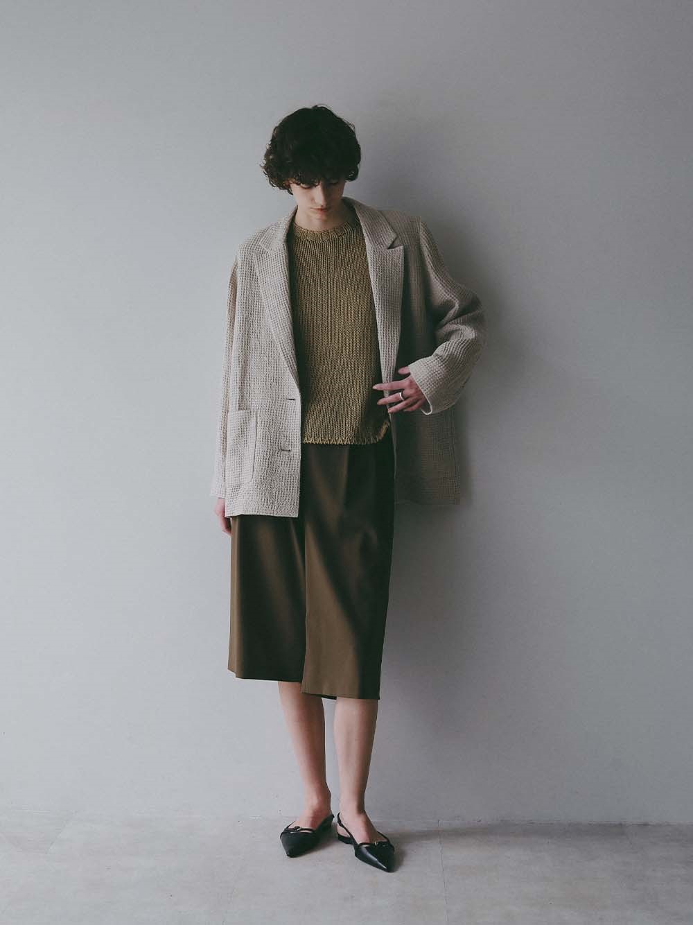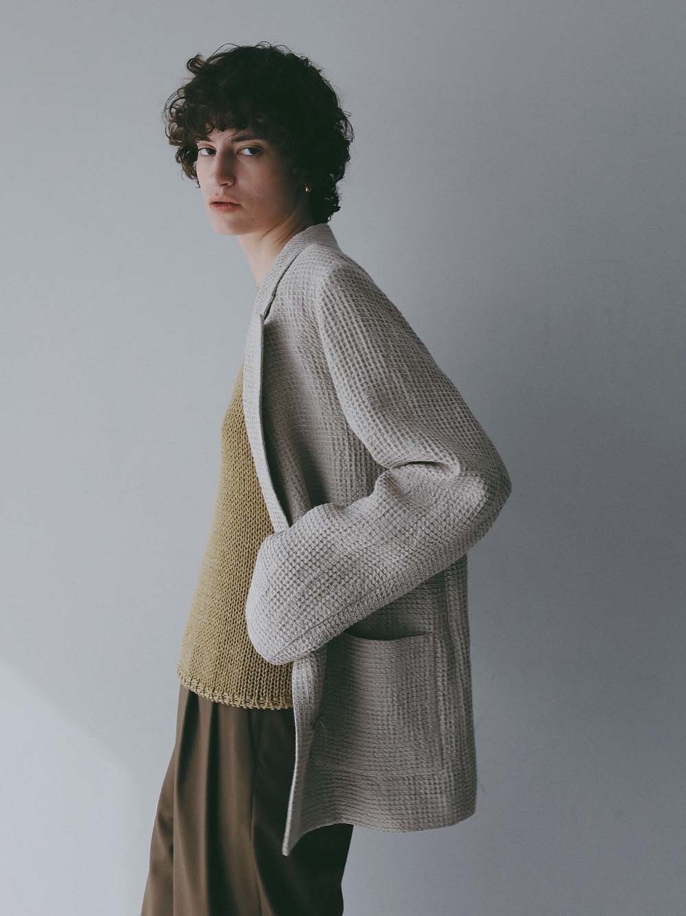 表情感が印象的な40番手リネンのワッフル素材を使用したジャケット。