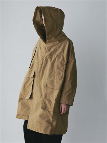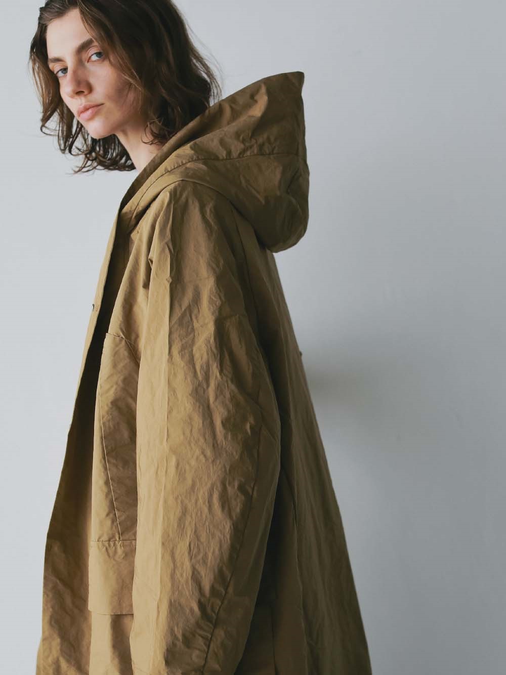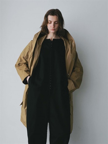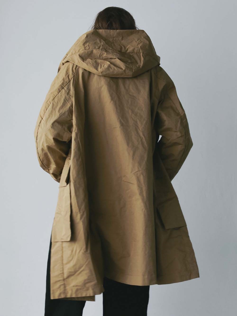特殊な加工を施した、マットでしっとりとした撥水素材が独特でこなれた雰囲気のコートです。
