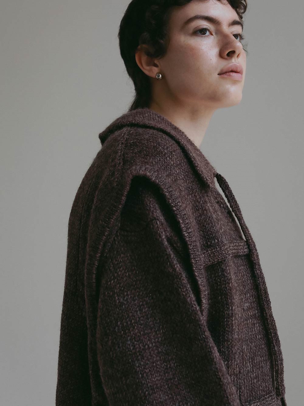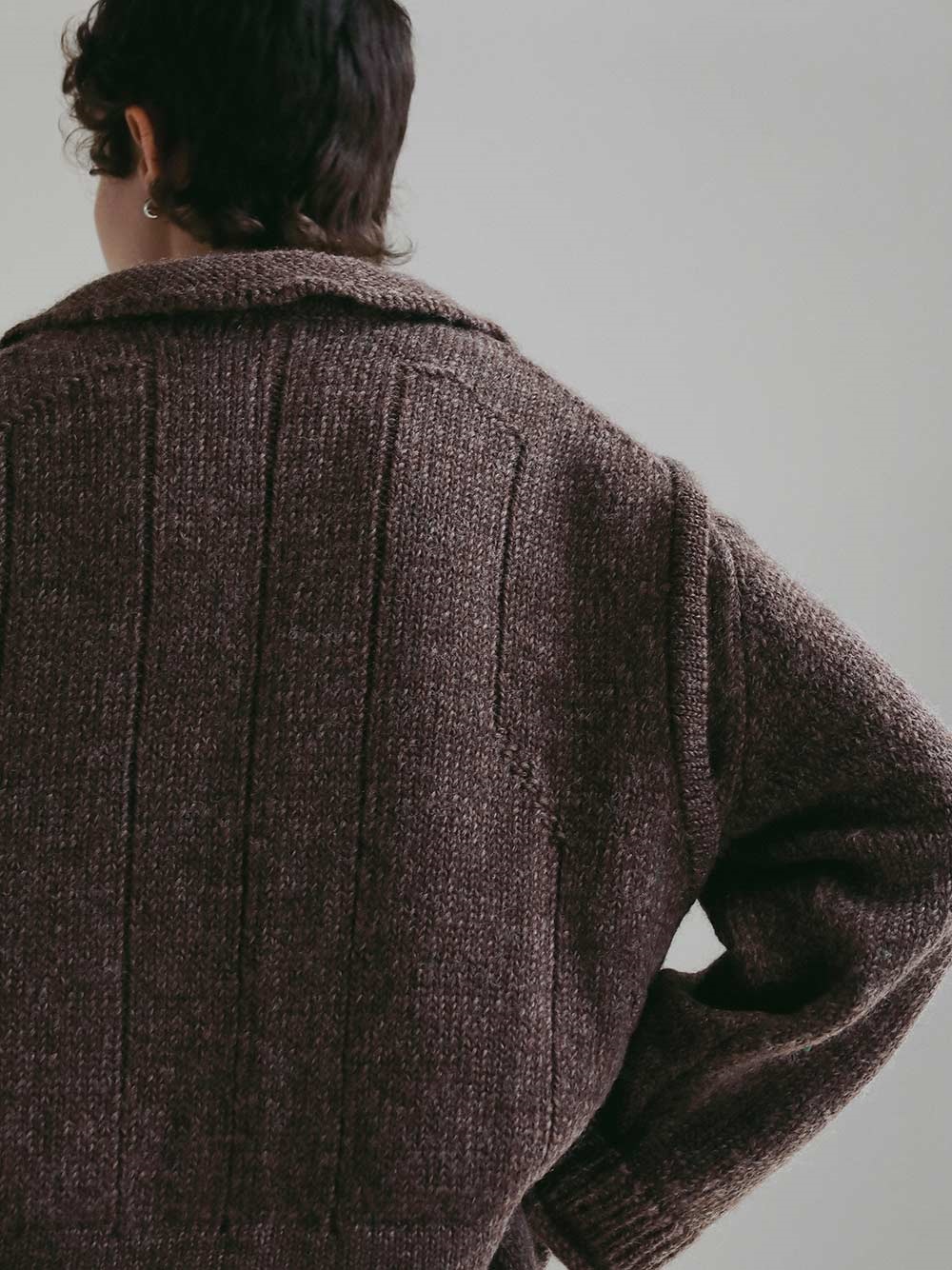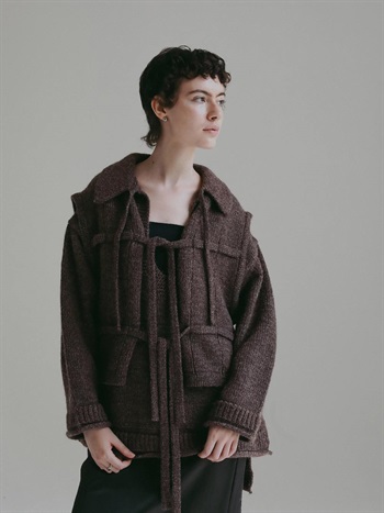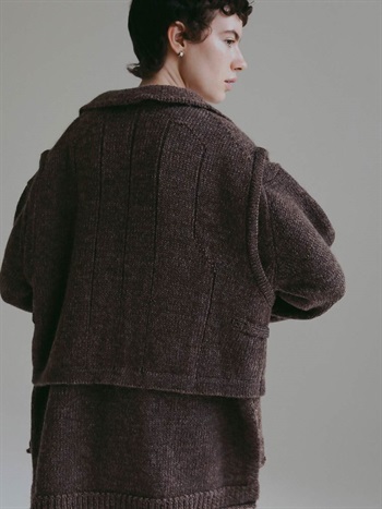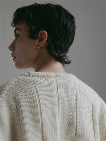 シグネチャーのハンドニットをメインに2019AWスタート。国内生産にこだわり布帛・カット・ニットの知識を生かして機械編みだけではなく、背景の数少ないハンドニットや家庭機、手横機を生かしたニットを多く展開する。