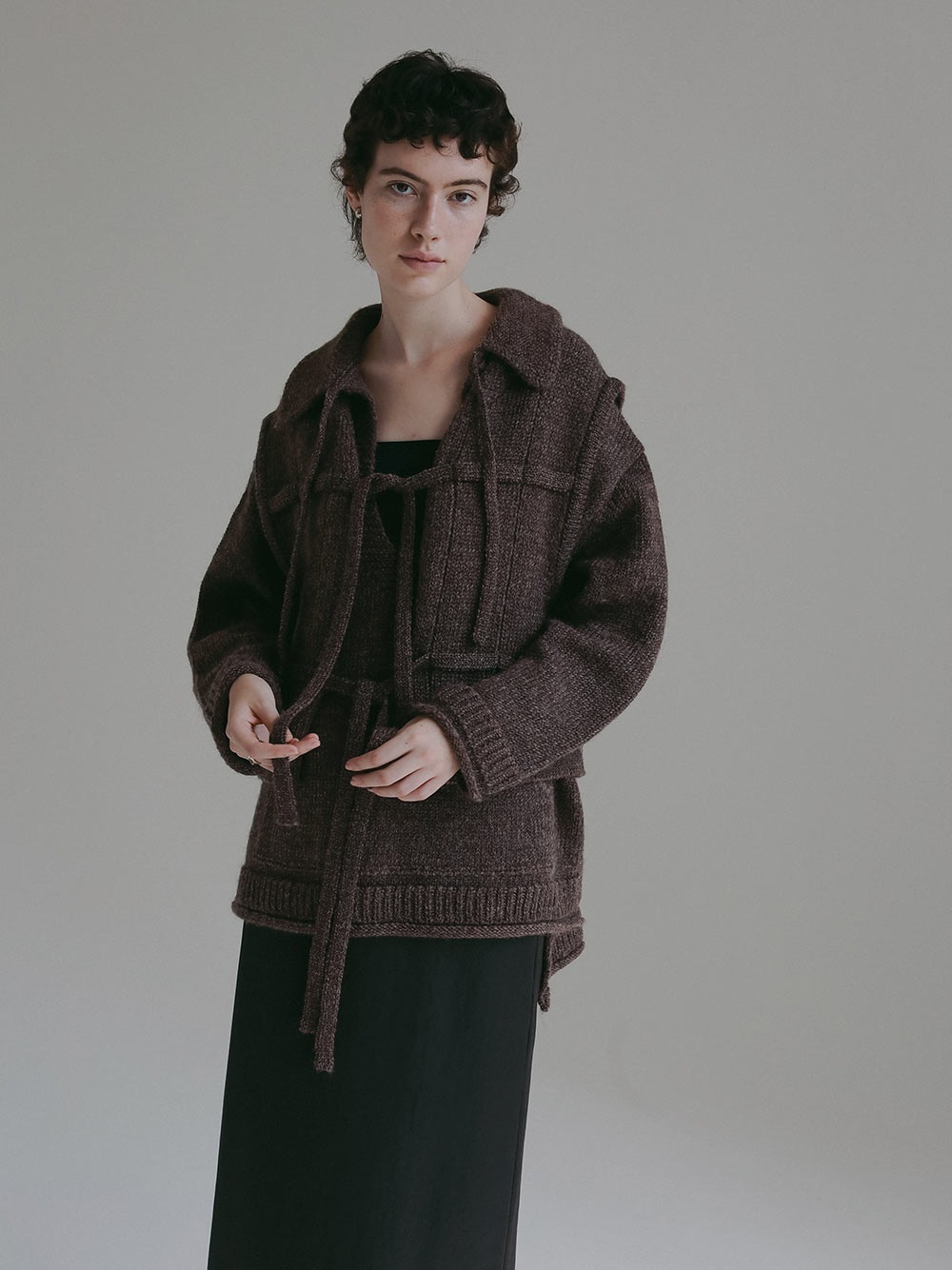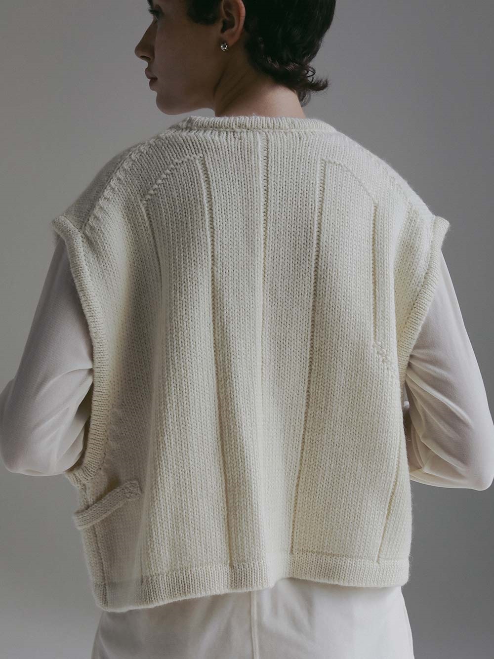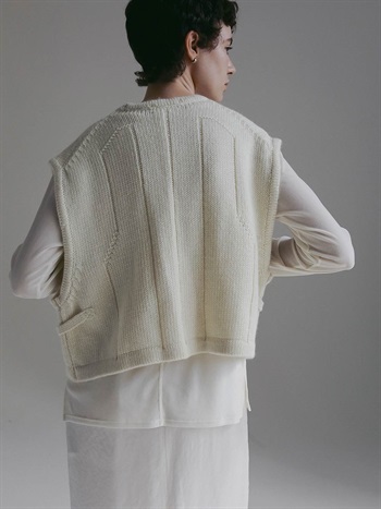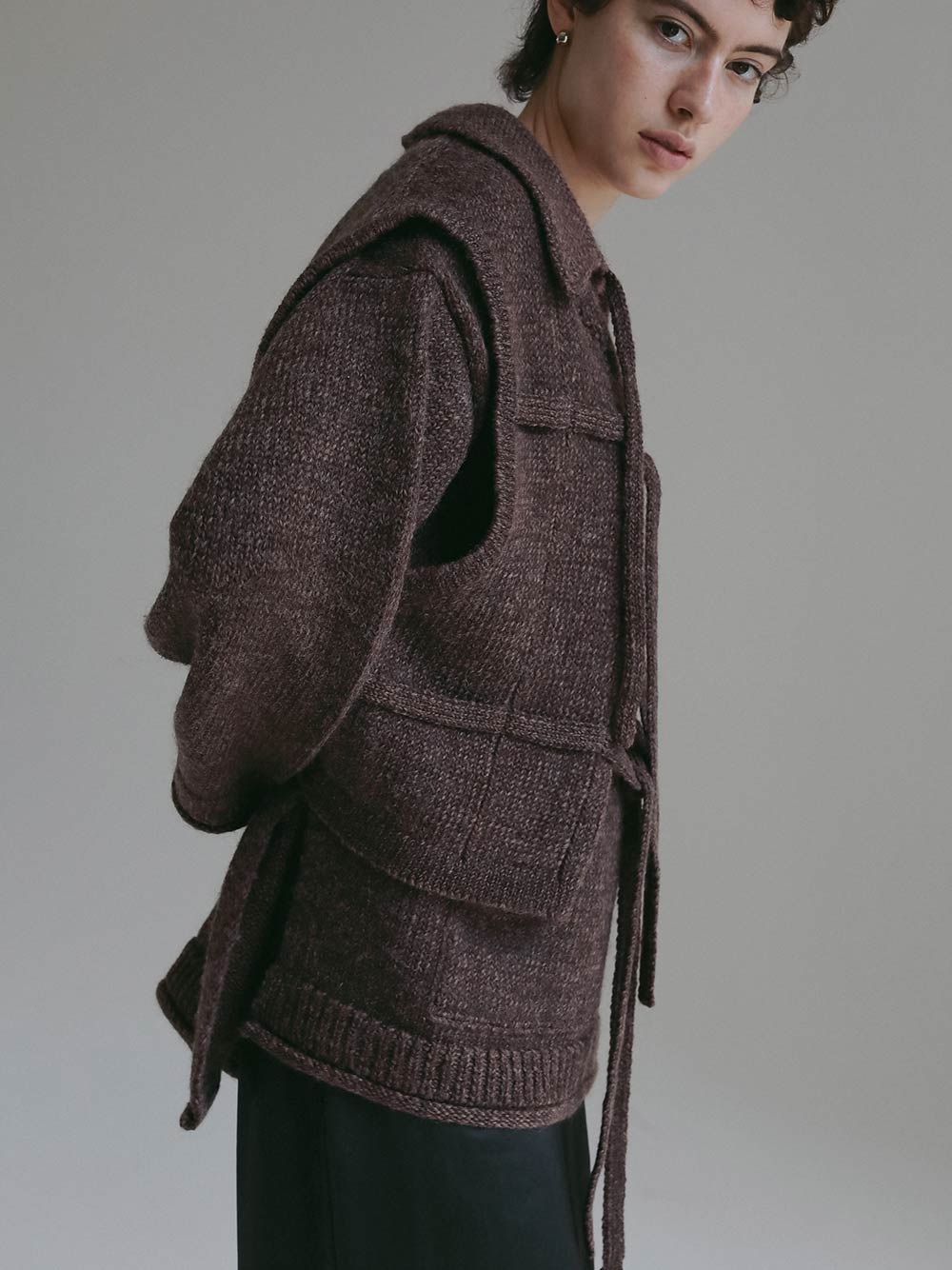 シグネチャーのハンドニットをメインに2019AWスタート。国内生産にこだわり布帛・カット・ニットの知識を生かして機械編みだけではなく、背景の数少ないハンドニットや家庭機、手横機を生かしたニットを多く展開する。