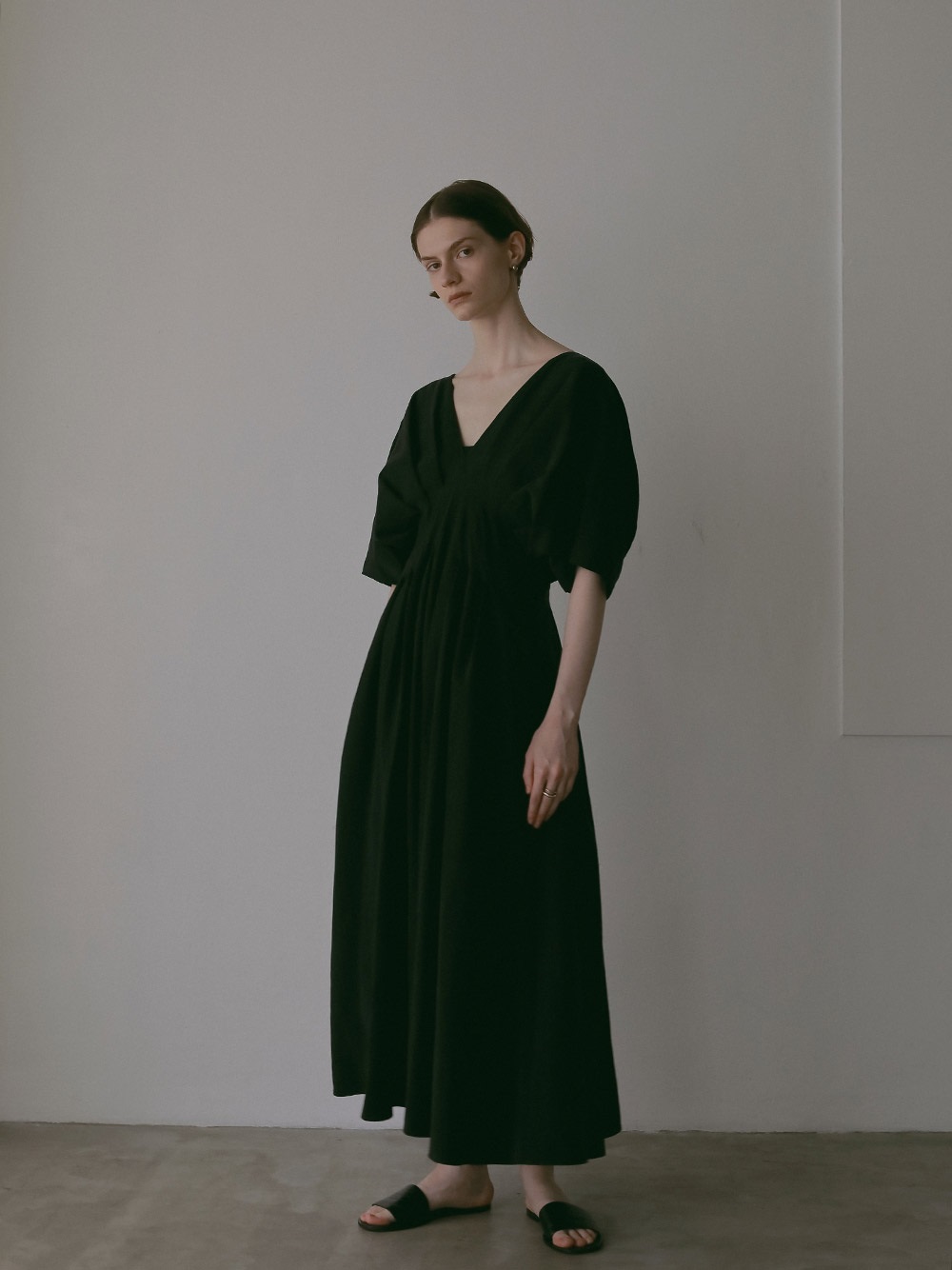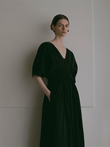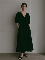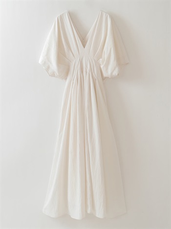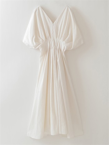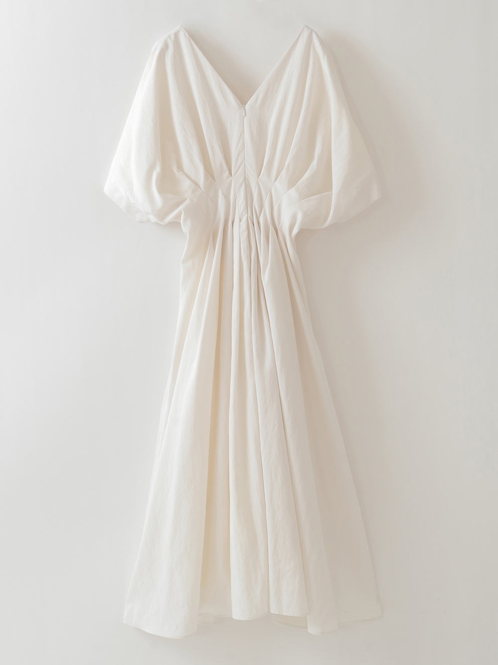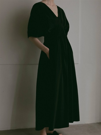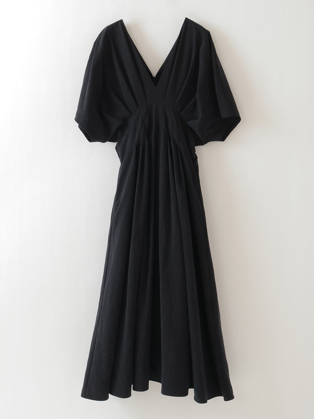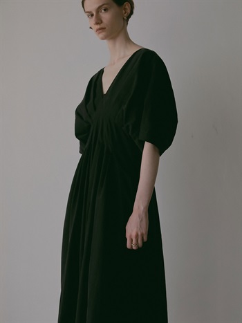 ウエストにタックを取りフィット&フレアのシルエットに仕上げたワンピース。たっぷりと生地を使ったボリューム感も華やかさを演出します。メリハリのあるシルエットでシンプルながら存在感のあるアイテム。深めに開いた衿元もヘルシーな抜け感を感じさせるポイントに。