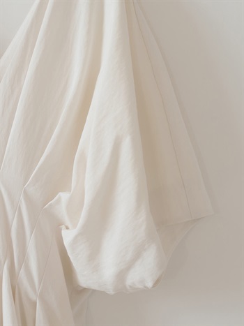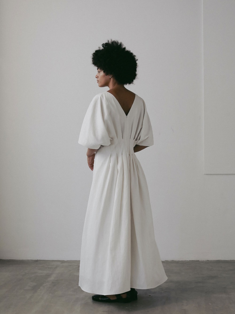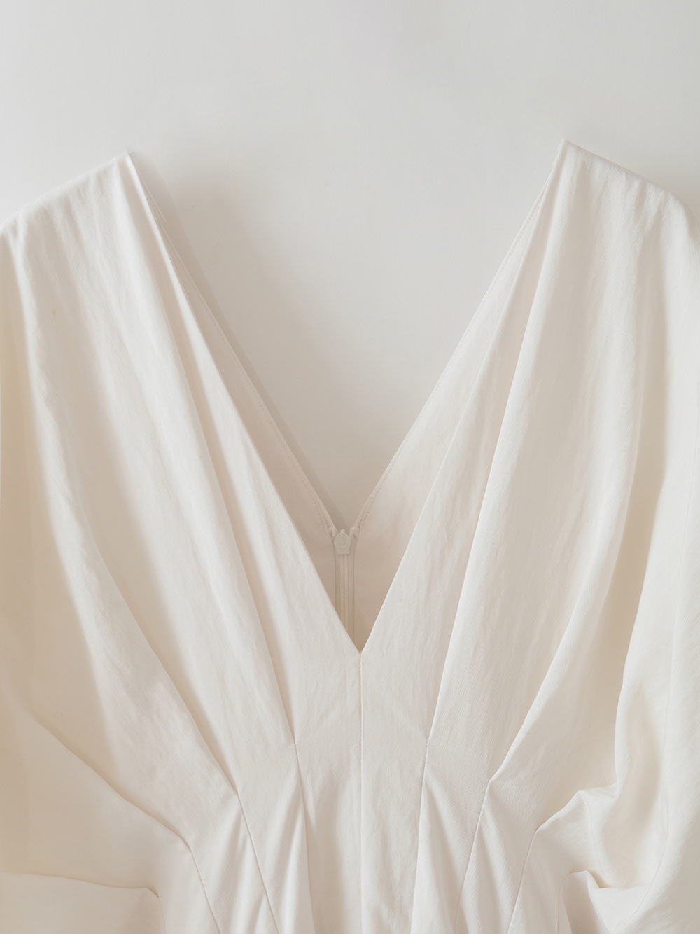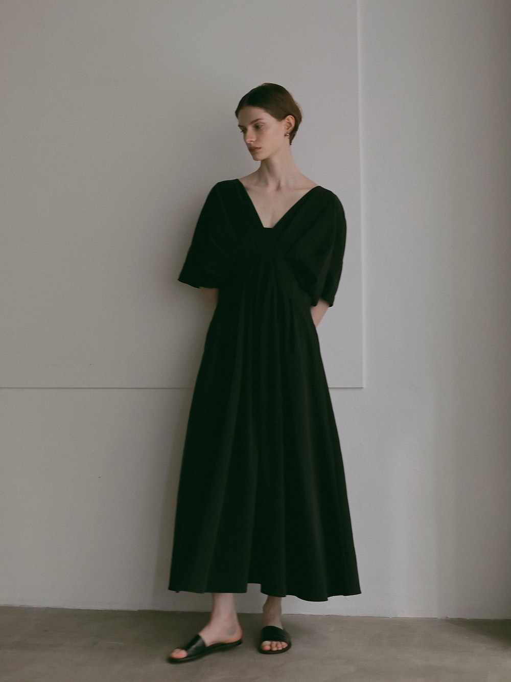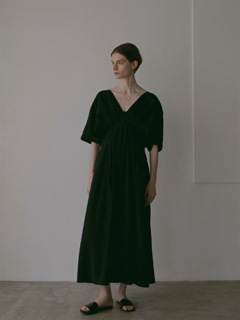 ウエストにタックを取りフィット&フレアのシルエットに仕上げたワンピース。たっぷりと生地を使ったボリューム感も華やかさを演出します。メリハリのあるシルエットでシンプルながら存在感のあるアイテム。深めに開いた衿元もヘルシーな抜け感を感じさせるポイントに。