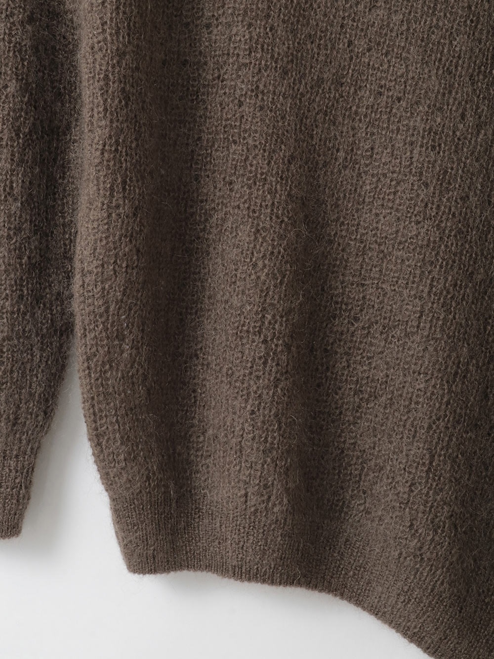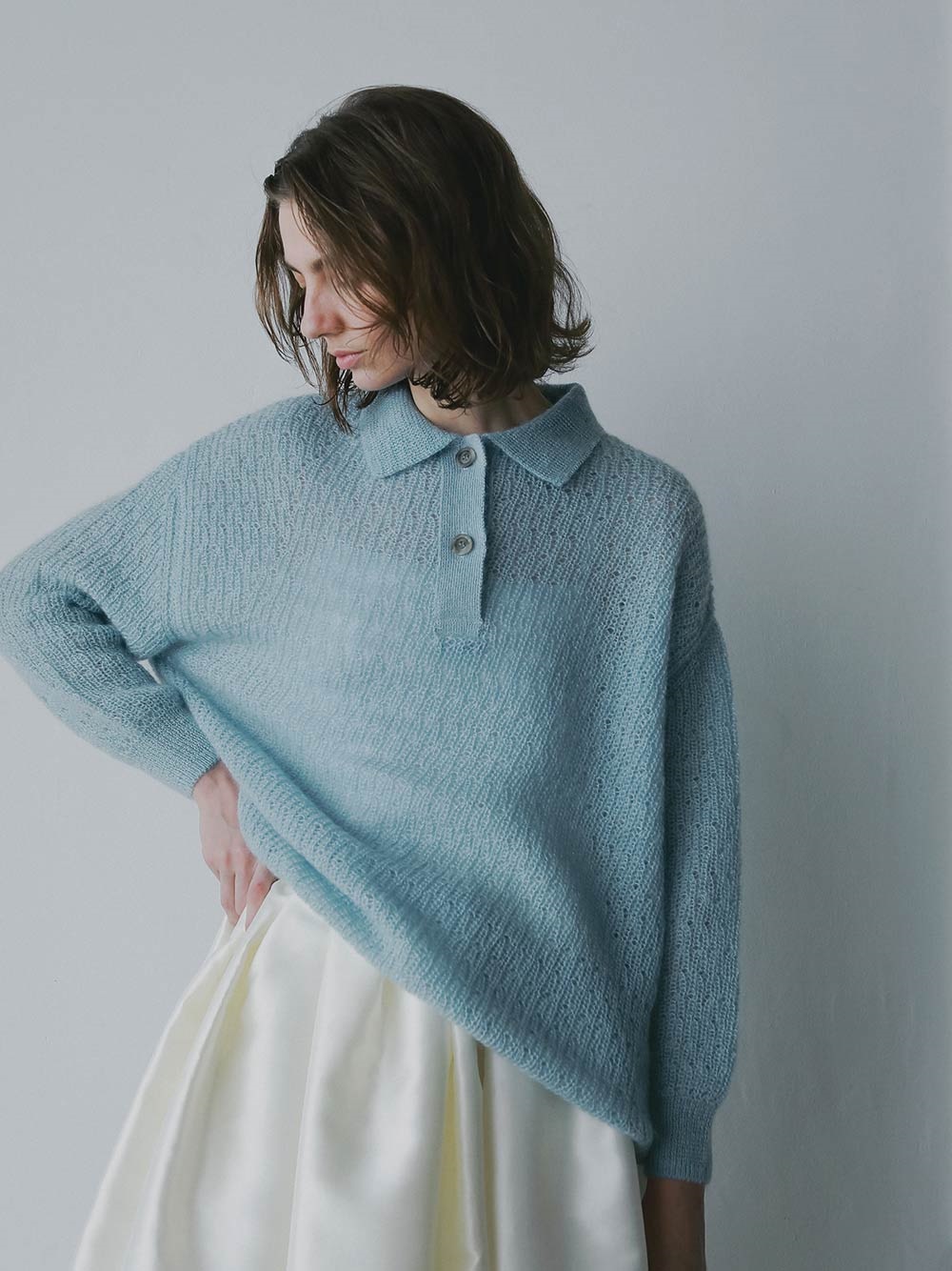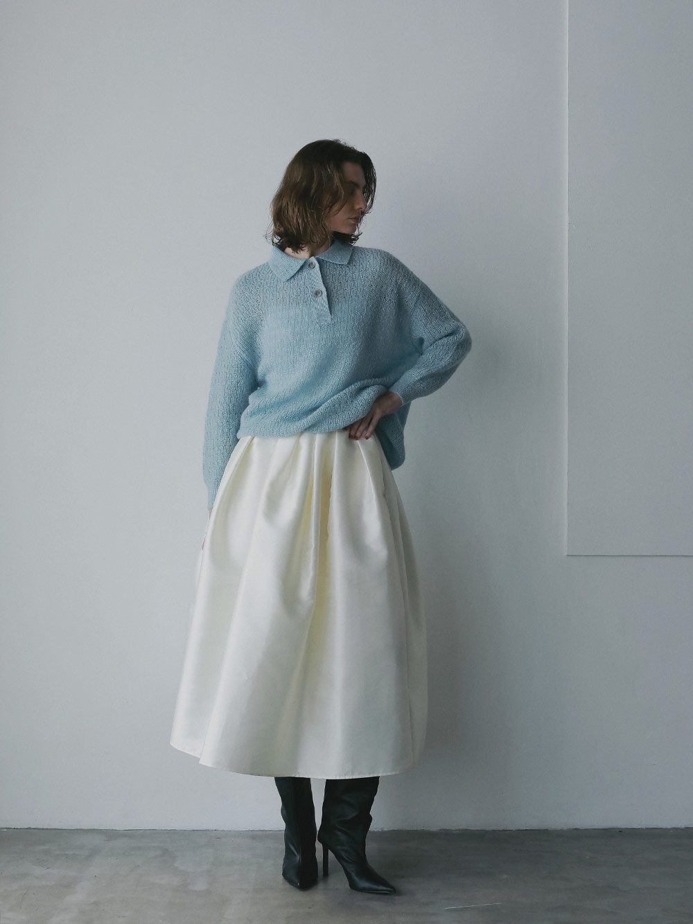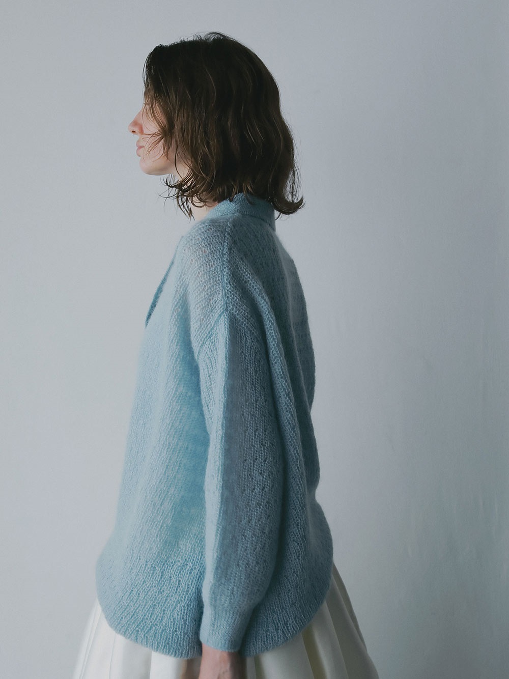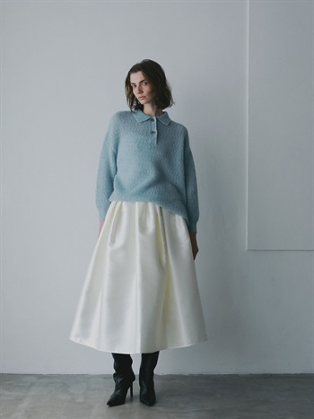 シグネチャーのハンドニットをメインに2019AWスタート。国内生産にこだわり布帛・カット・ニットの知識を生かして機械編みだけではなく、背景の数少ないハンドニットや家庭機、手横機を生かしたニットを多く展開する。