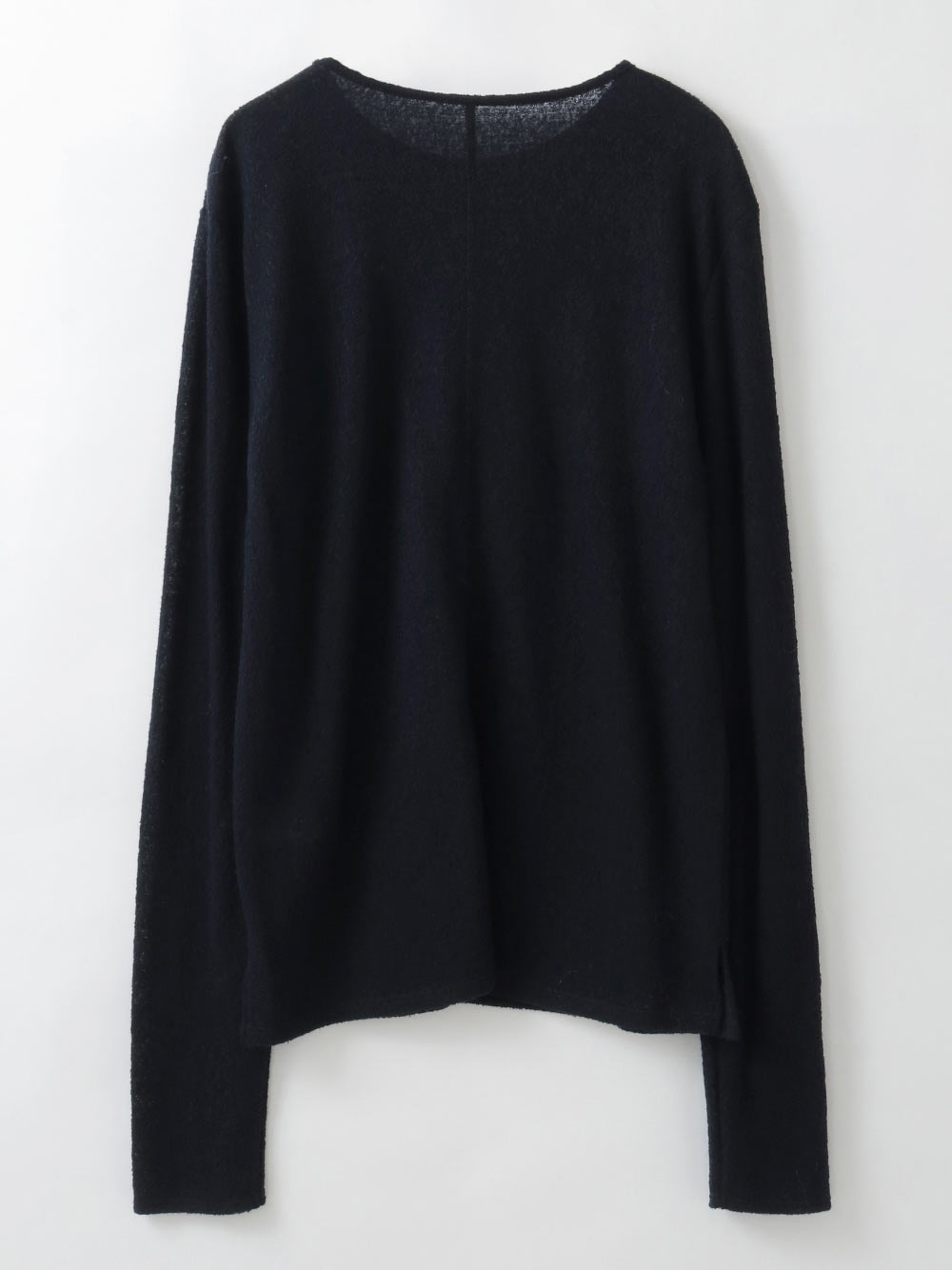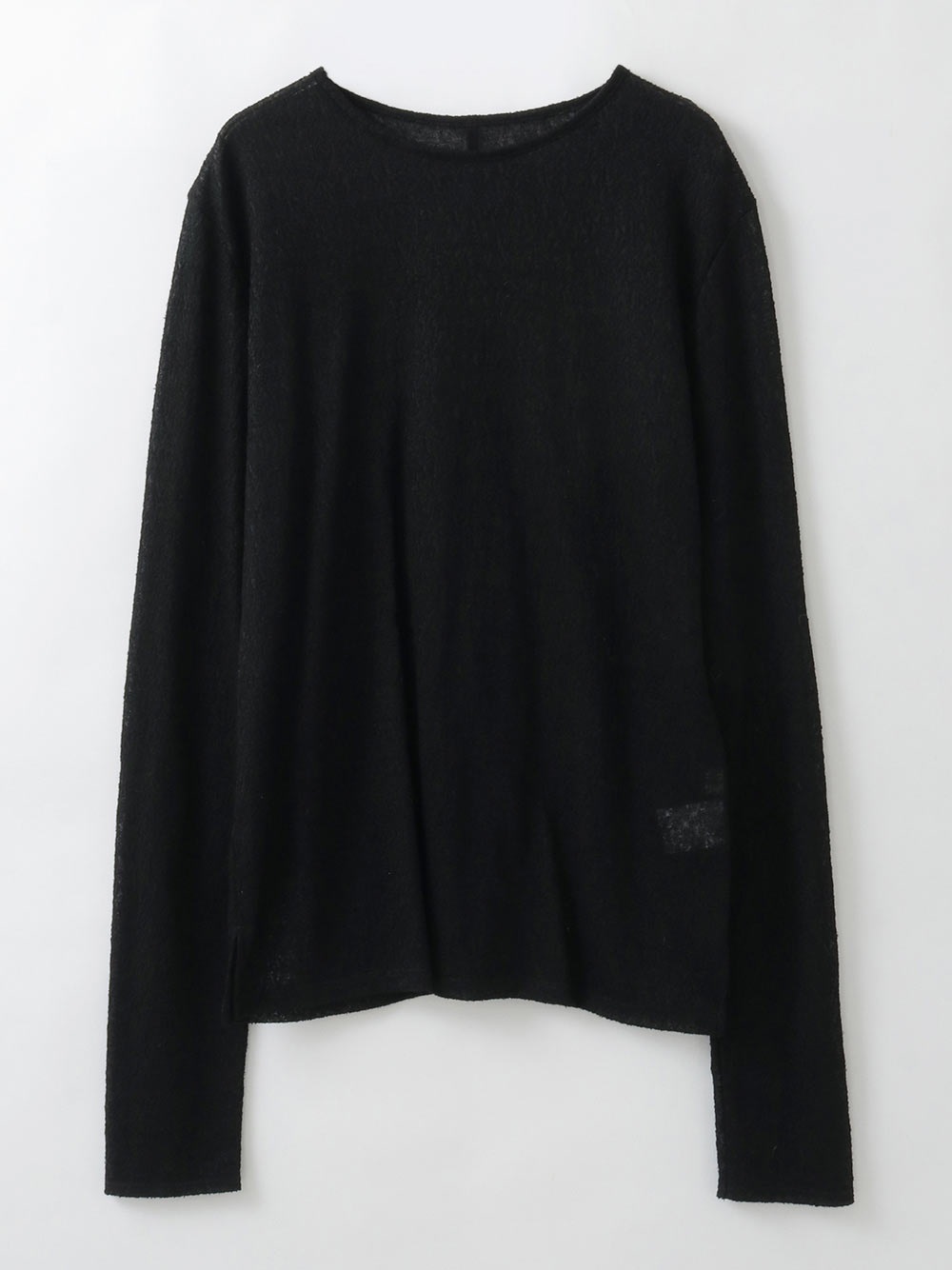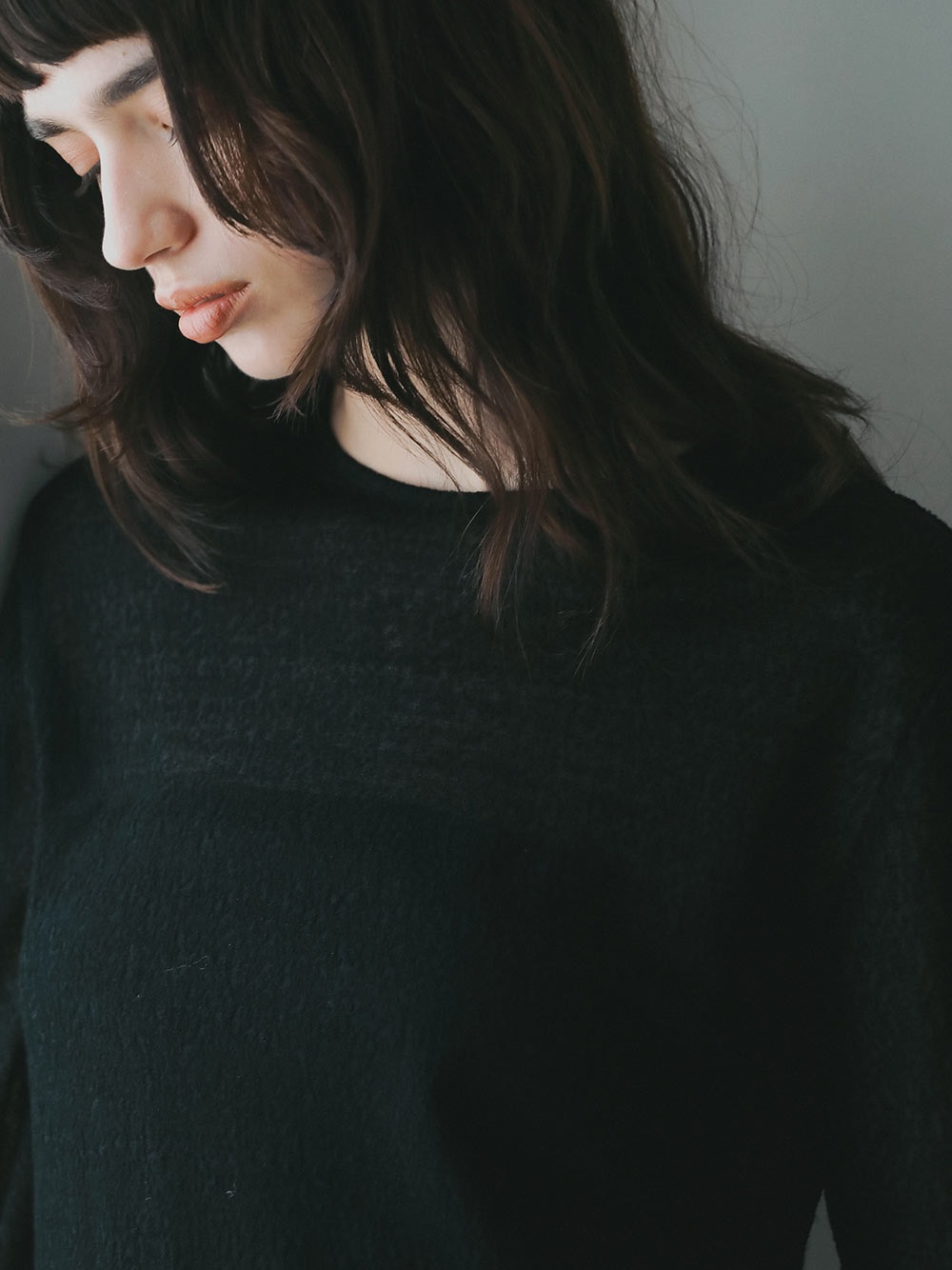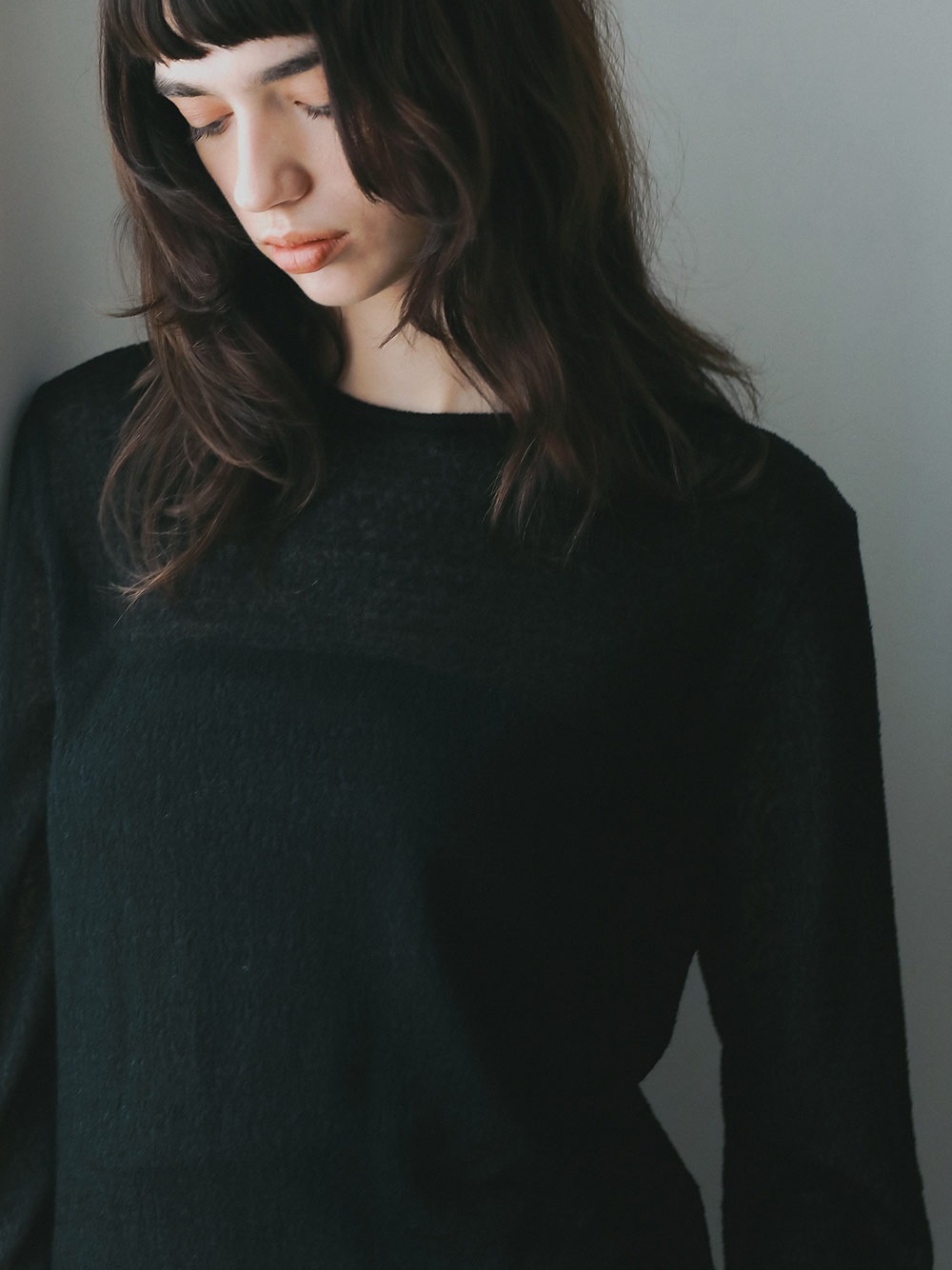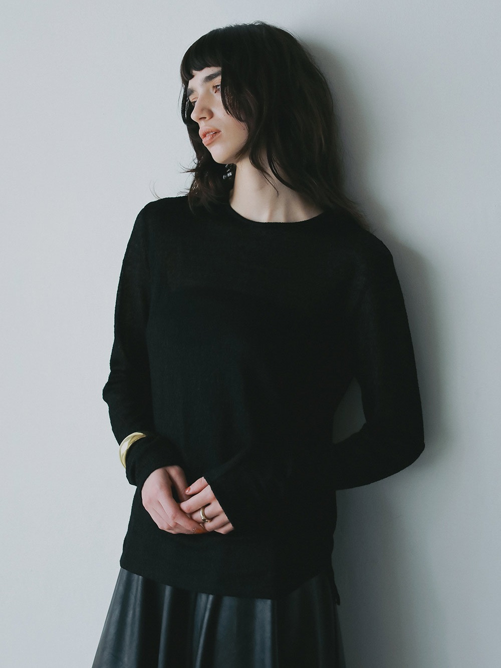 ウール混のシアージャガードプルオーバー。透け感のある繊細な素材でありながらウールの温かみも感じる1枚。肌触りもなめらかで素肌に着用していただけます。使いやすい丈感とタイトすぎないサイズでどんなボトムにも合わせやすく、無地見えするささやかなジャガードはコーディネートのアクセントに。手洗いできるイージーケアもポイント。