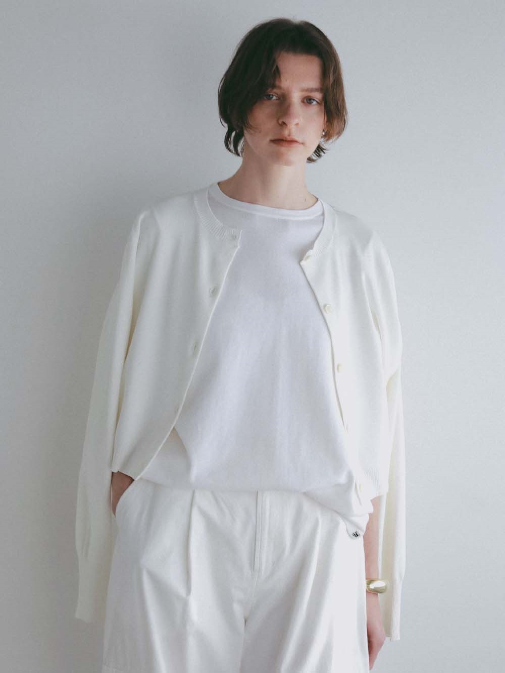 タイト過ぎないリラックスした身幅や袖で、下に着るものを選ばずインナーの変化によって幅広く着回しがききます。