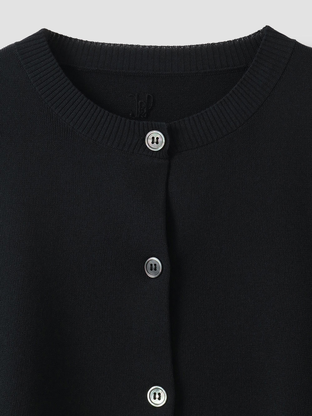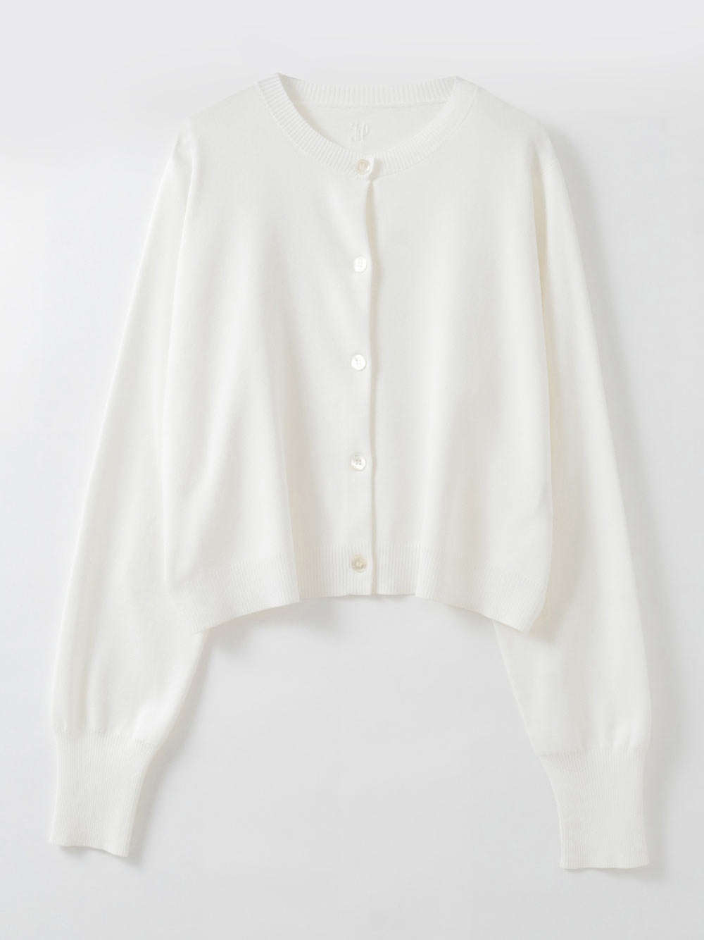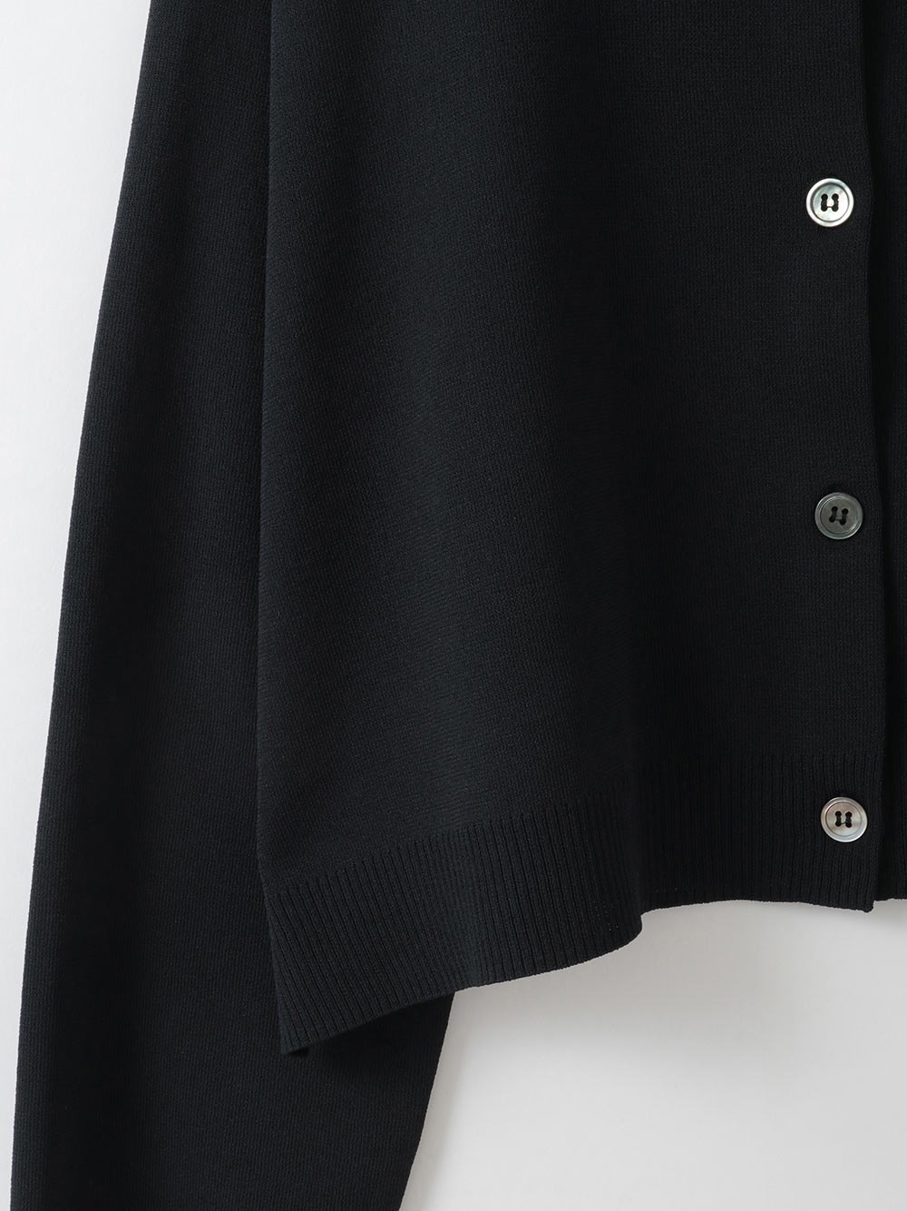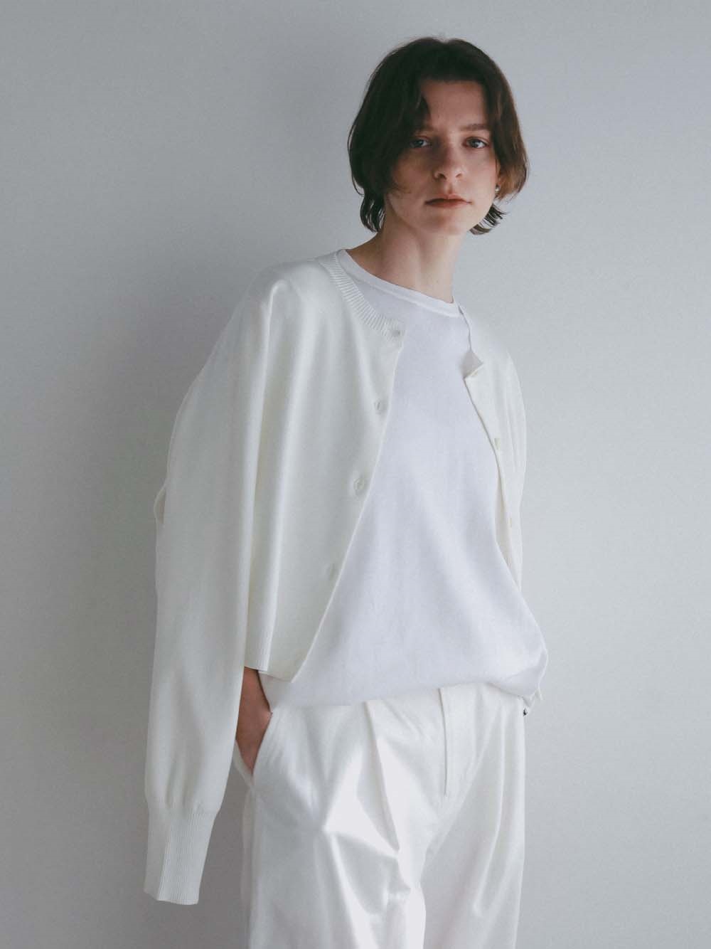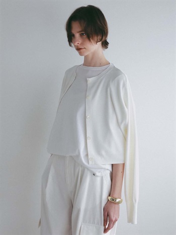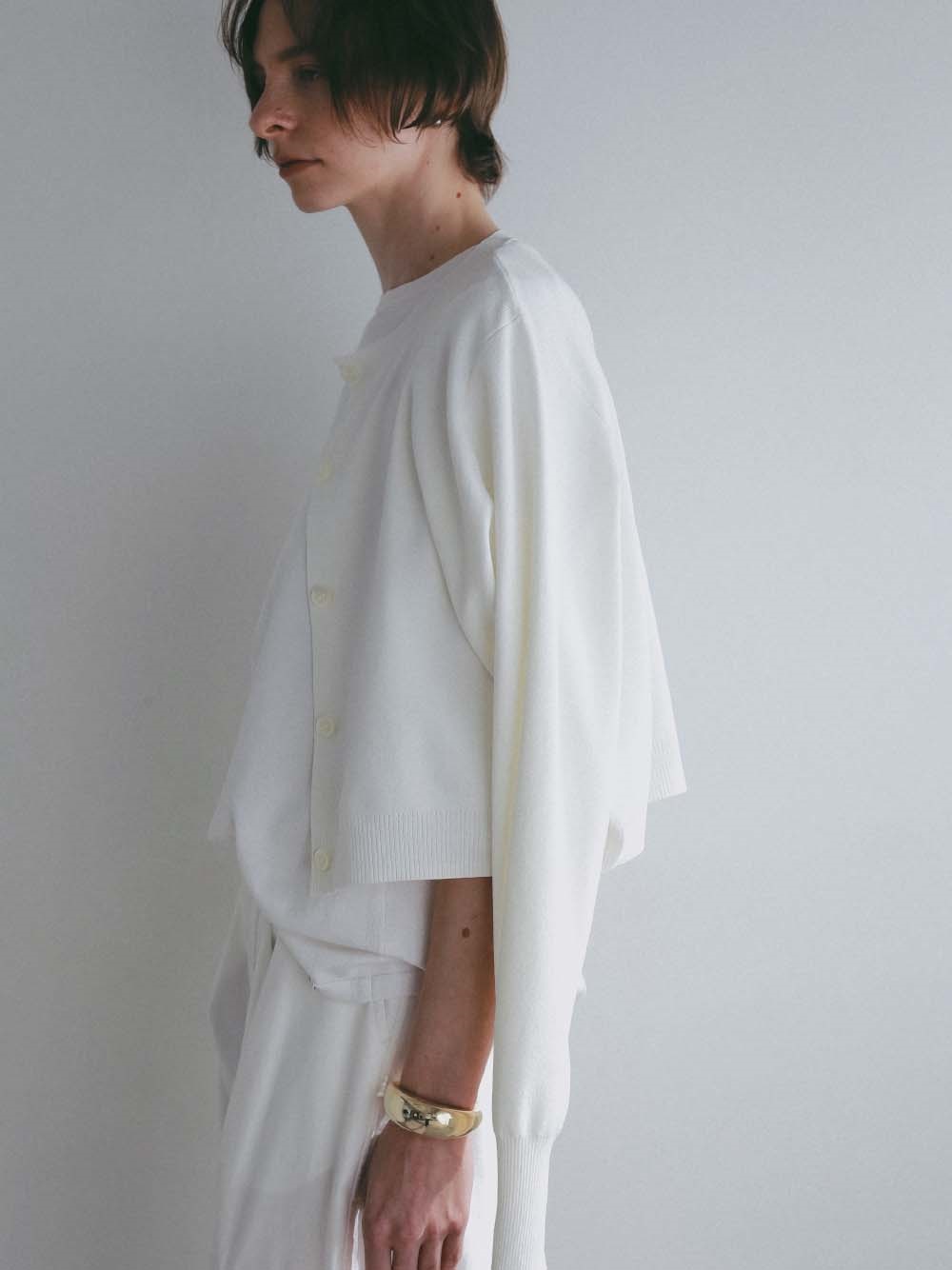 サスティナブルな自然由来のセルロース繊維であるアセテート混のニットカーディガン。しなやかで柔らかく、肌あたりが優しい着心地。