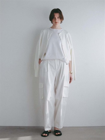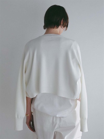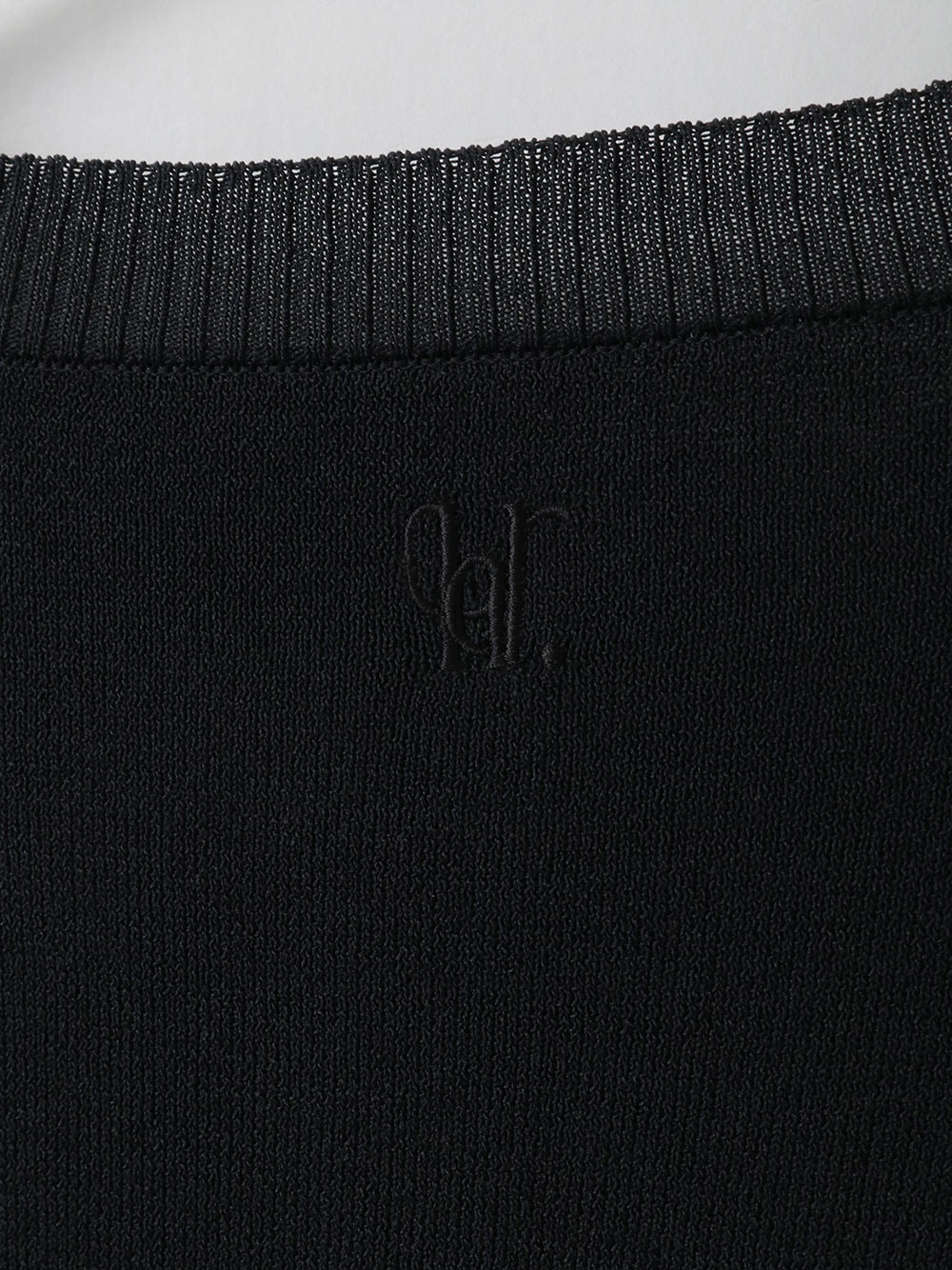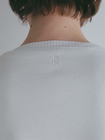 バックの衿ぐりに同色のブランドロゴを刺繍しワンポイントに。同素材のTシャツニットとのセットアップもおすすめです。手洗い可能なイージーケア。