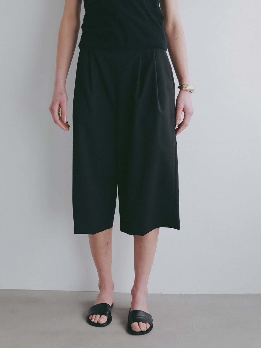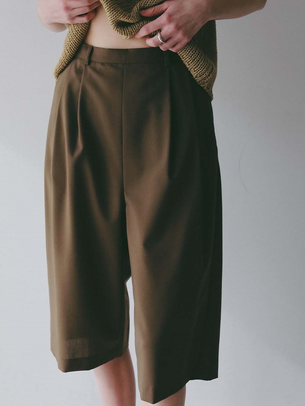滑らかな梳毛のウール混素材を使用したバミューダパンツ。