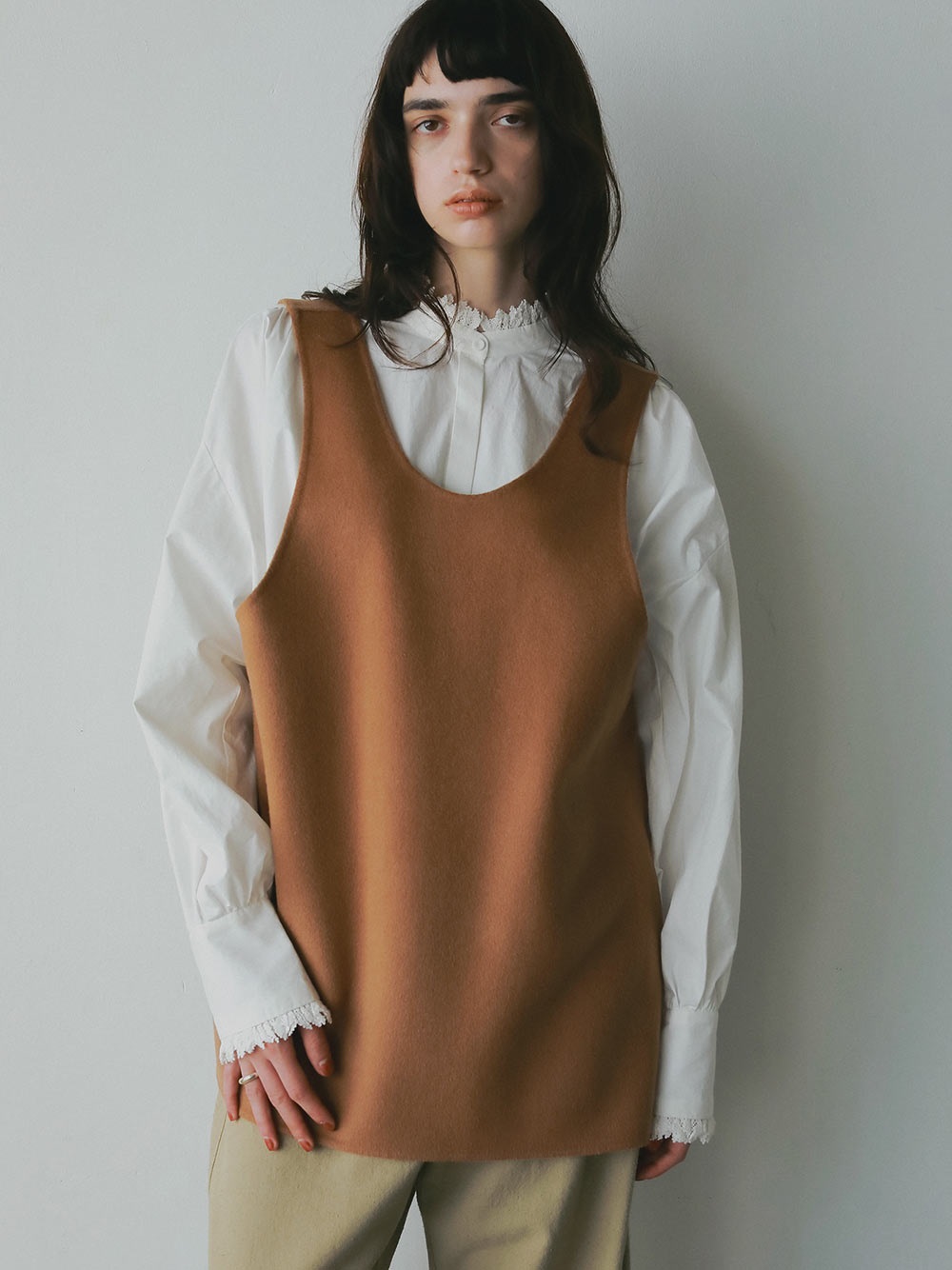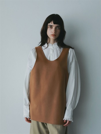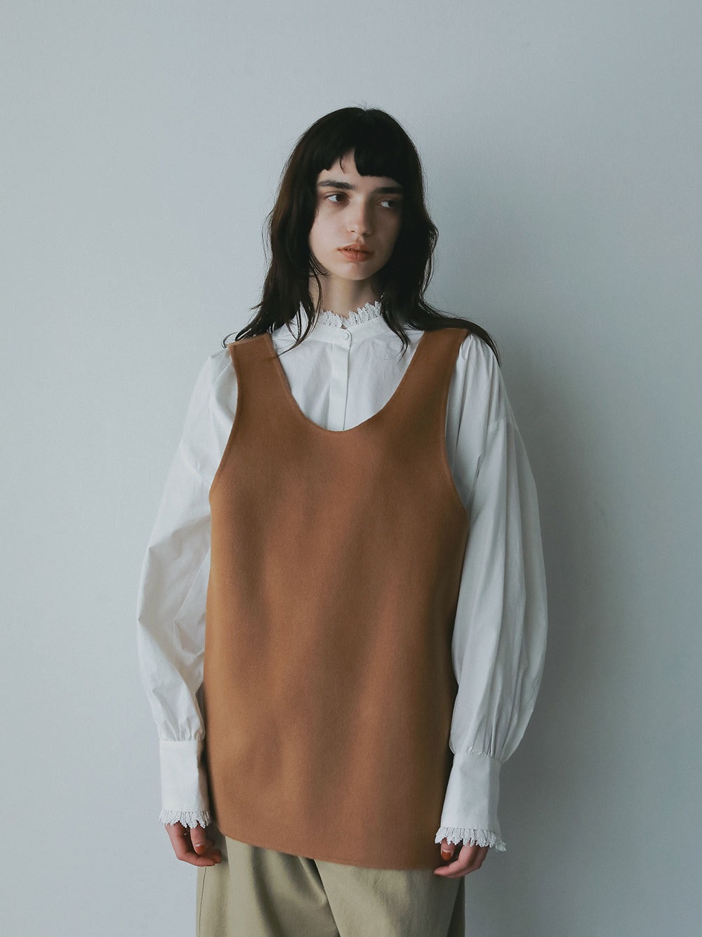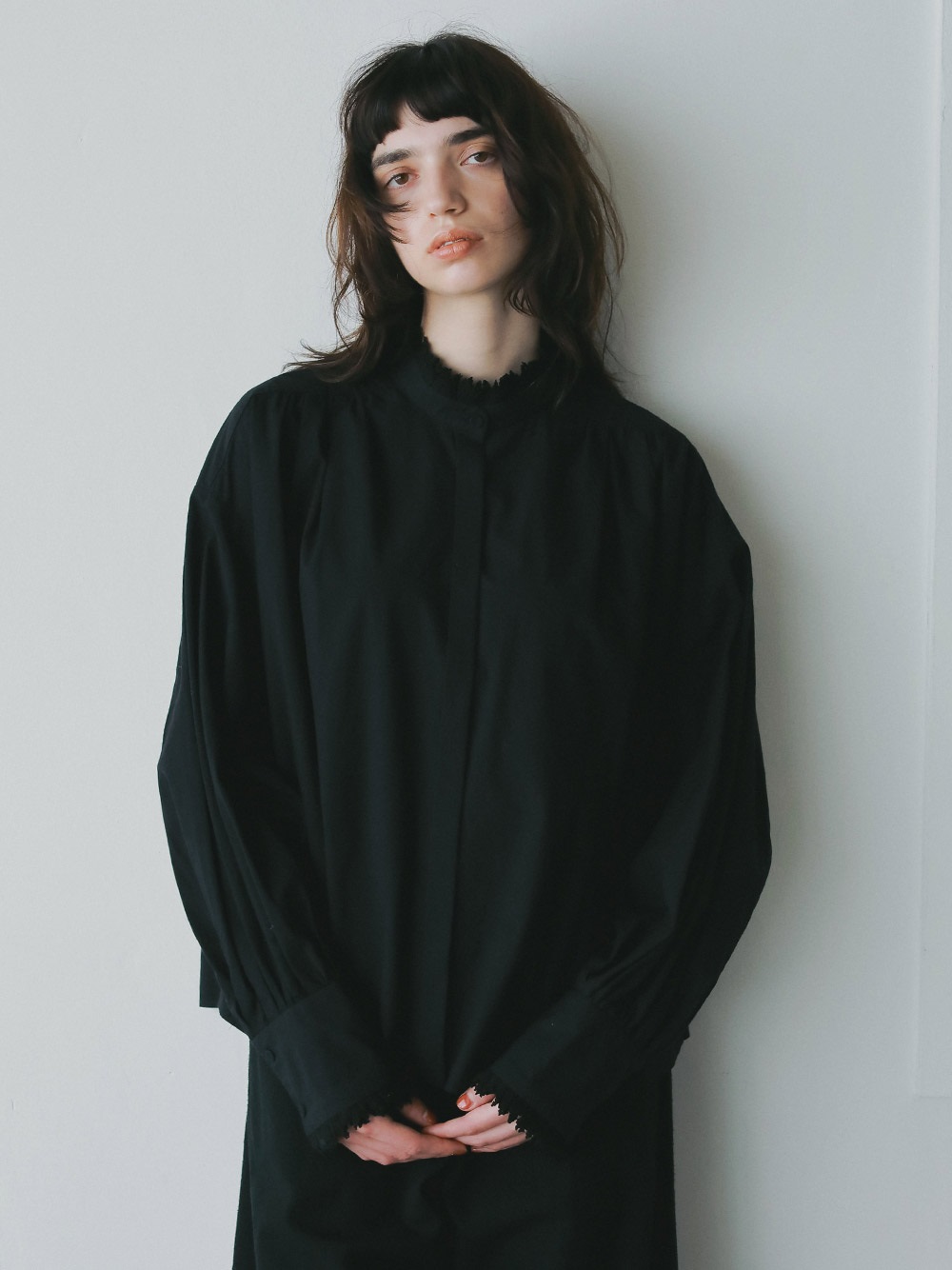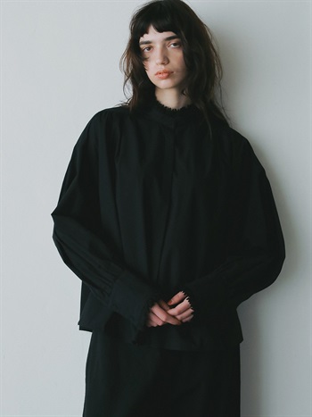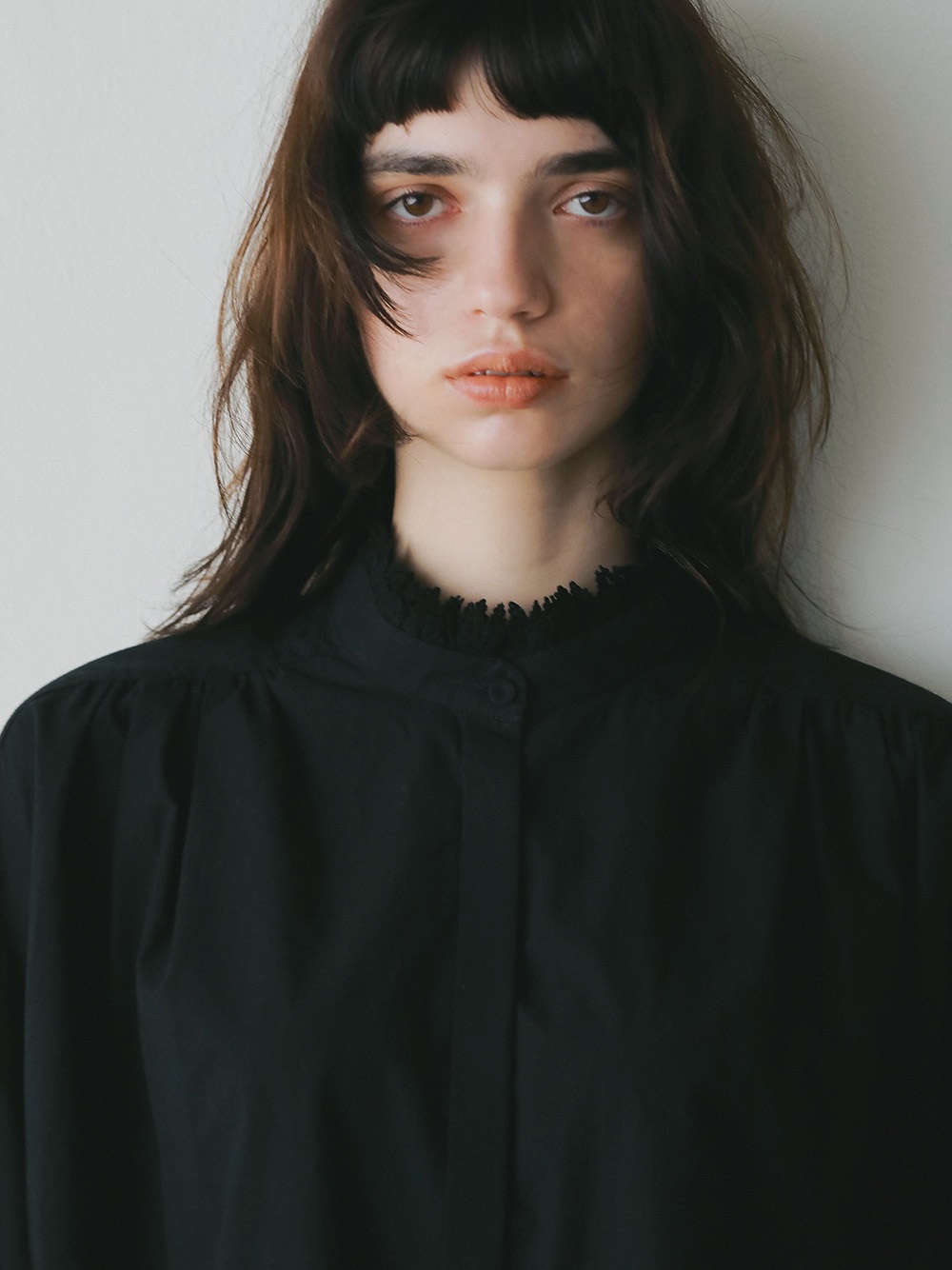 ヴィンテージのブラウスから発想を得たブラウス。衿とカフスにレースをあしらい雰囲気のあるクラシカルなアイテムに仕上げました。ニットなどのインナーとして衿や袖のレースをのぞかせるスタイルもおすすめです。