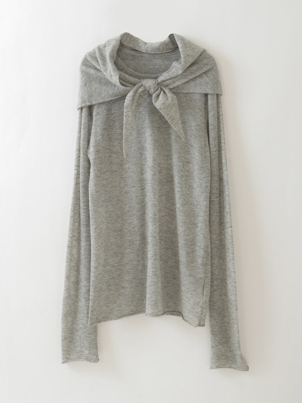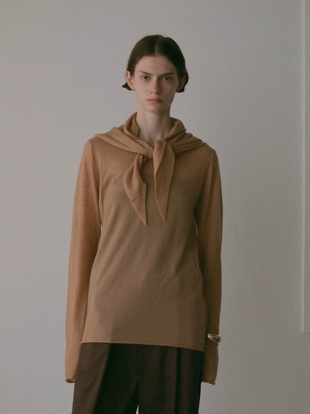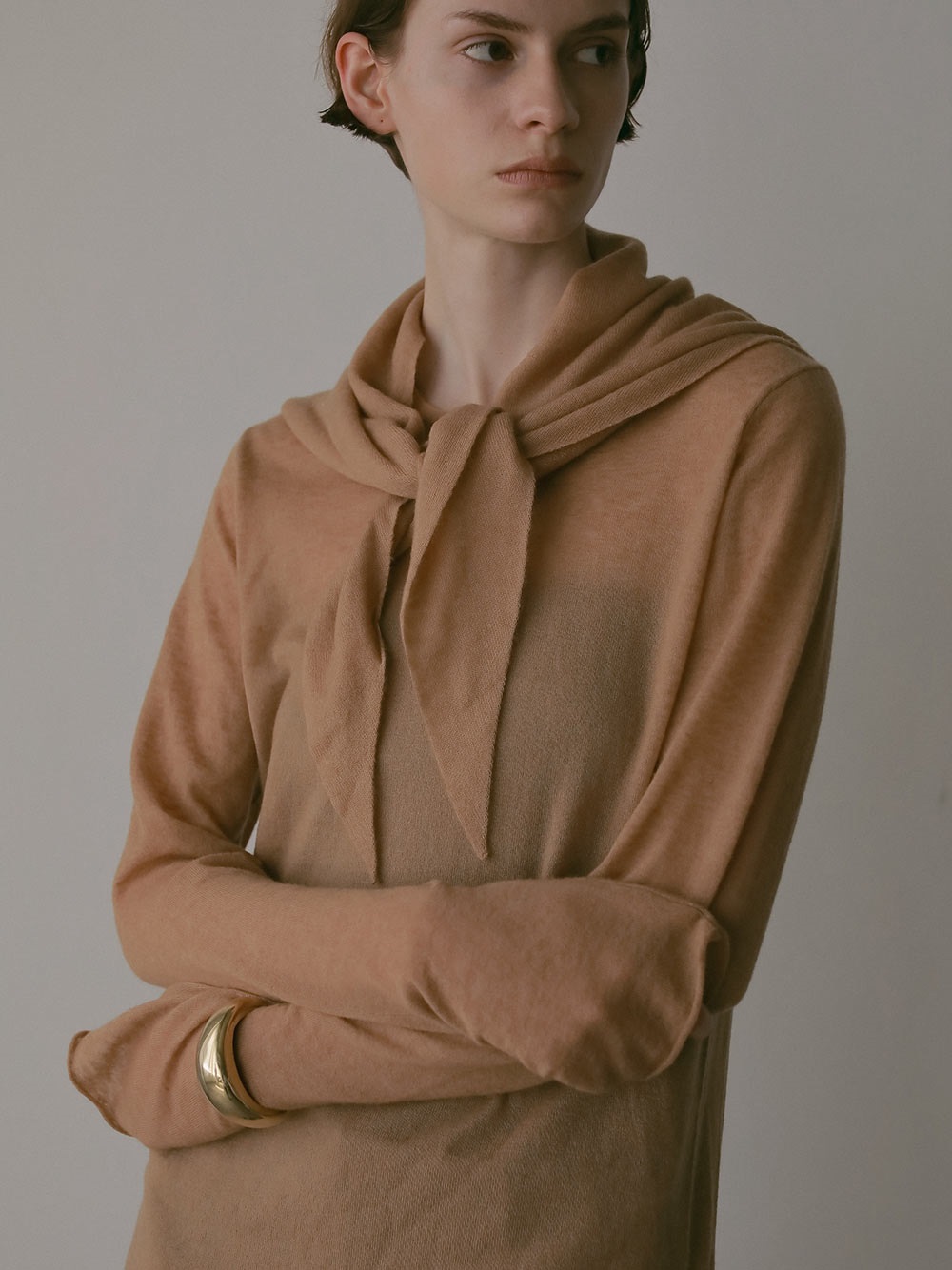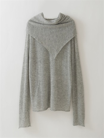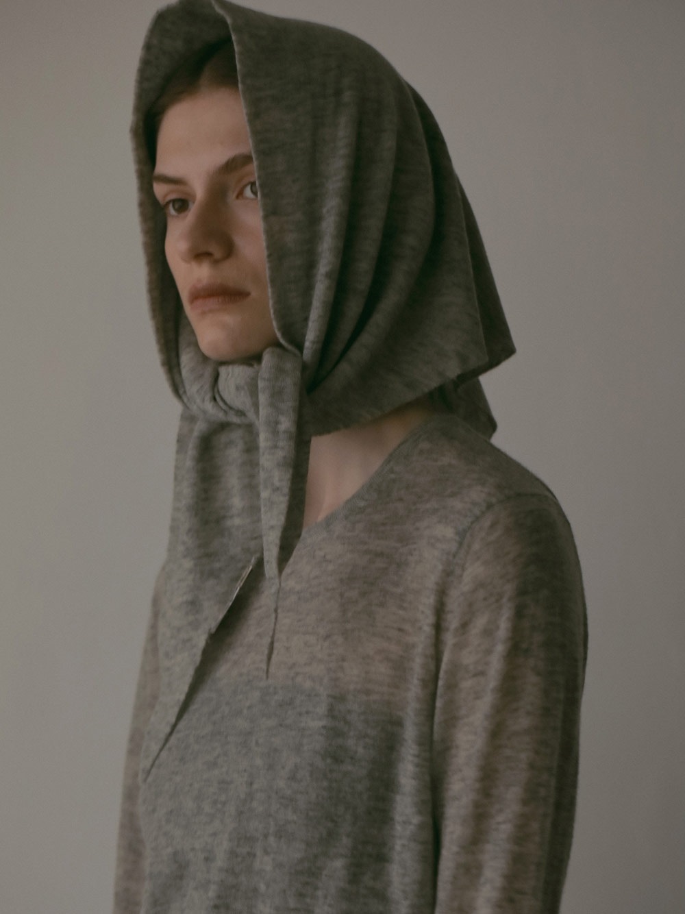 カシミヤブレンドの繊細な糸を使用したハイゲージプルオーバー。程よくシアーな編地と滑らか肌触りが他にはない1枚。汎用性のあるプルオーバーに同じ編地のバブーシュカも加えたセットアイテム。スタイリングで様々な楽しみ方ができるアイテムに仕上げました。