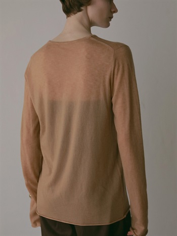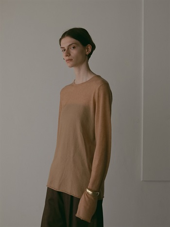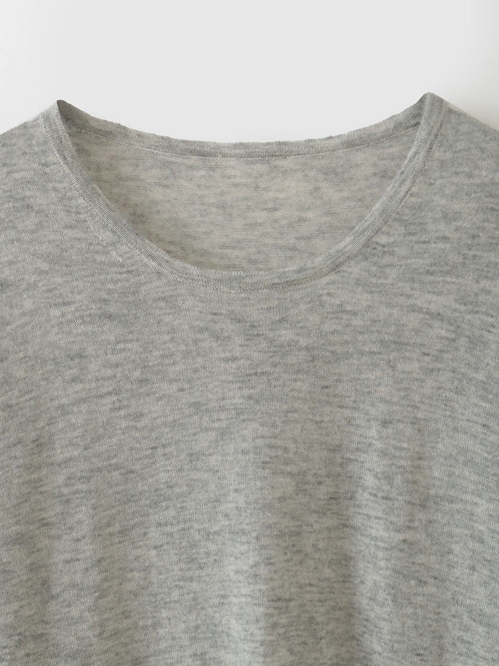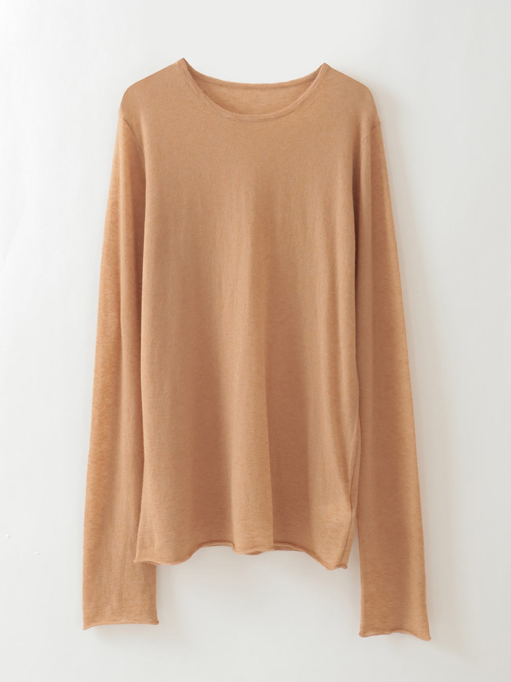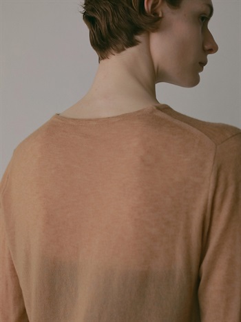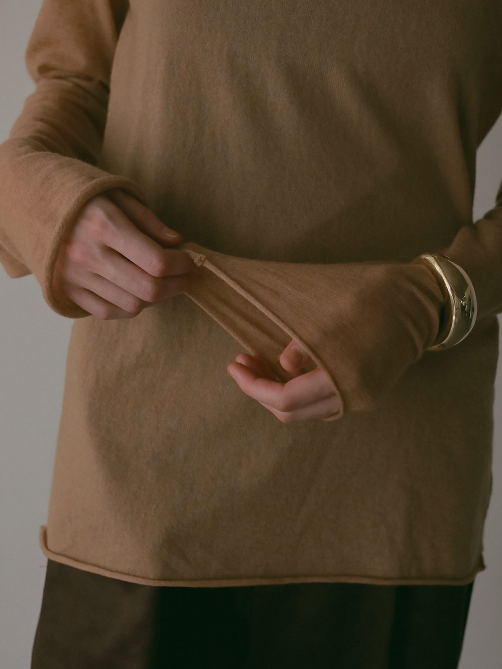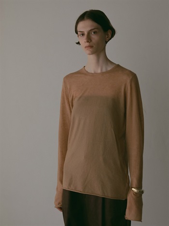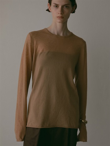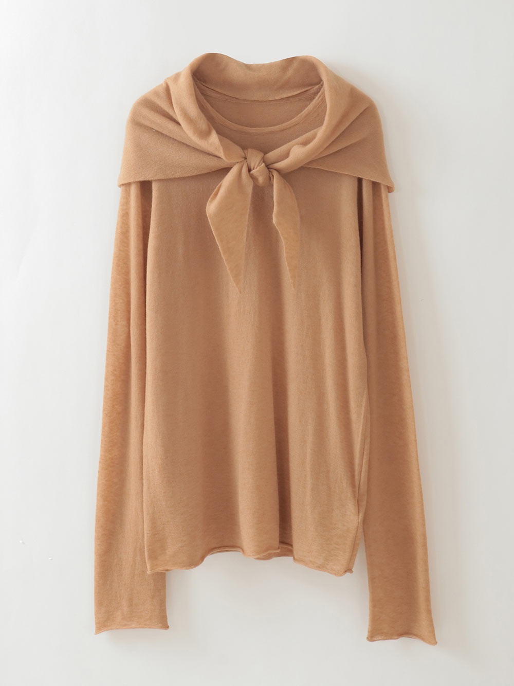 カシミヤブレンドの繊細な糸を使用したハイゲージプルオーバー。程よくシアーな編地と滑らか肌触りが他にはない1枚。汎用性のあるプルオーバーに同じ編地のバブーシュカも加えたセットアイテム。スタイリングで様々な楽しみ方ができるアイテムに仕上げました。