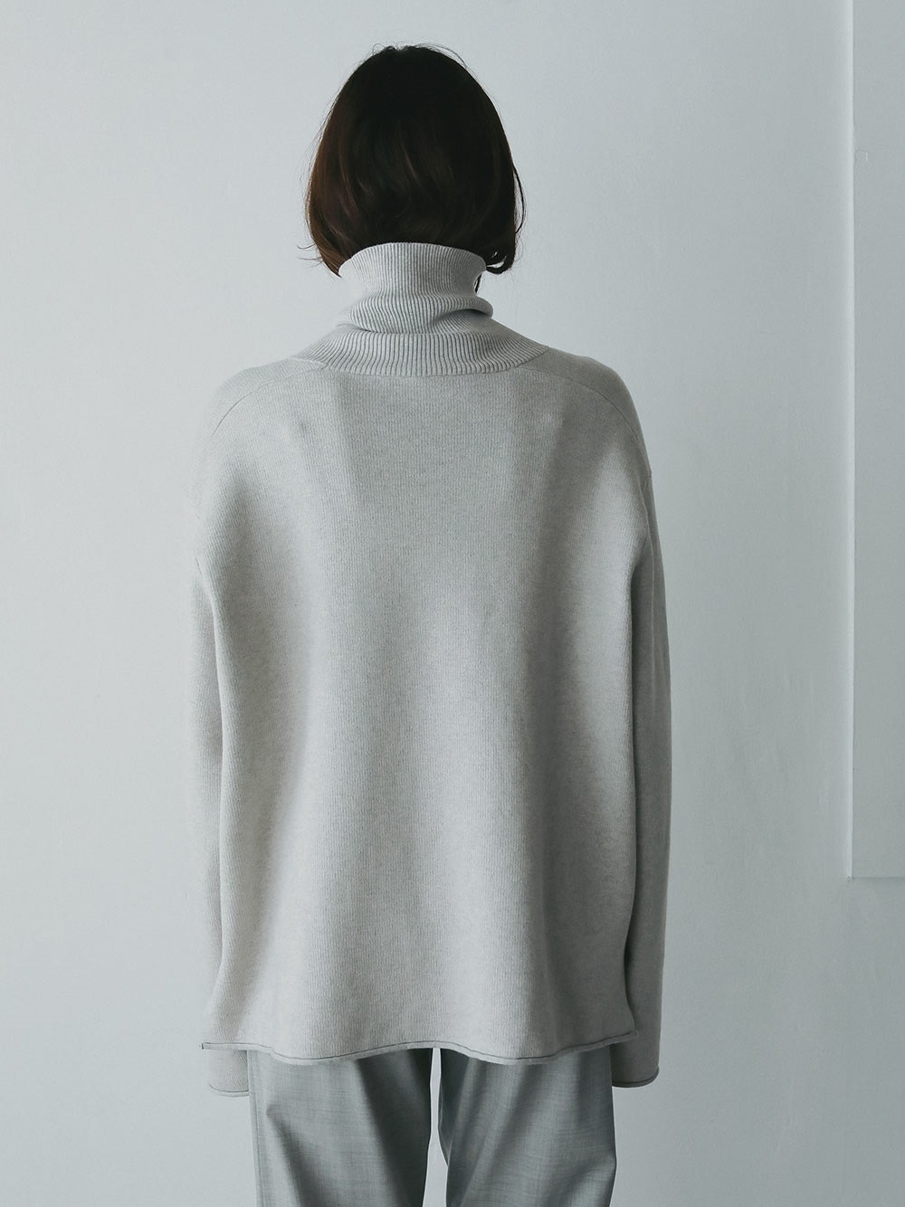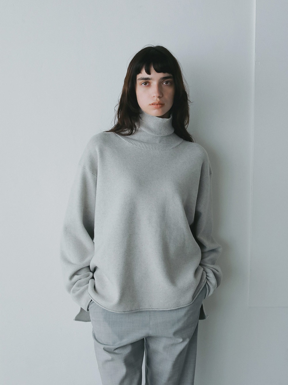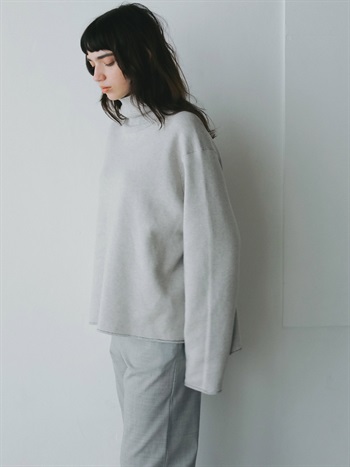 • コットンカシミヤスタンドカラーニット(12ライトグレー-フリー)