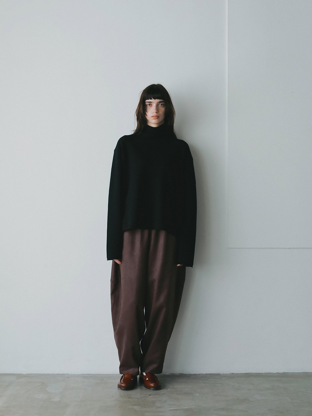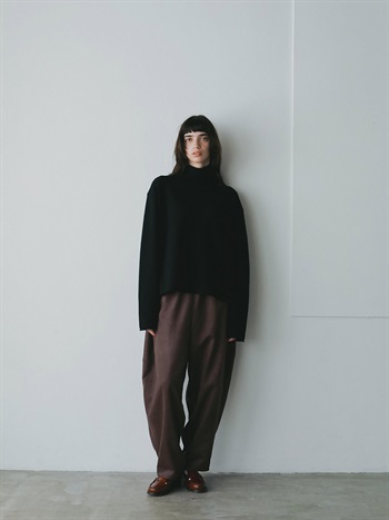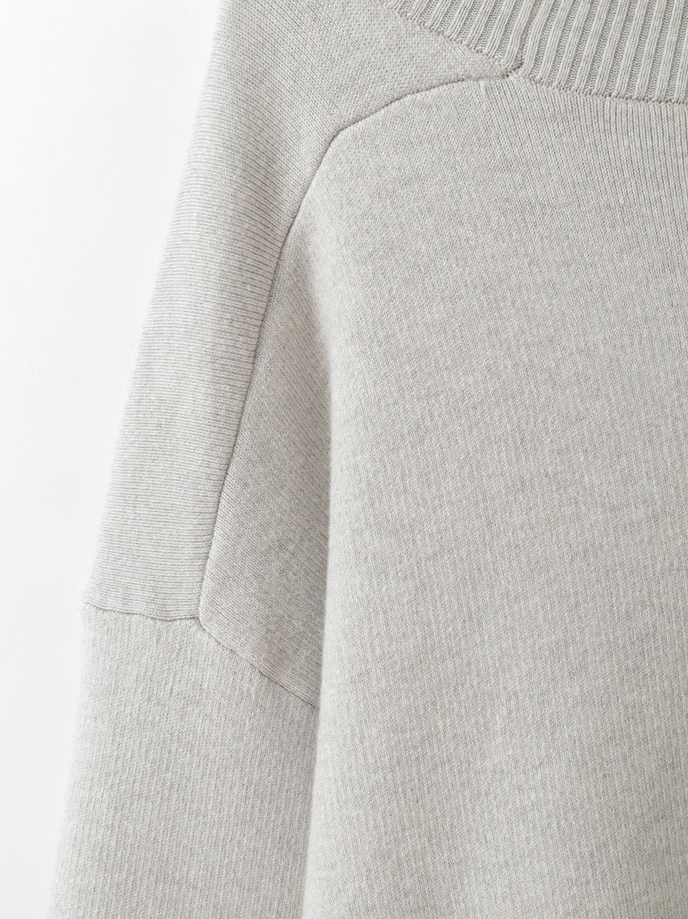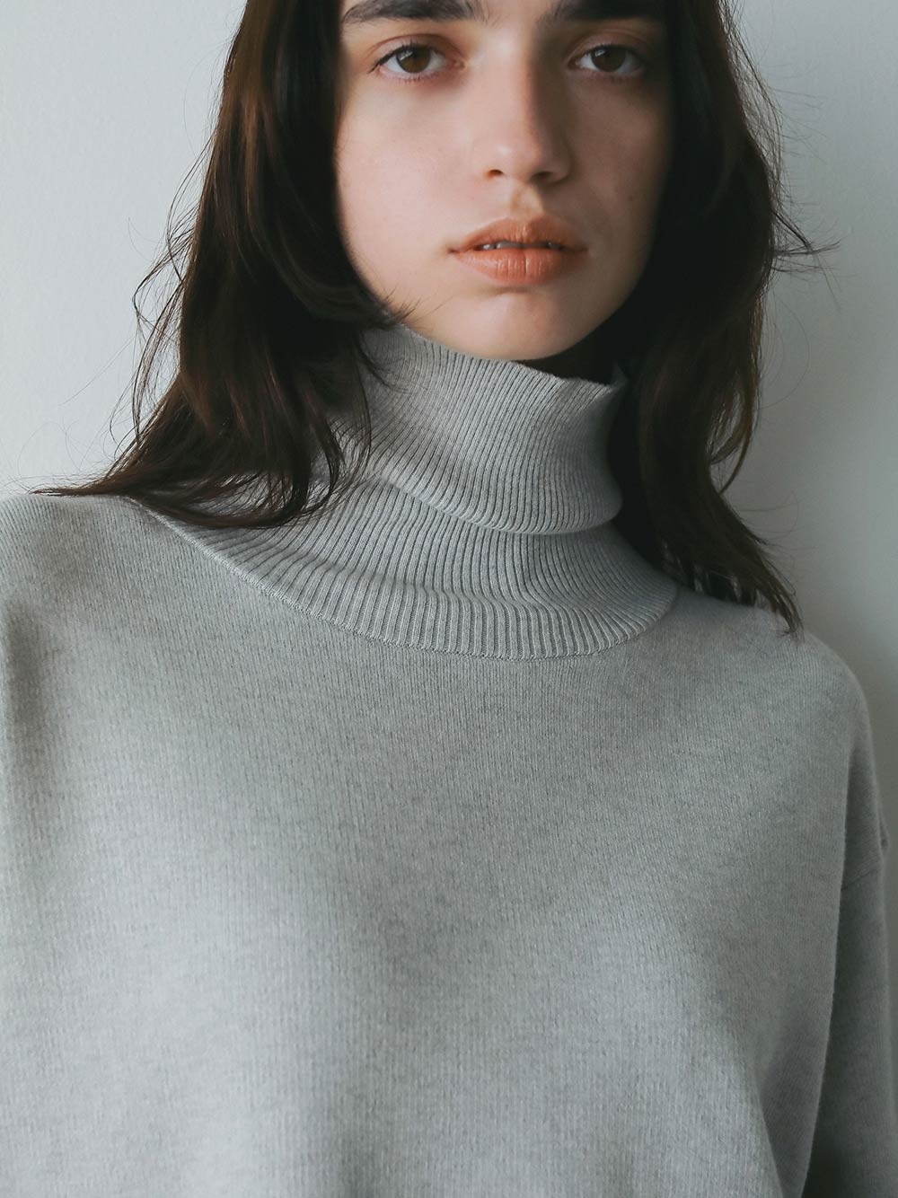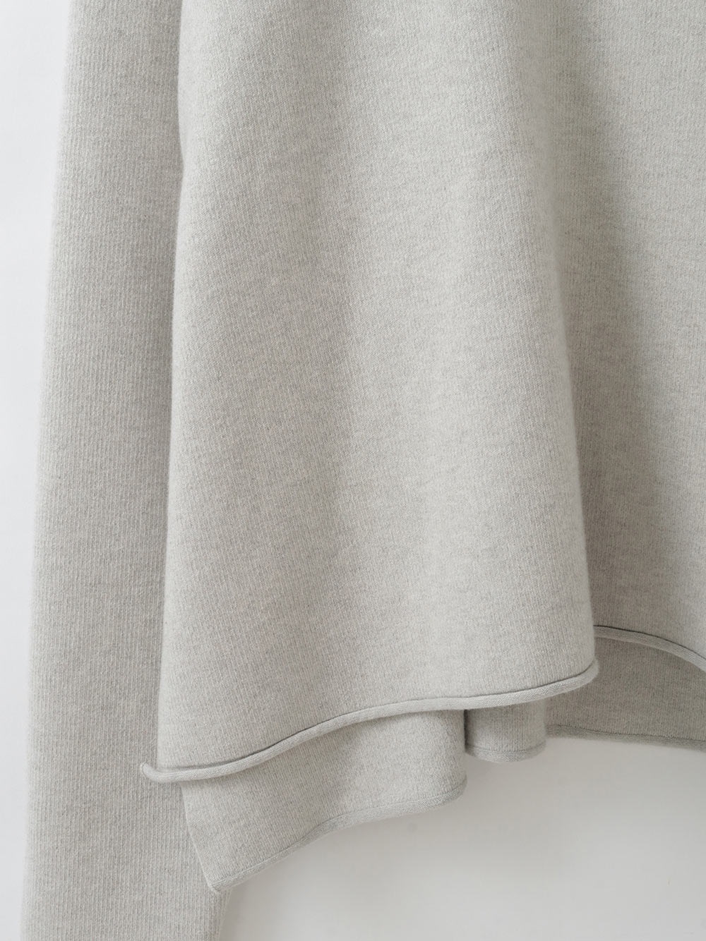 コットンカシミヤのスムースニットプルオーバー。カットソー感覚で着られる適度な厚みと軽さが特徴でありながらニット特有のハリ感でカジュアルすぎず綺麗めに着用いただけます。シンプルな見た目で飽きのこないデザインですが、サイズやバランスにこだわりどんなボトムにも合わせられる万能な1枚