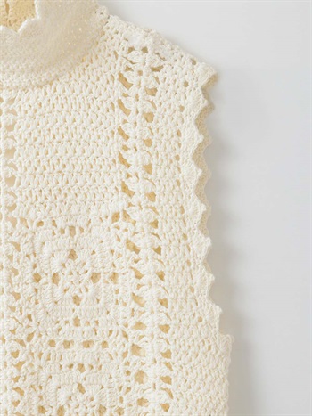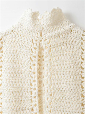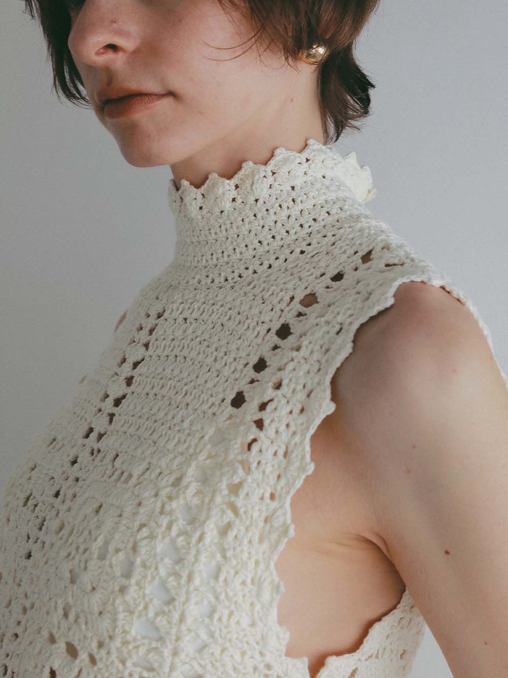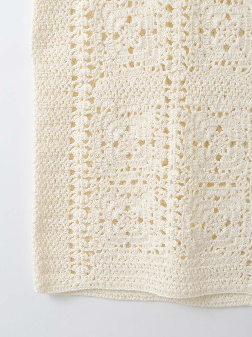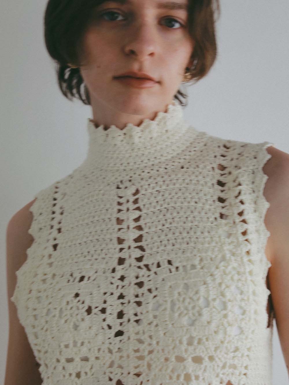 繊細なクロッシェ編みが特徴のニットブラウス。