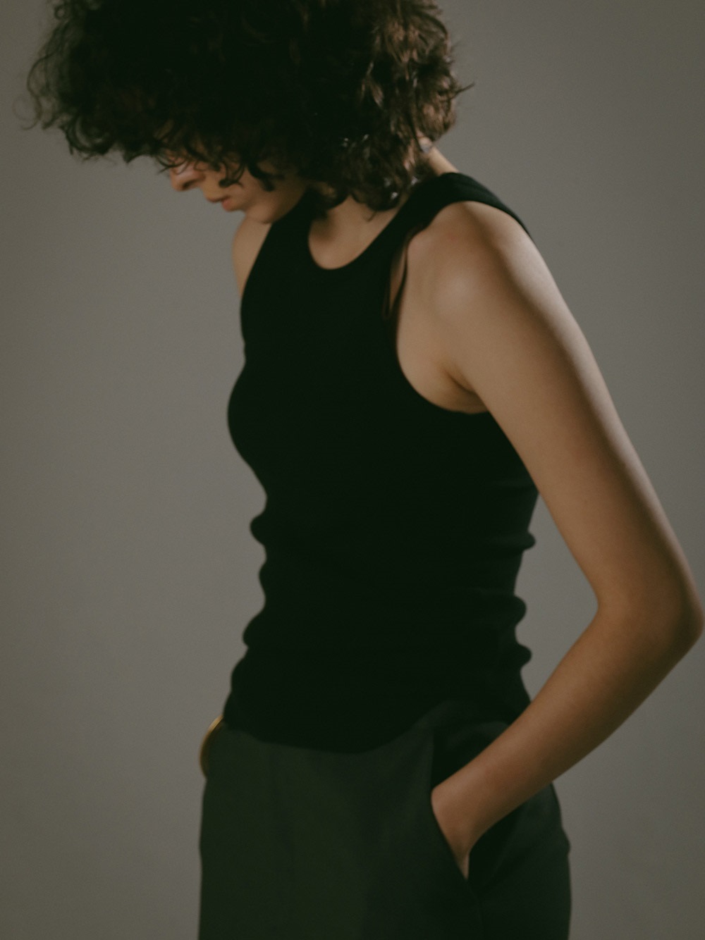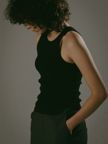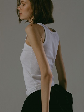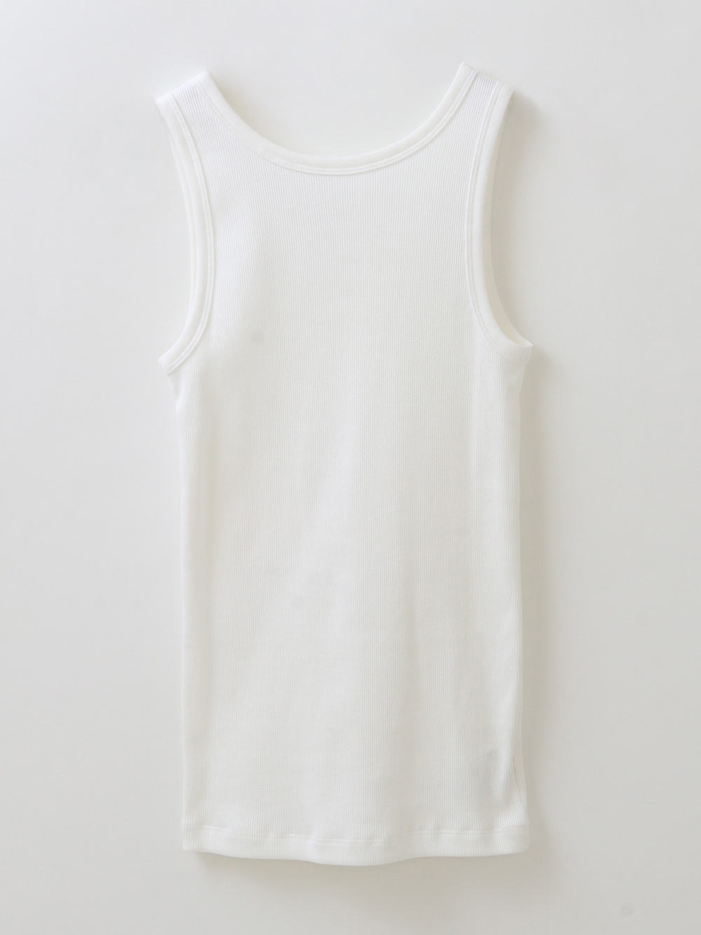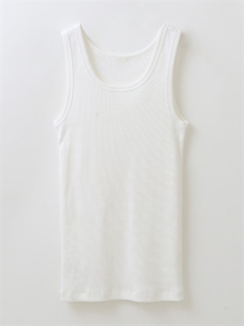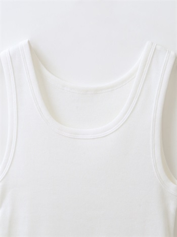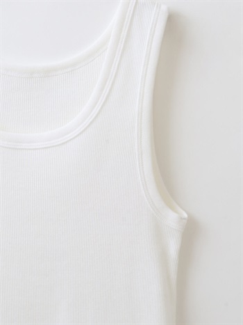 超長綿をベースにしたコットンリブのタンクトップ。繊維強度がありコットンながらも上品な光沢感や柔らかい風合いが特徴です。