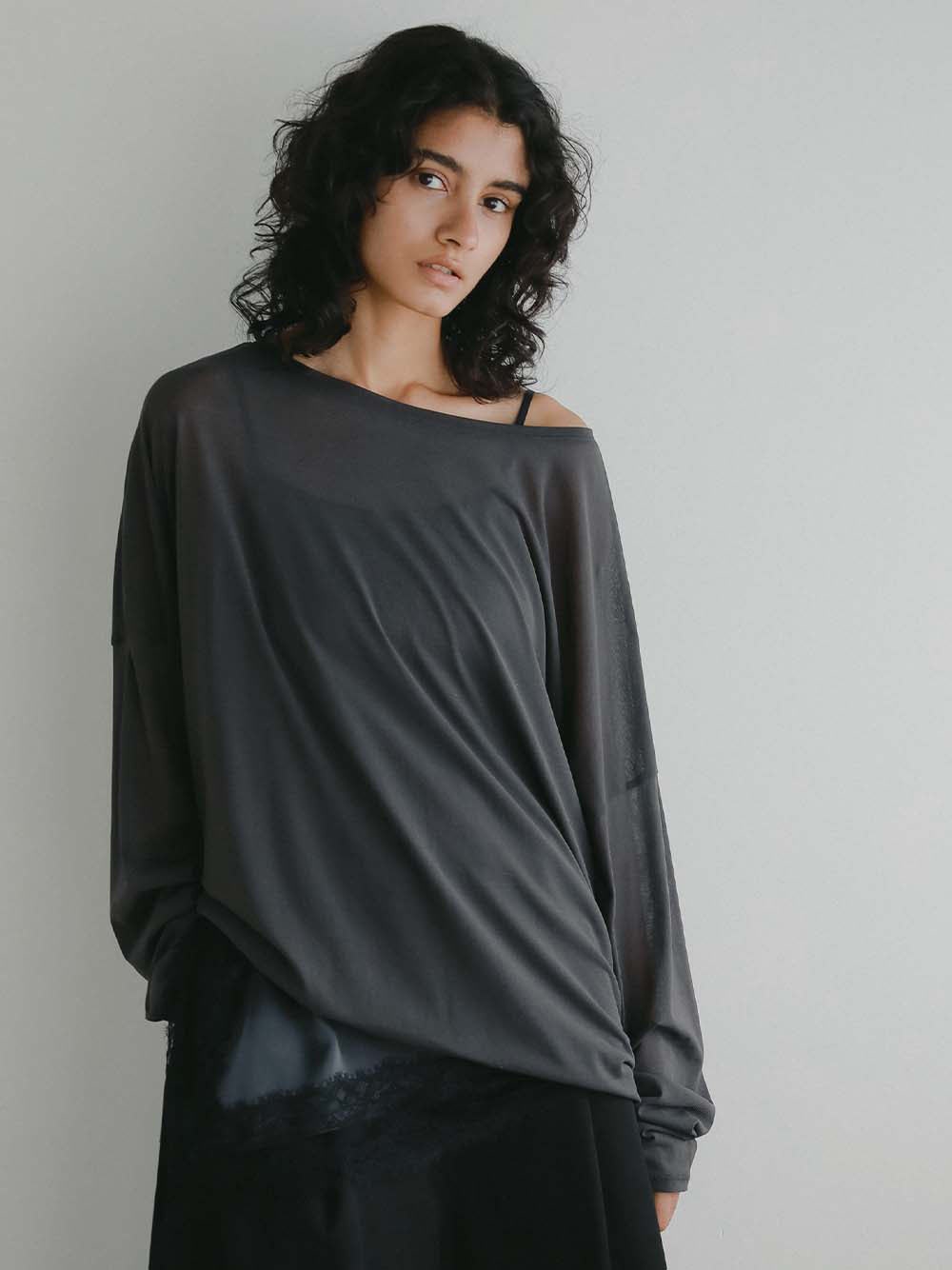 シアーカットソーと同素材のビッグシルエットプルオーバー。