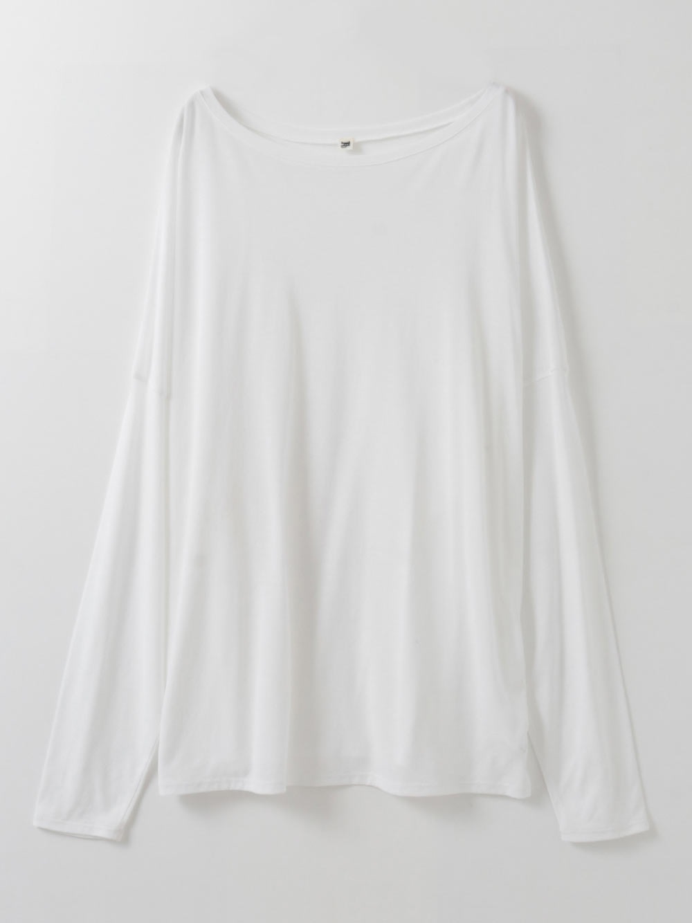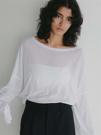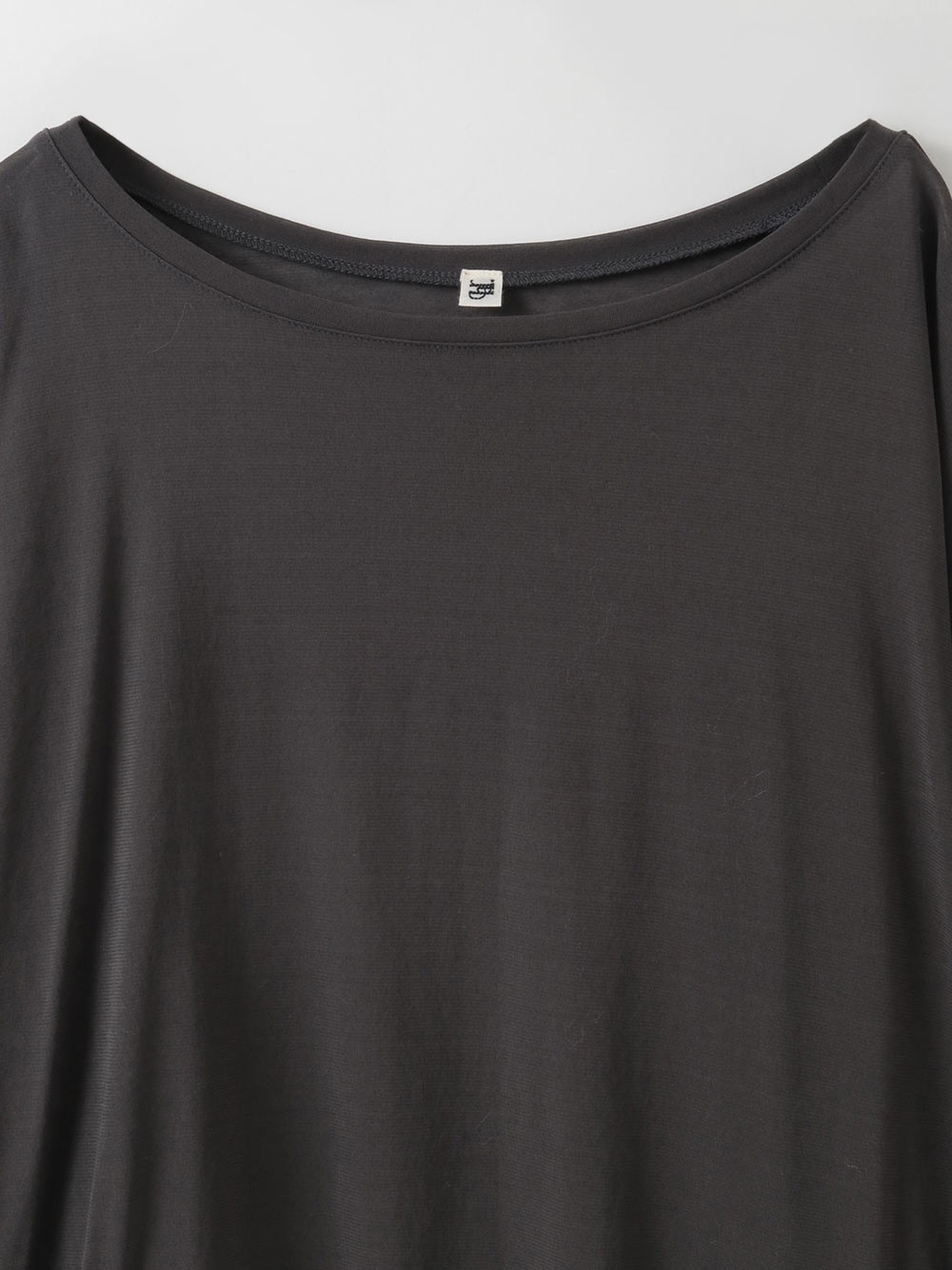 ボディはかなり大きめのメンズサイズのようなビッグシルエットに設定しているので、薄い素材感ですが肌離れがよく透け感を気にせずをエアリーに着用頂けます。