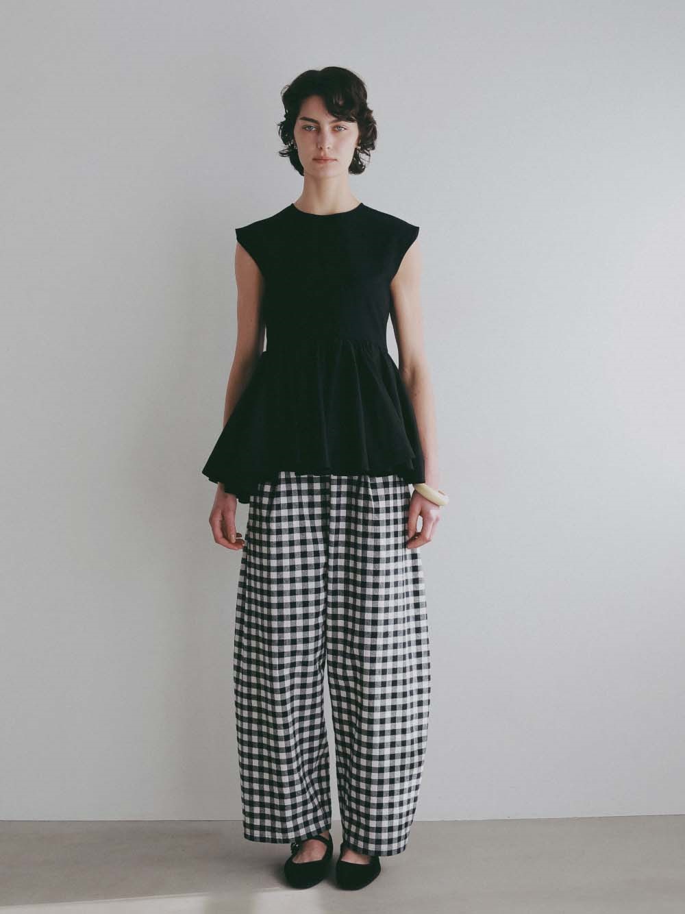 ボリュームのあるペプラムフレアが目を引くプルオーバー。