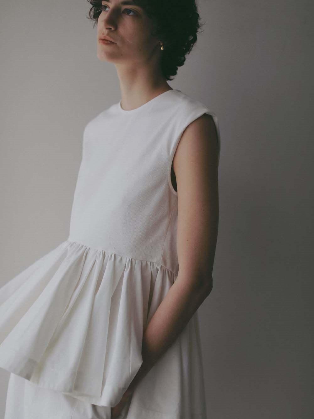 身頃はしっかりとした肉感のカットソーで仕立て、コットン素材のフリルがドッキングされたデザインです。