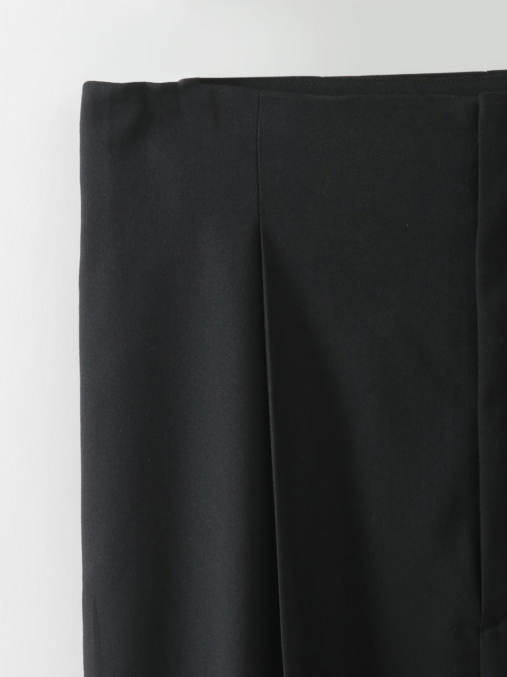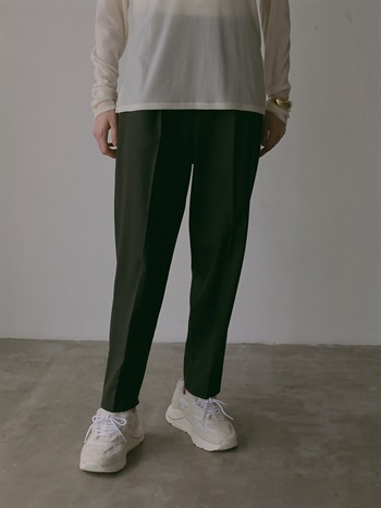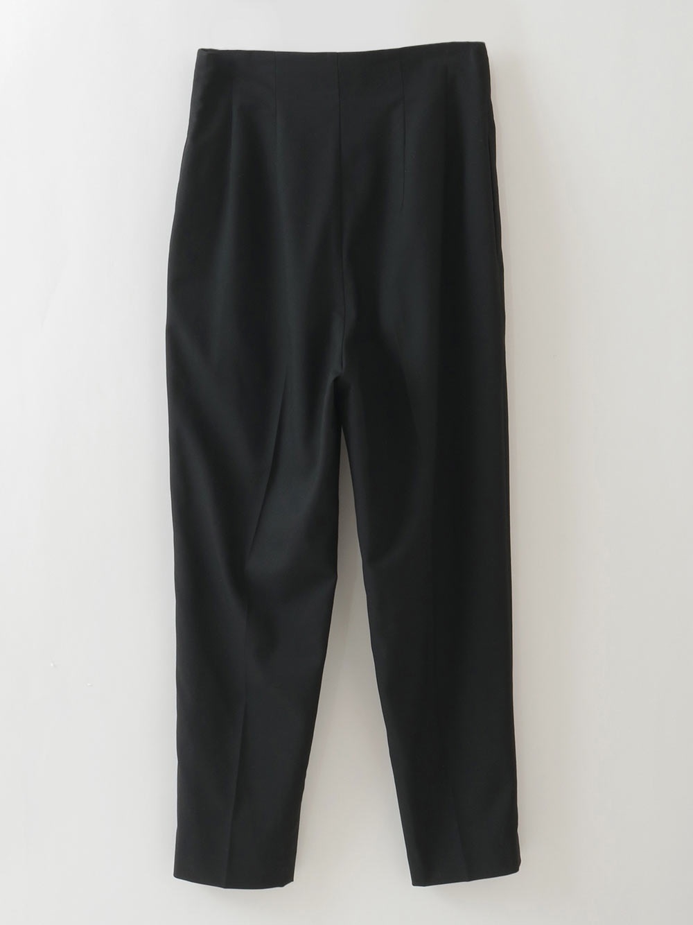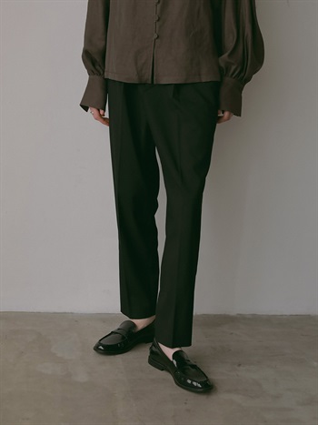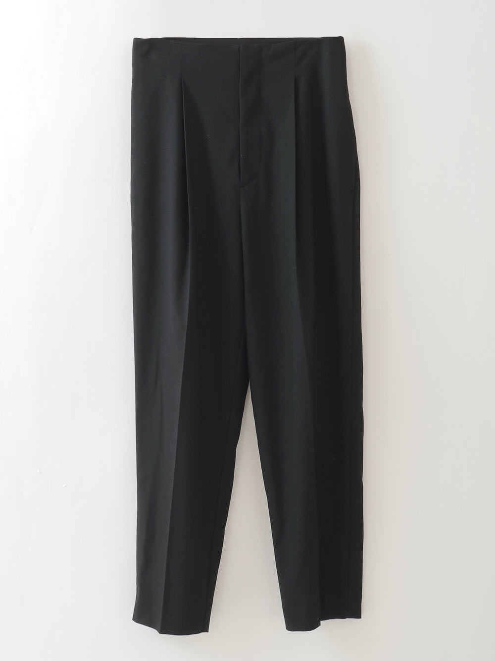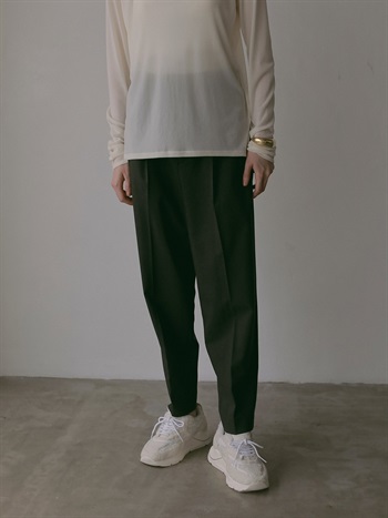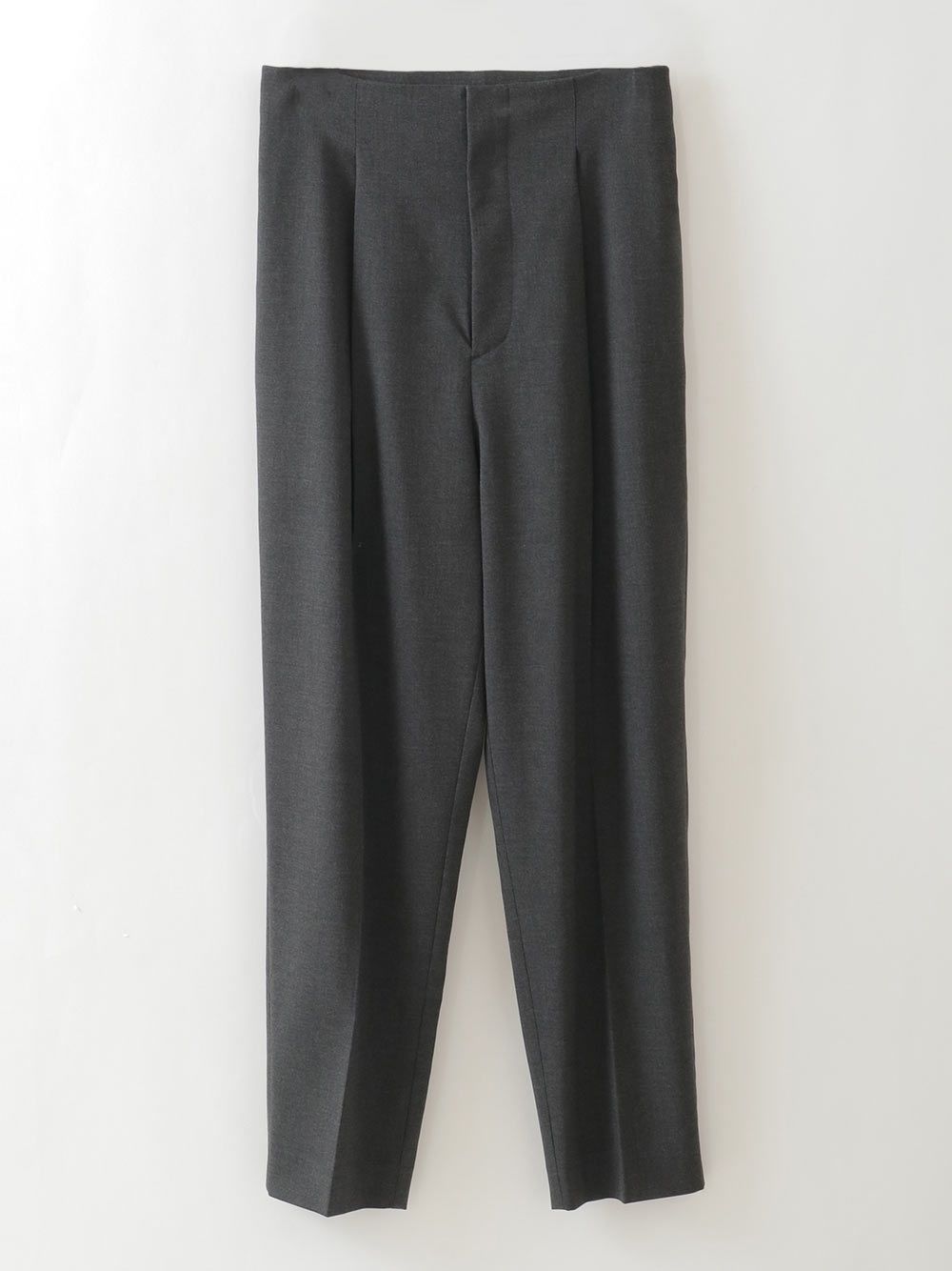 裾にかけてストンと落ちるようなテーパードシルエットのパンツ。ややハイウエストですっきりと仕上げています。ボリュームのあるトップスに合わせていただくとバランスが良くスタイリングをまとめてくれるアイテム。しなやかでやわらかな素材を使用しておりシーズンレスでお使いいただける1枚です。