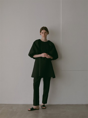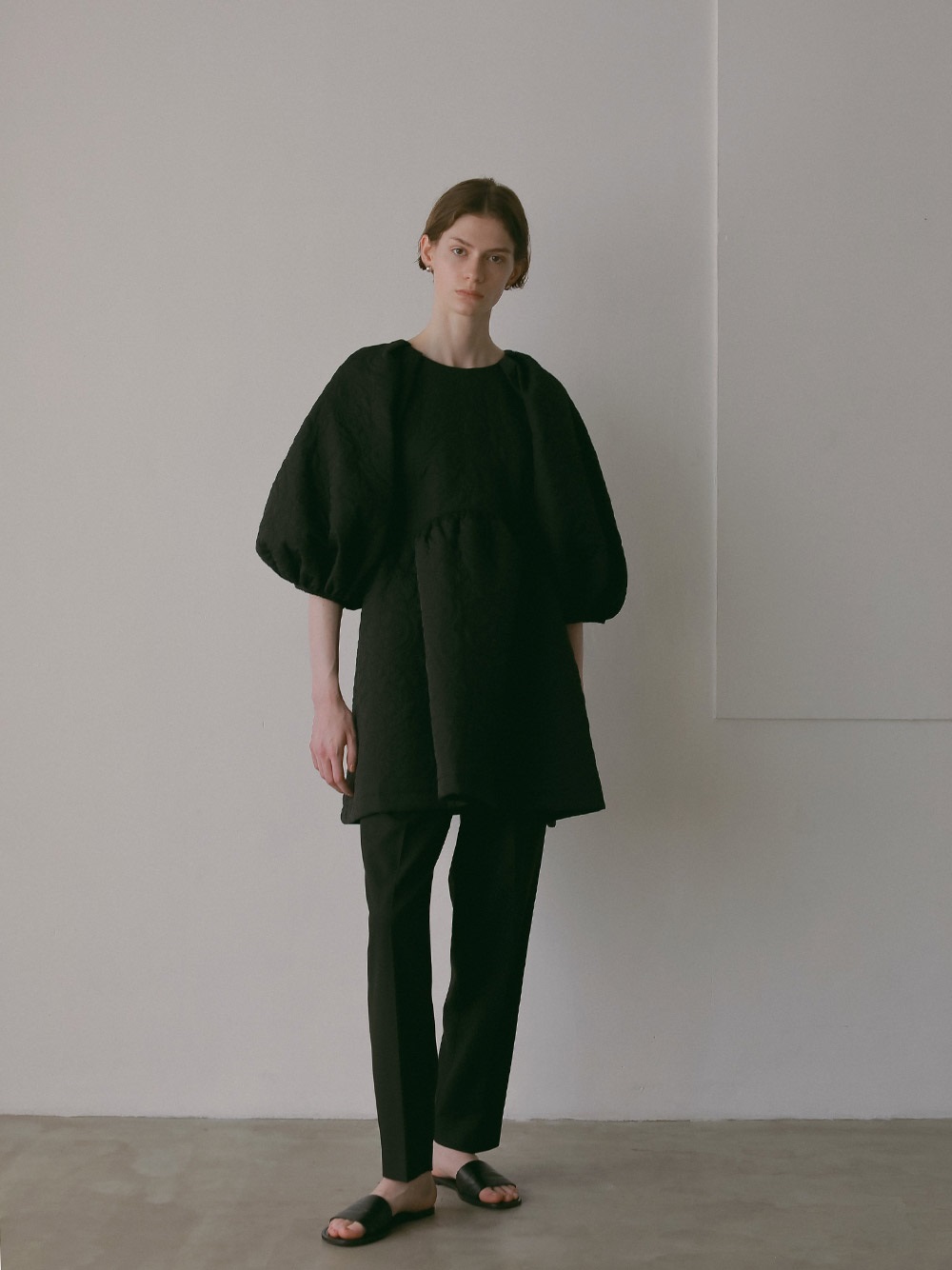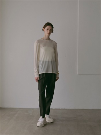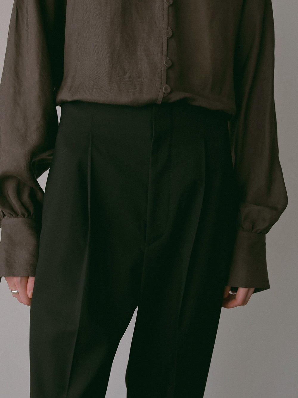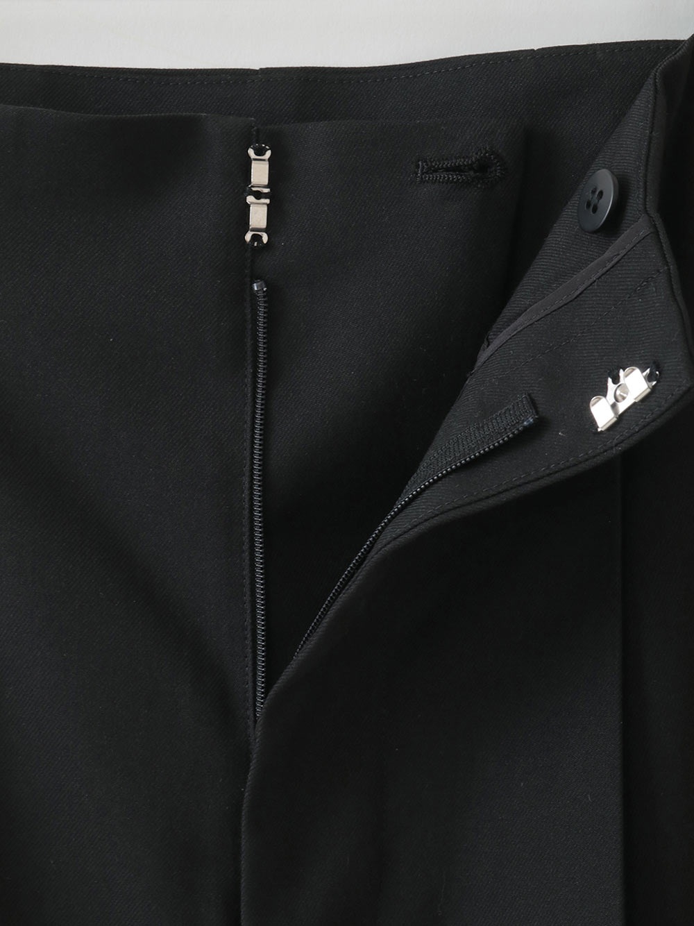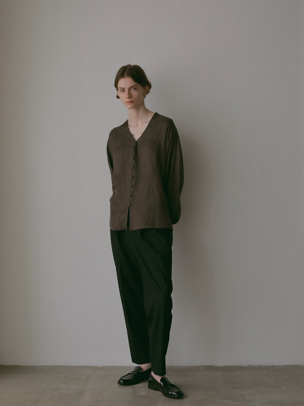 裾にかけてストンと落ちるようなテーパードシルエットのパンツ。ややハイウエストですっきりと仕上げています。ボリュームのあるトップスに合わせていただくとバランスが良くスタイリングをまとめてくれるアイテム。しなやかでやわらかな素材を使用しておりシーズンレスでお使いいただける1枚です。