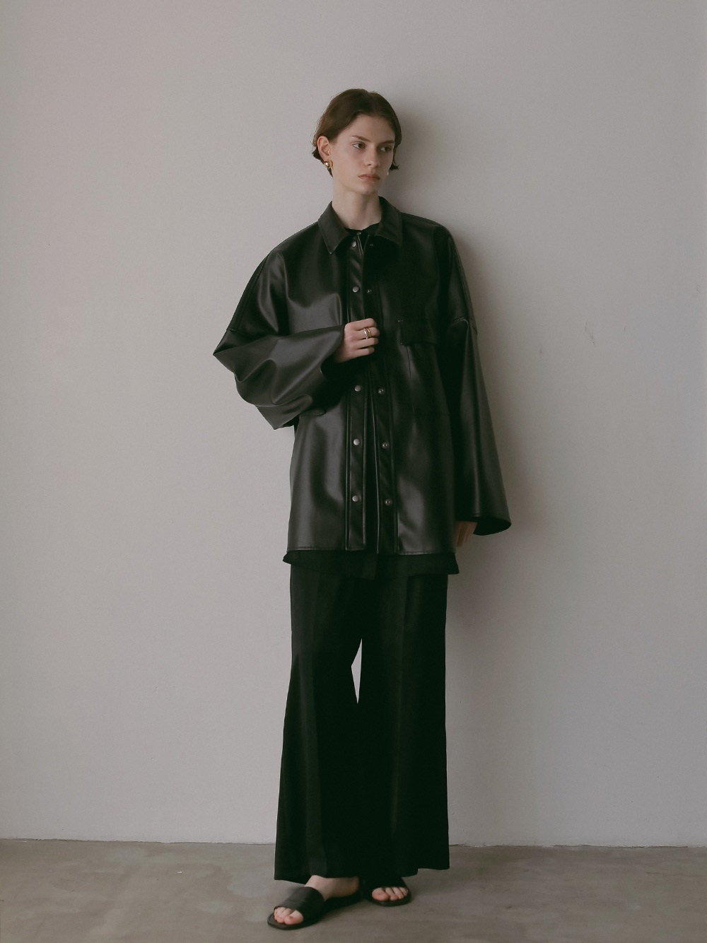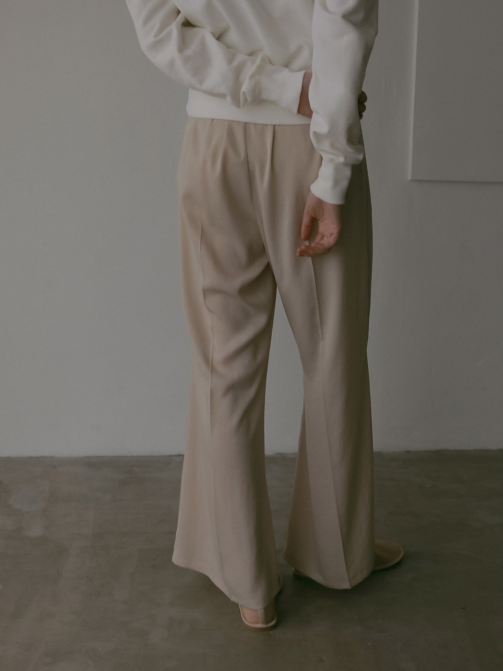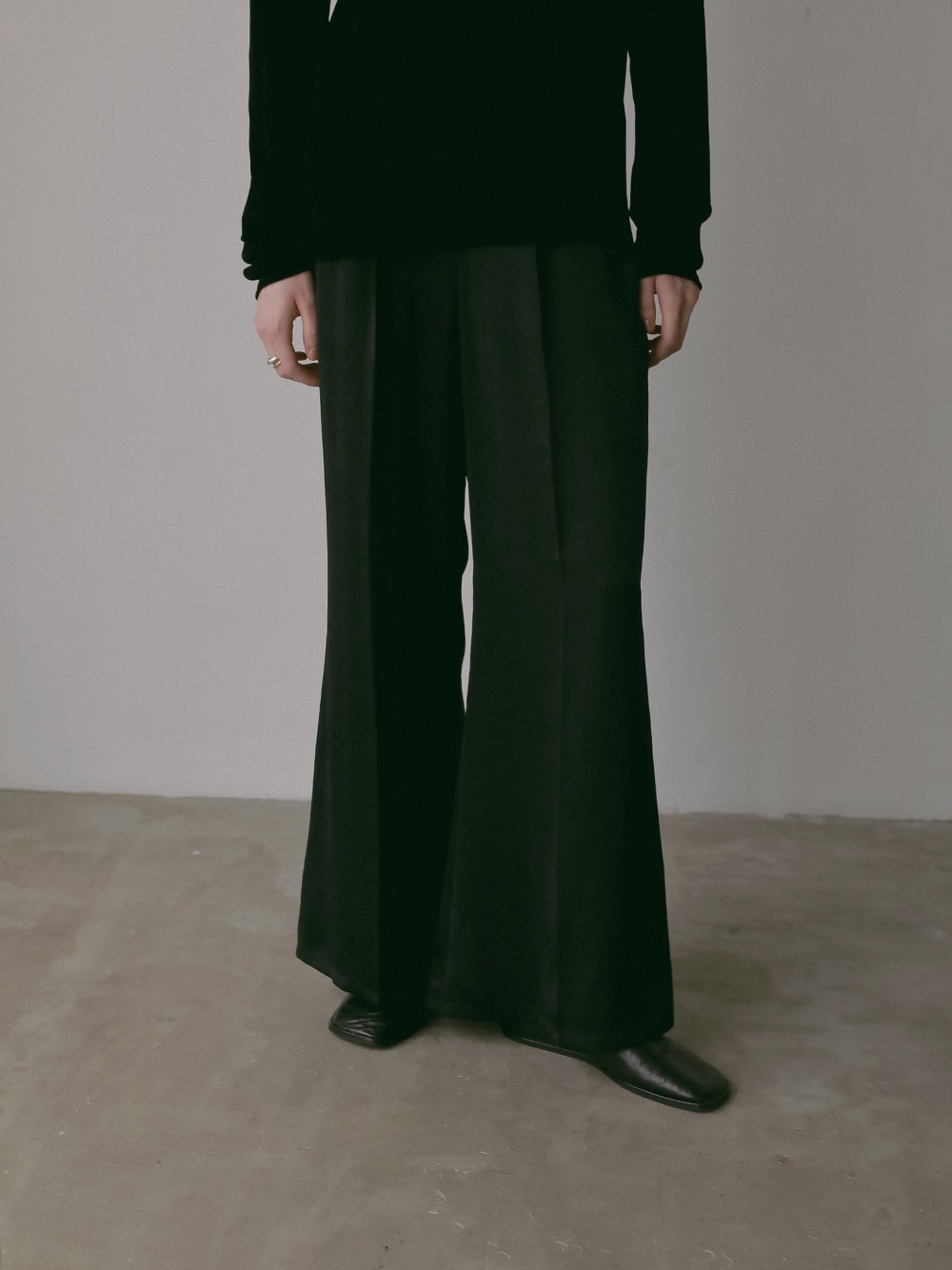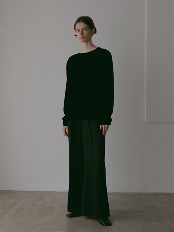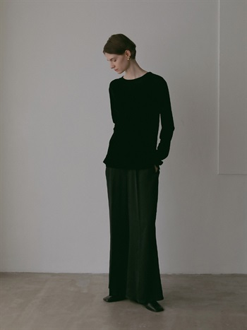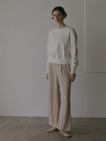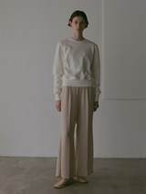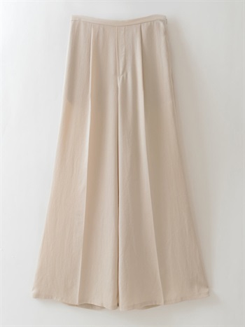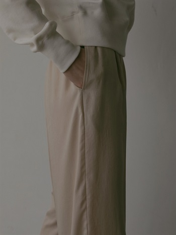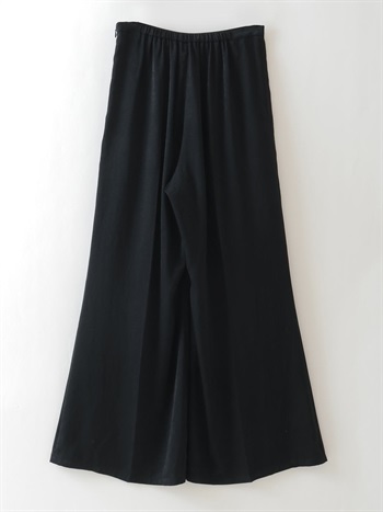 微起毛タッチに仕上げたサテンを使用したパンツ。フレアシルエットが特徴的なアイテムでスタイルアップもかなえてくれます。しなやかでドレープ性があり、ベルベットの様な光沢感のある素材で着心地にもこだわった1着です。同素材のシャツブラウス(商品ID:7053712)とのスタイリングのほか、ニット素材とも好相性で秋冬に重宝する1着です。
