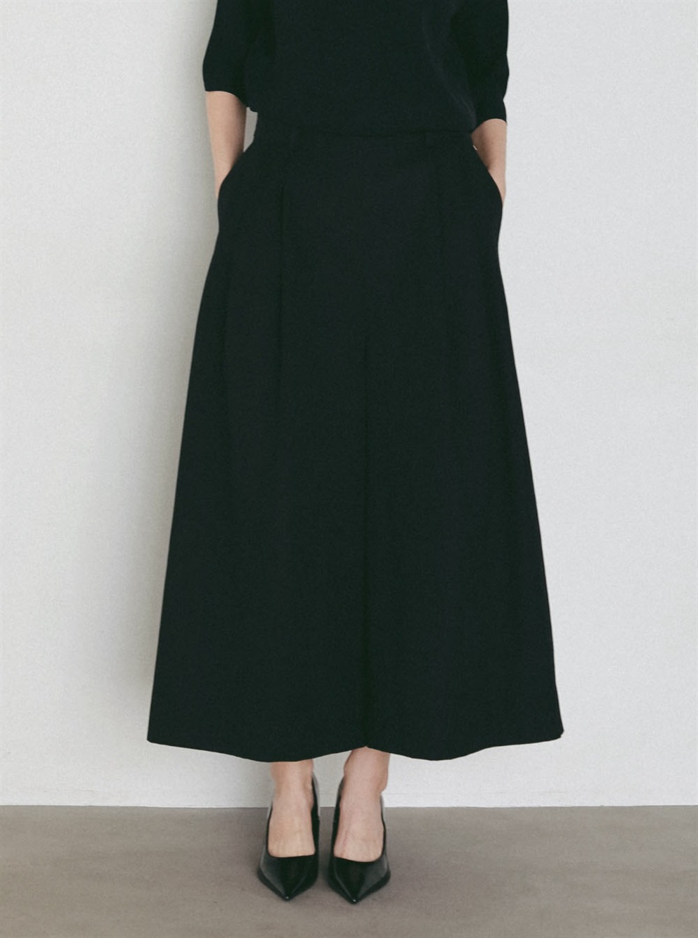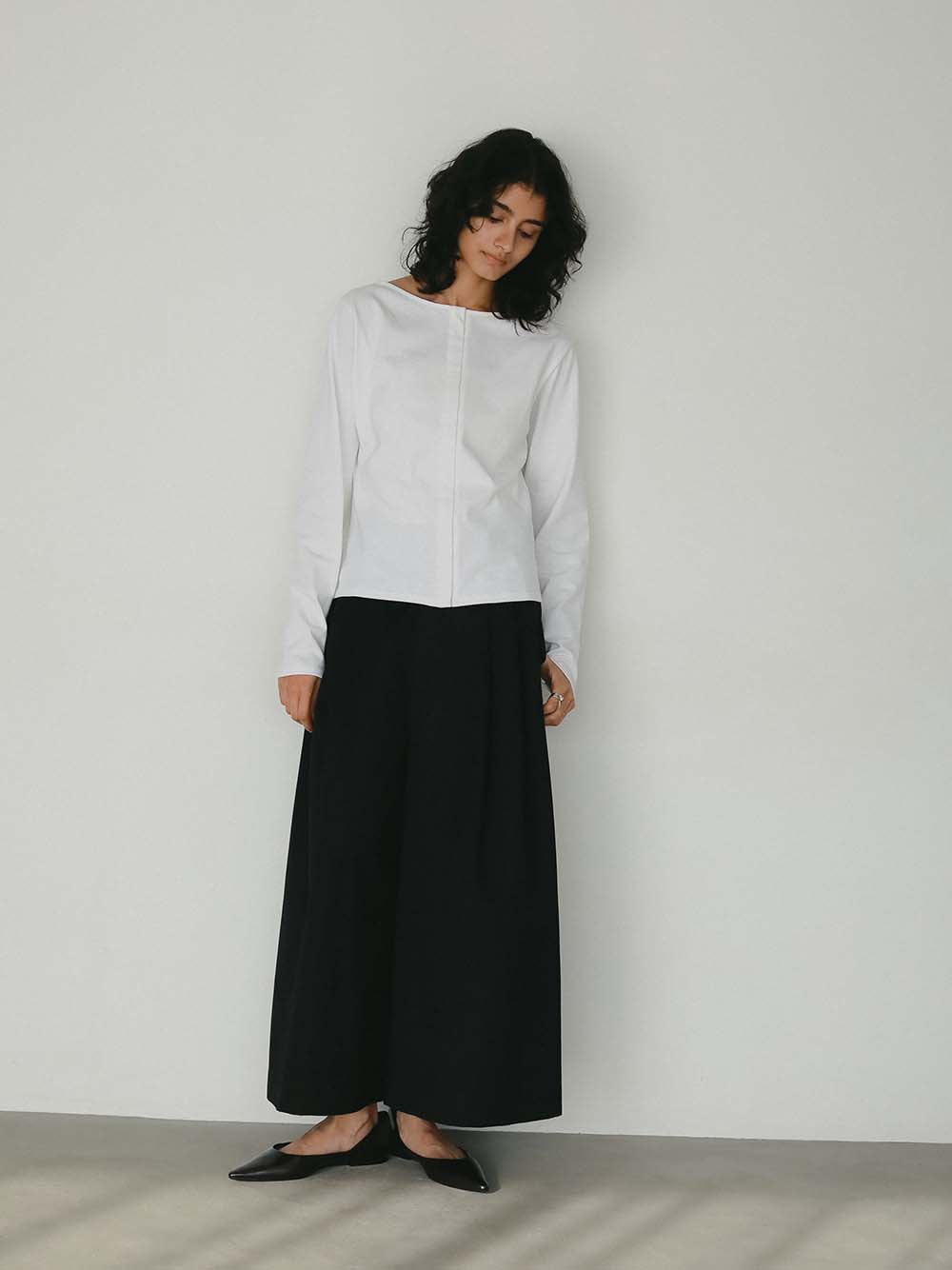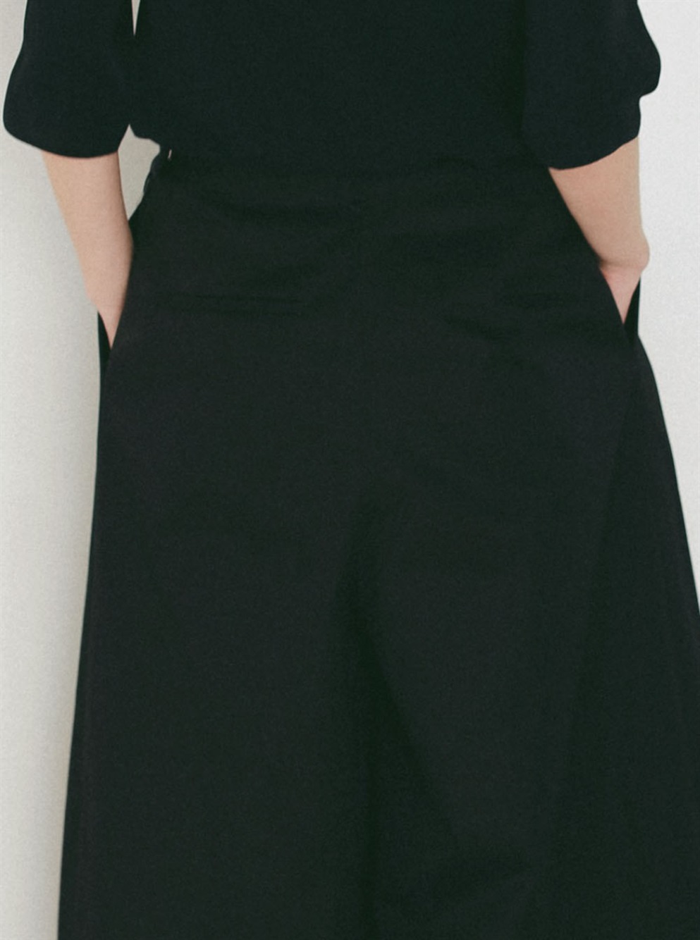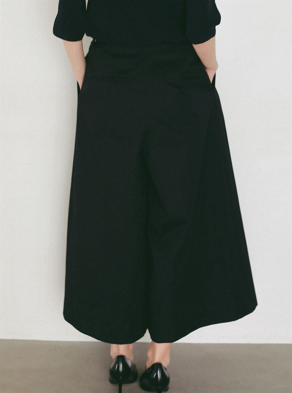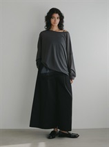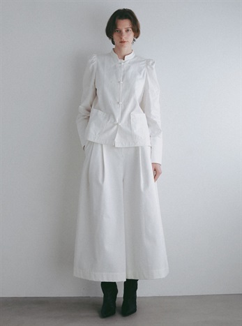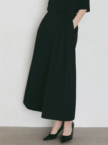 腰回りが大きく見えないサイジングと裾に向かってワイドに広がる裾幅はスカートの様な雰囲気でもご着用いただけます。