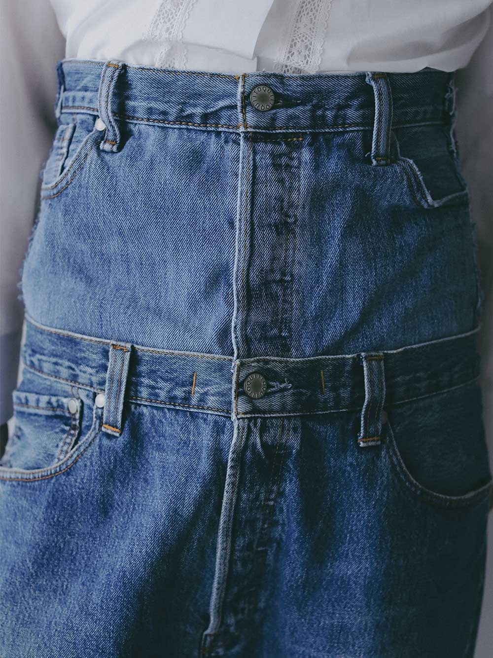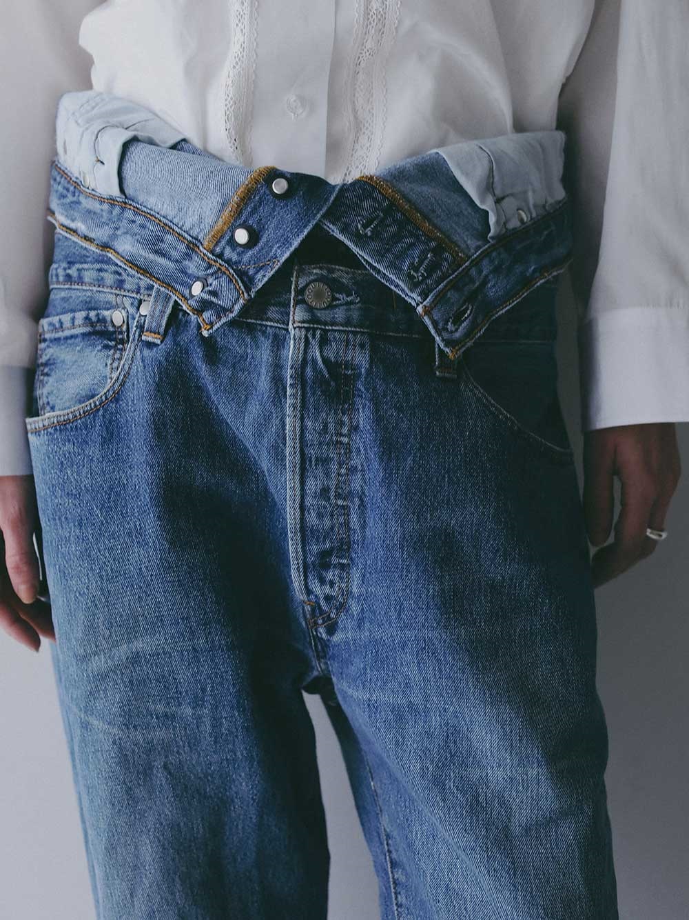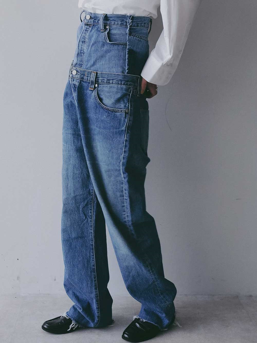 ダブルウエスト仕様なので、ハイウエストやローライズにしてみたりと、気分によって着用パターンの変化を楽しめます。