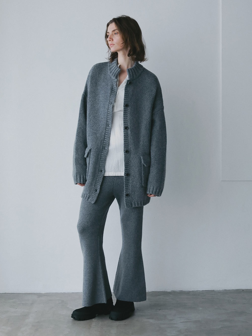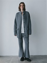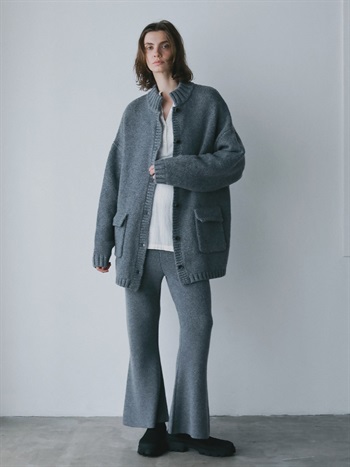 WOOL混率65%で温かみとナチュラルな表情感のある糸を使用したカーディガン。膨らみと肉感を出し程よくフォルムが出るよう編みたてました。ひざ下から裾にかけて自然と広がるフレアシルエットでスタイルアップも叶えながら洗練された印象に。同素材のニットジャケットとのスタイリングもおすすめです。