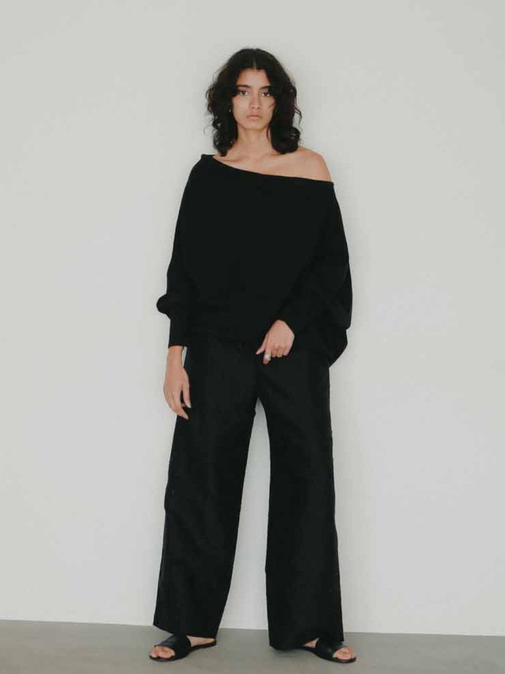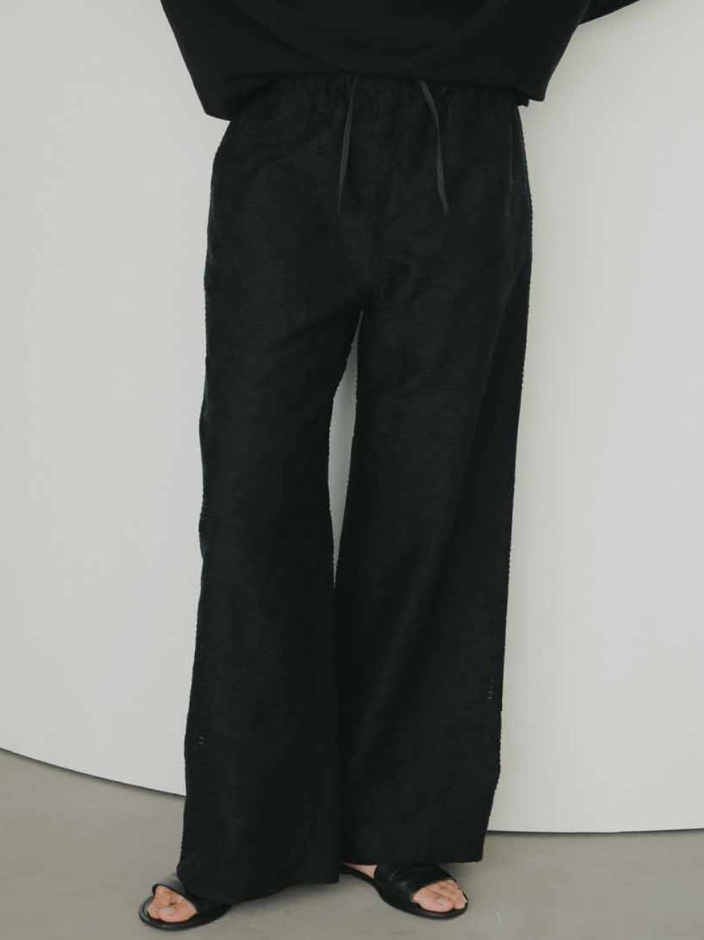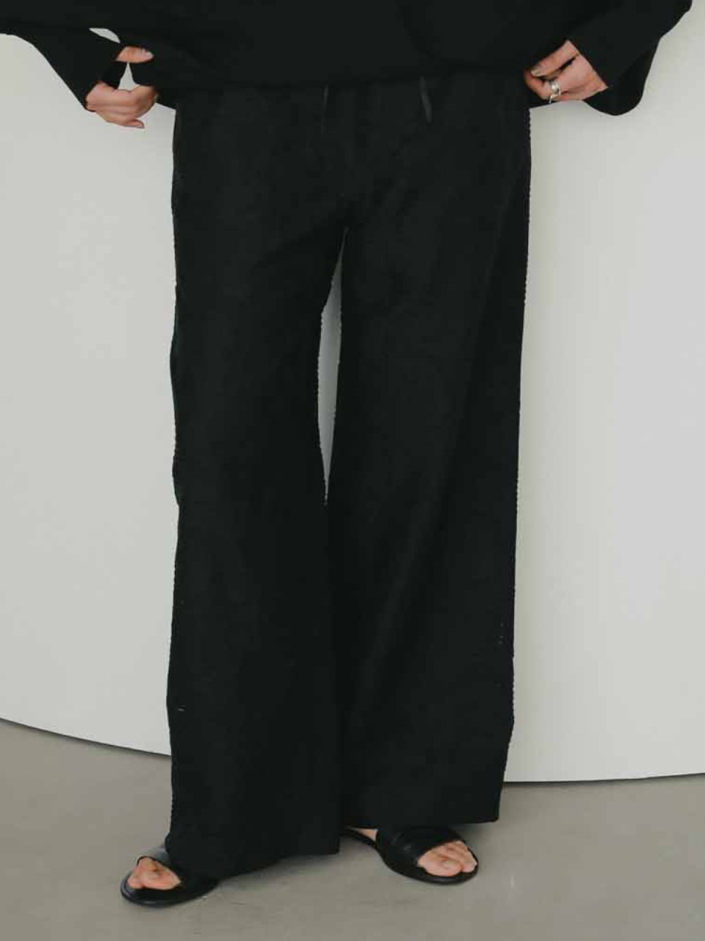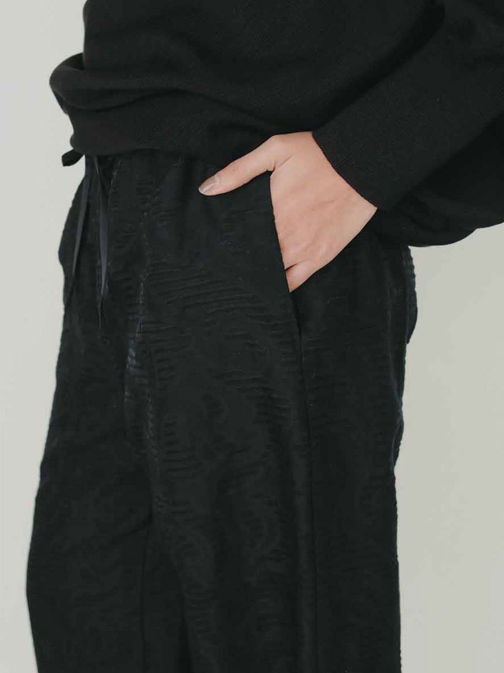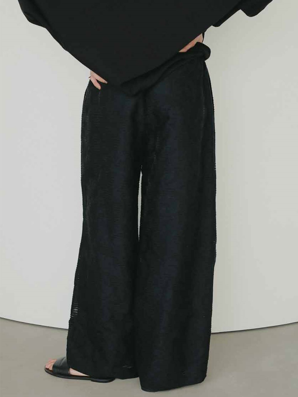 透け感のある薄手のジャカードを使用したワイドパンツを作りました。