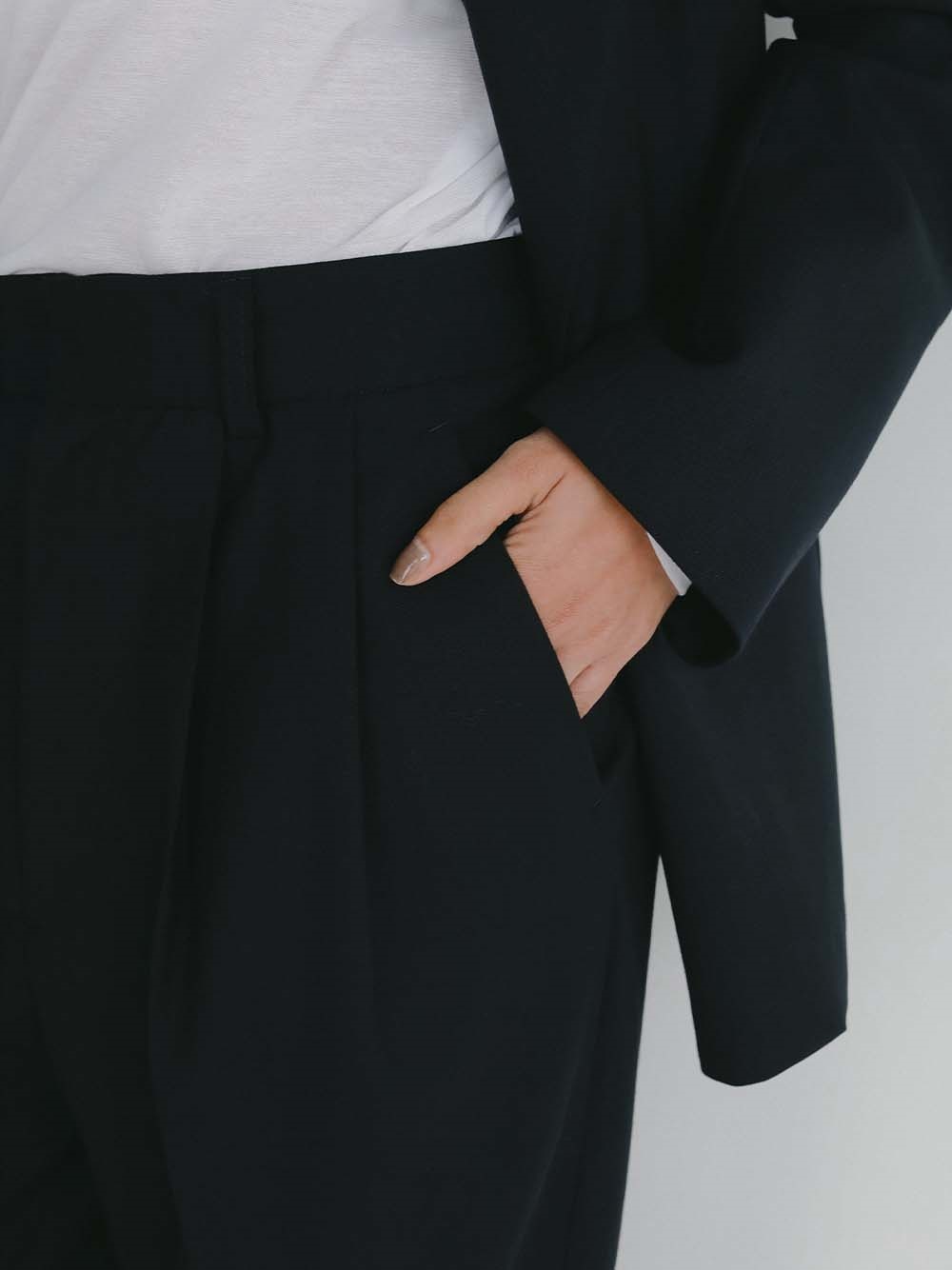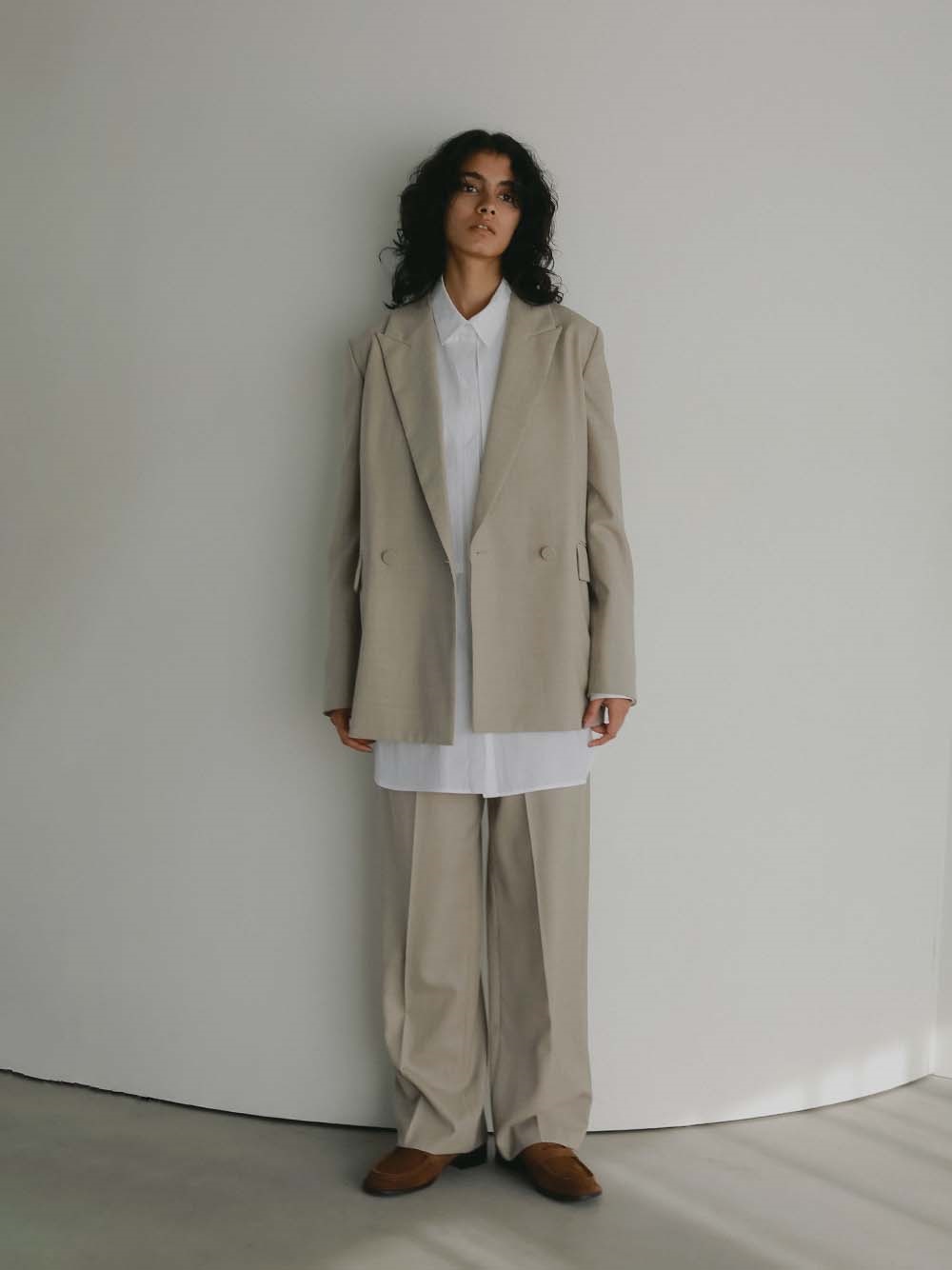 オケージョンでも着用しやすい深みのあるネイビーとカジュアルダウンできる万能なベージュの2色展開。