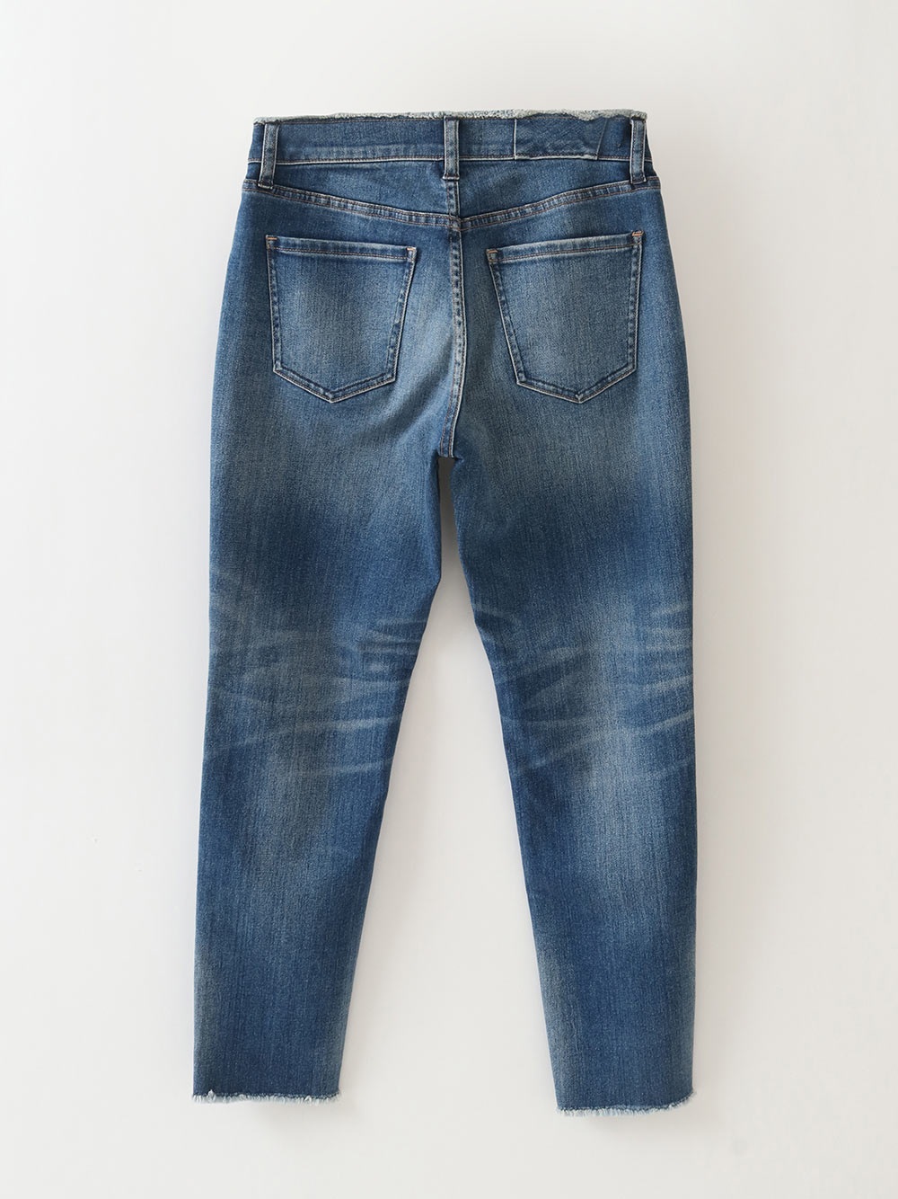 ウェストのフィット感をより高めて安心感ある穿き込みです。以前よりも腰回りのフィットを良くしたことでレングスを1cm伸ばして全体のバランスが変わらず美脚に見えるように保ってます。ぴたぴたになりすぎず、少しのゆるみが逆に脚をすっきりと見せてくれるボーイフレンドフィットです。