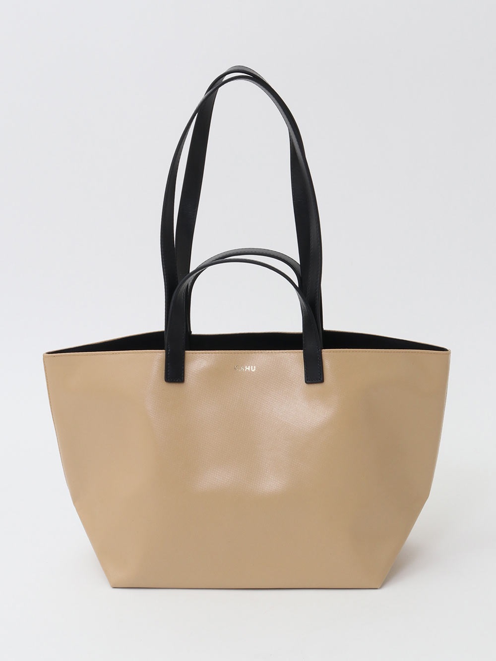 手持ちにも肩掛けにもできるレザーの持ち手とストラップ。