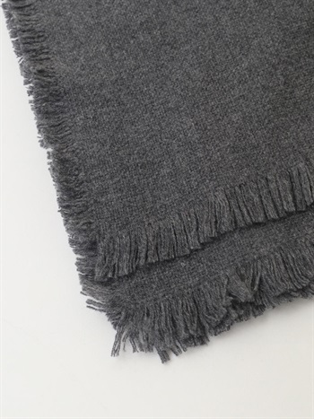 四方にふっくらとしたフリンジを作ったストールです。落ち感が少ないので、首元で空気をはらみ、どんな巻き方でも素敵に見えるストールです。