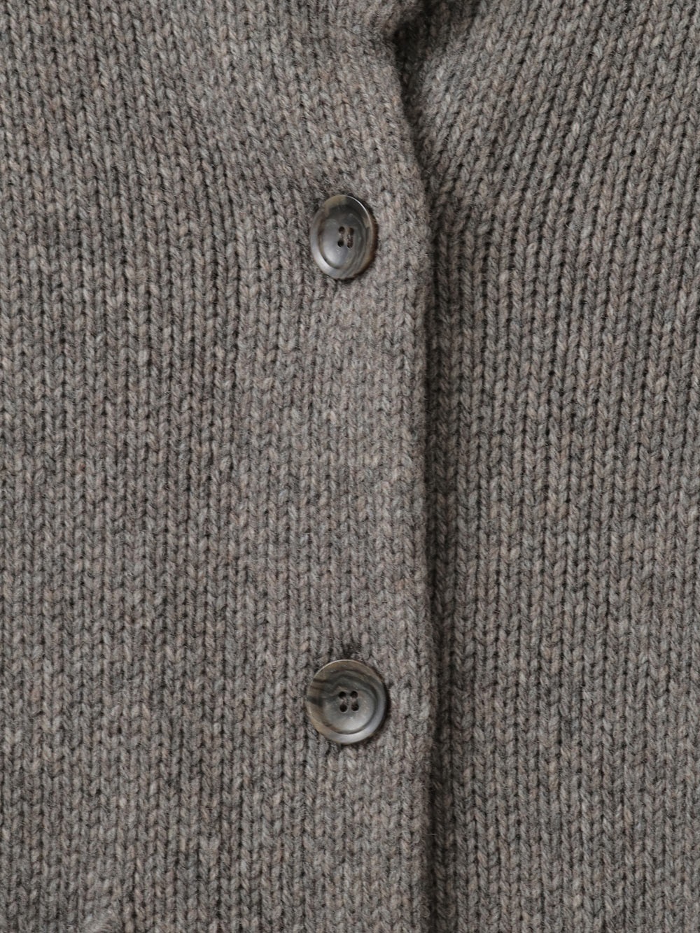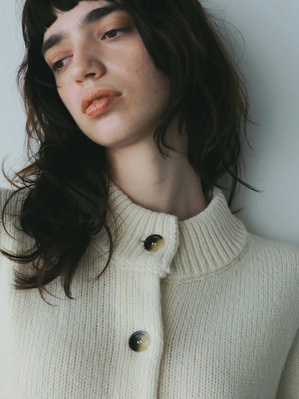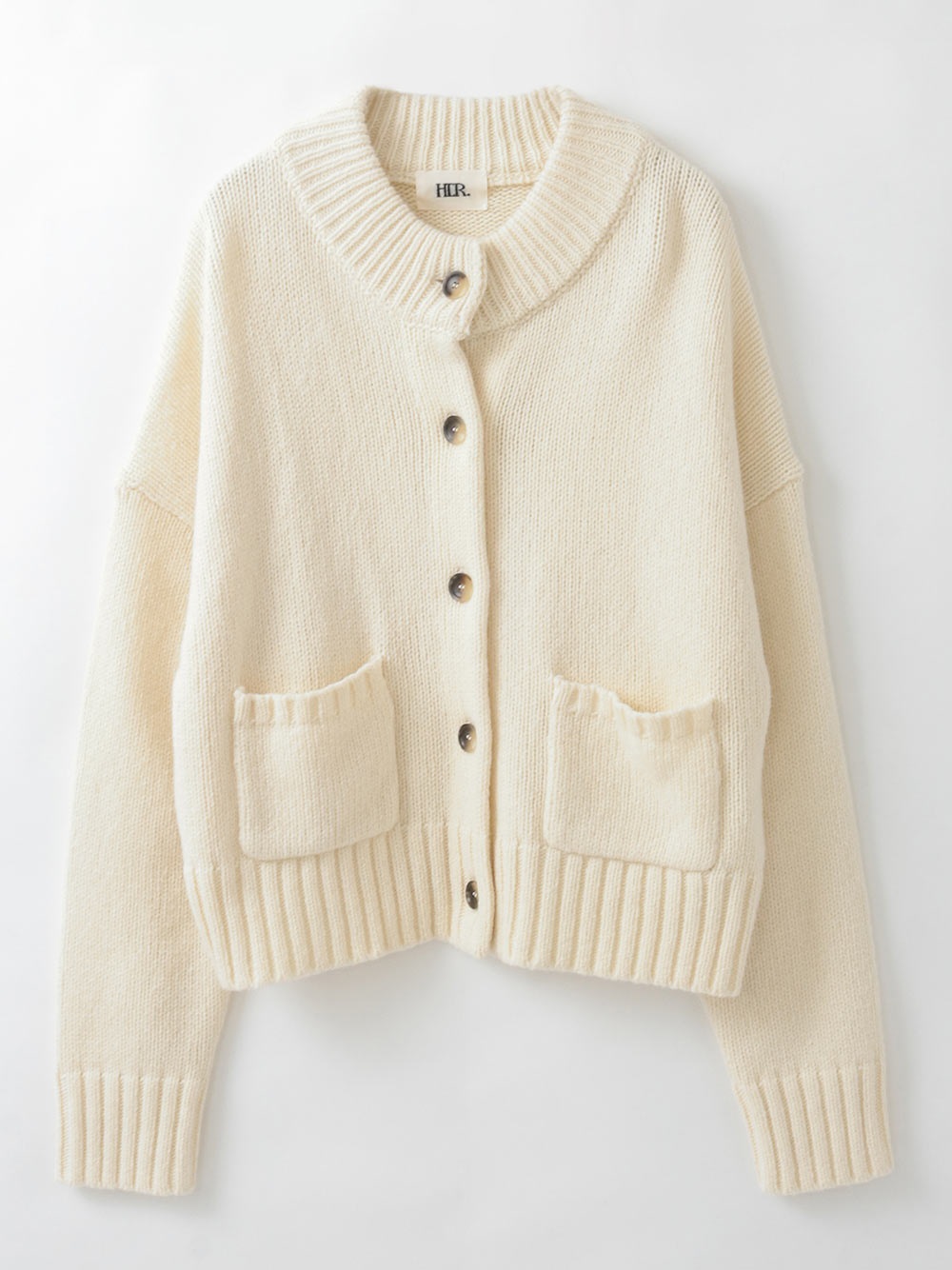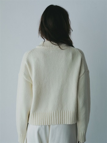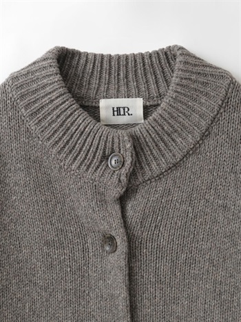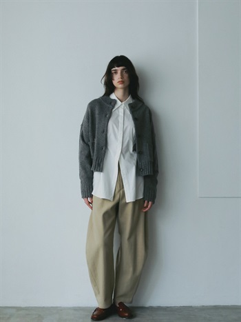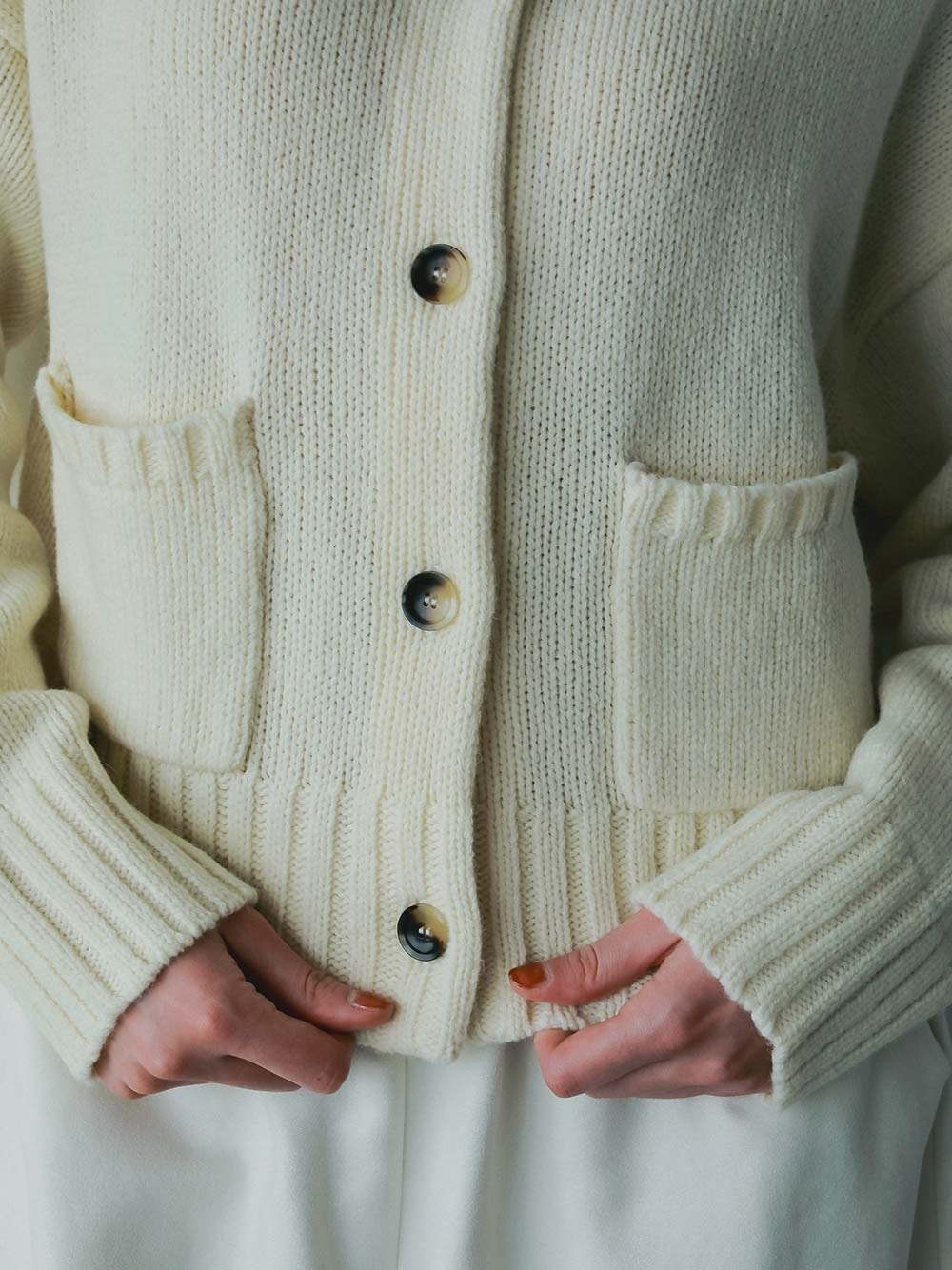 WOOL混率80%で温かみとナチュラルな表情感のある糸を使用したカーディガン。膨らみと肉感を出し程よくフォルムが出るよう編みたてました。すっきりとした丈感で見た目にも軽やかに羽織っていただけます。リブのスタンドカラーとポケットデザインのアクセントでカーデとブルゾンをミックスしたような仕上がりでアウター感覚でお召いただけるアイテムです。