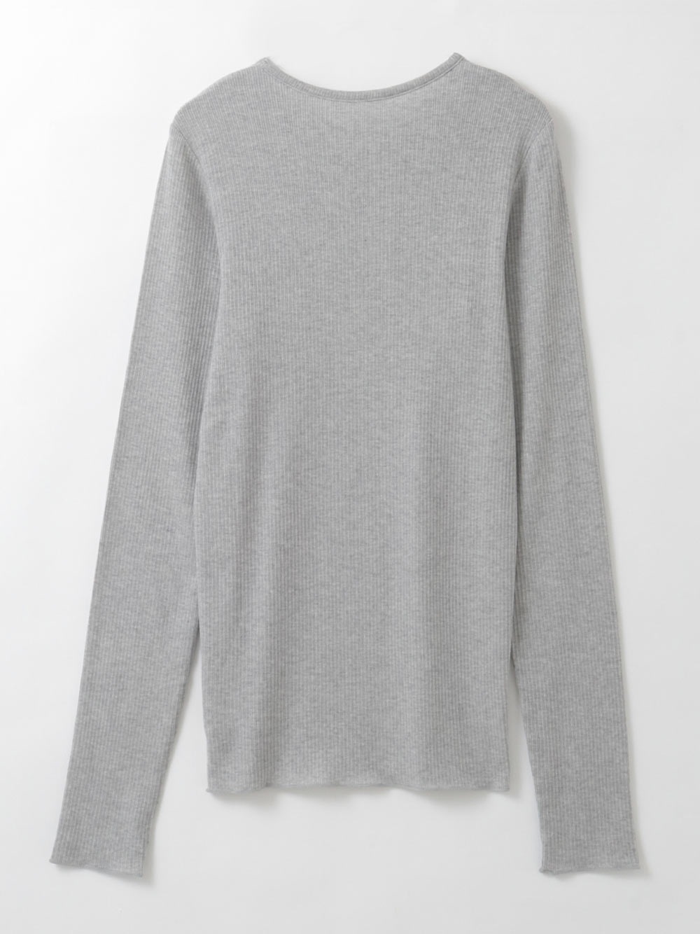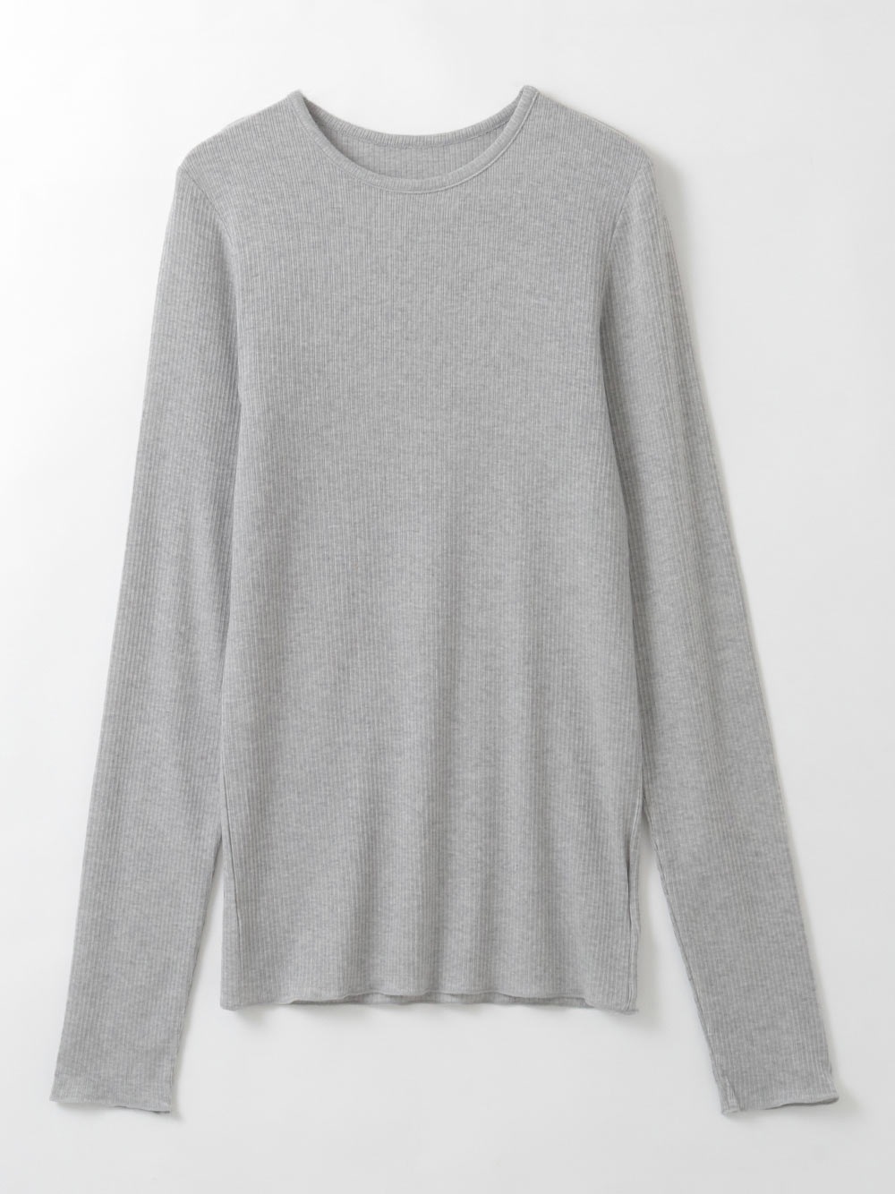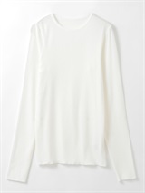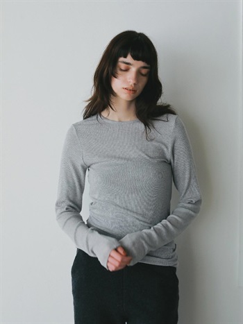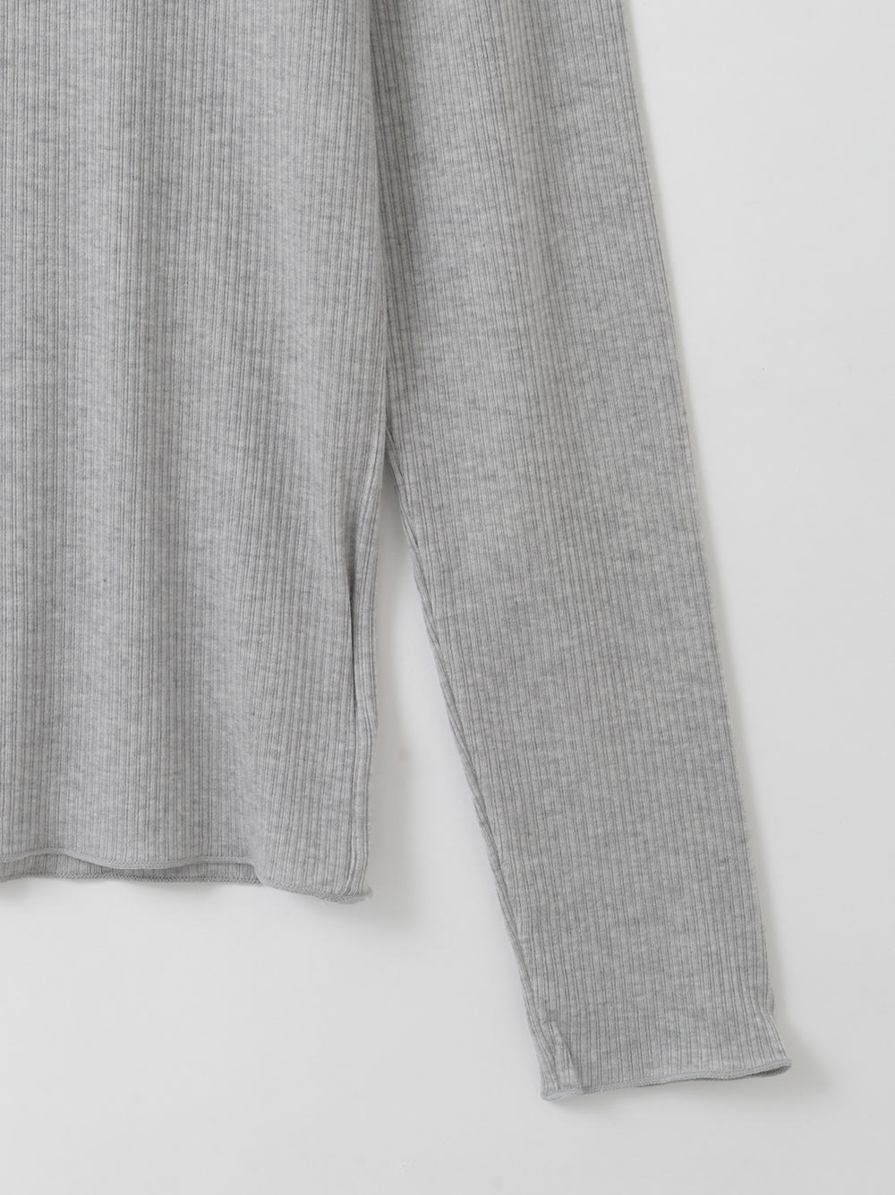 カシミヤとシルクと再生繊維をブレンドした極上の肌触りが特徴的なテレコのプルオーバー。肌に吸い付くような着心地と、素材の適度なシアー感により、冬のインナーとして汎用性のあるアイテムに仕上げました。袖や裾を繊細なメロウ始末で仕立てた上質な1枚。