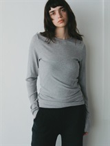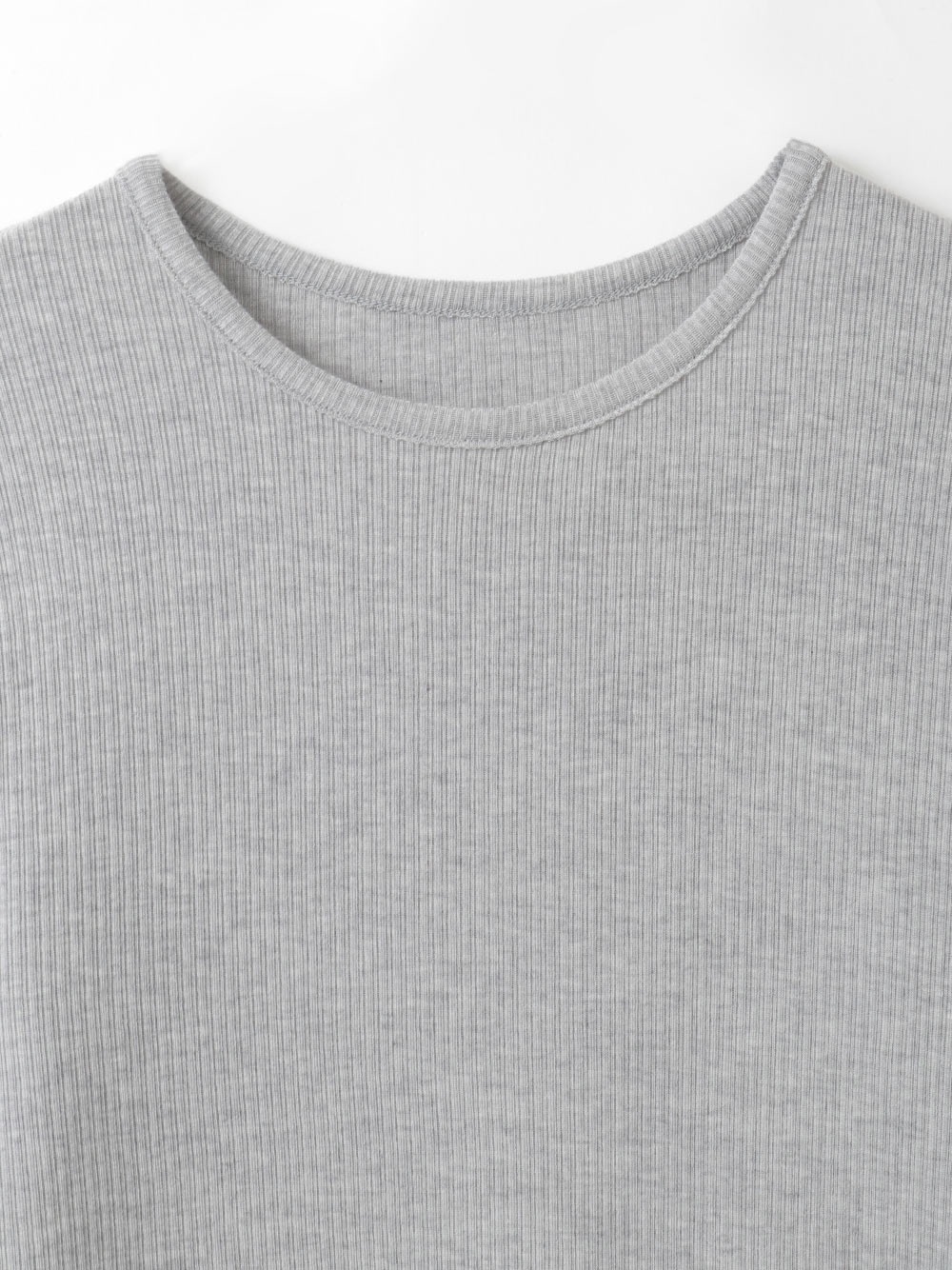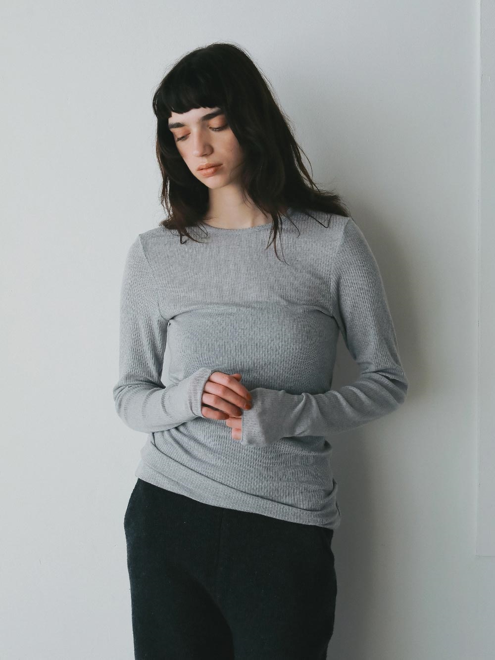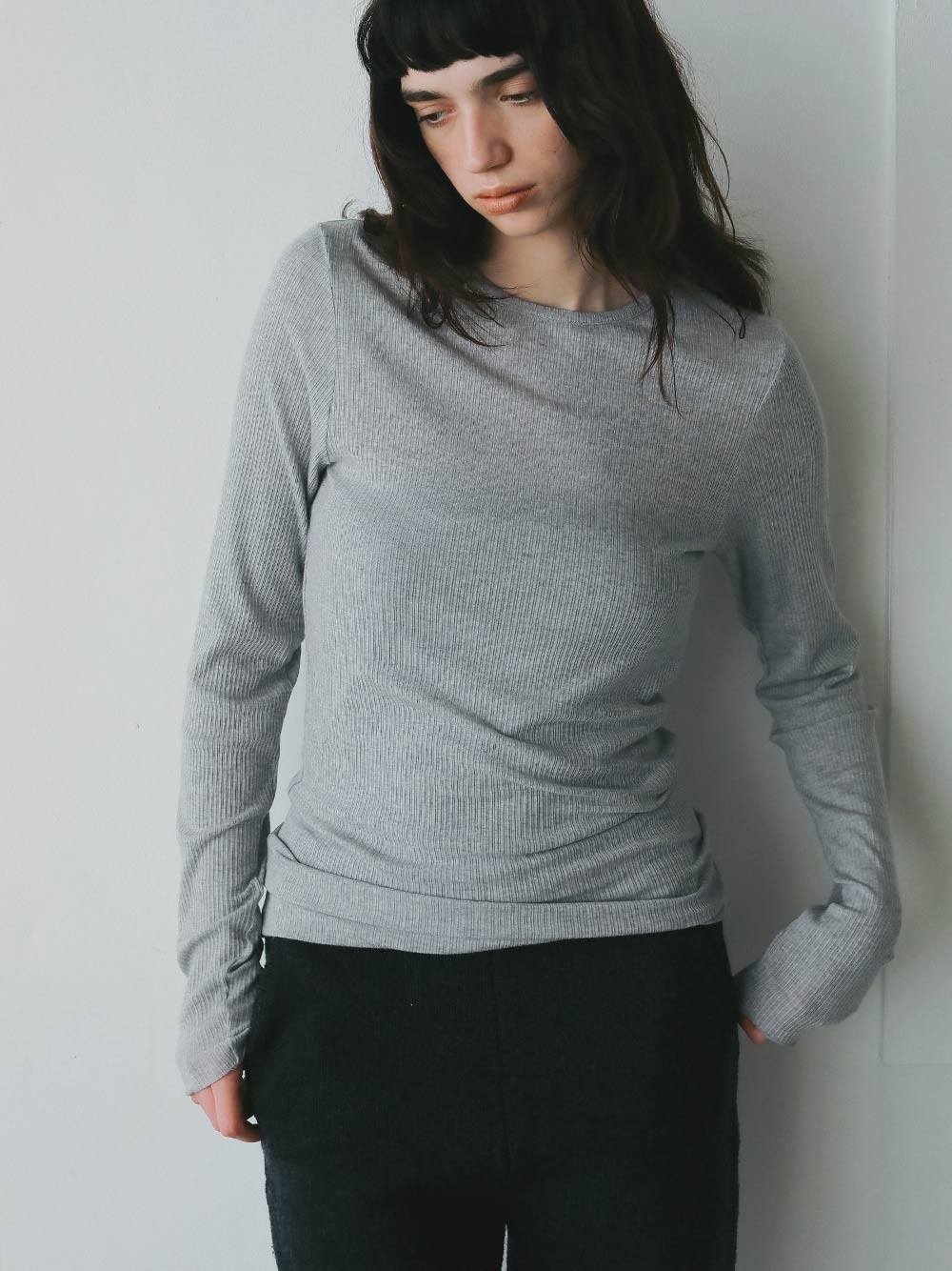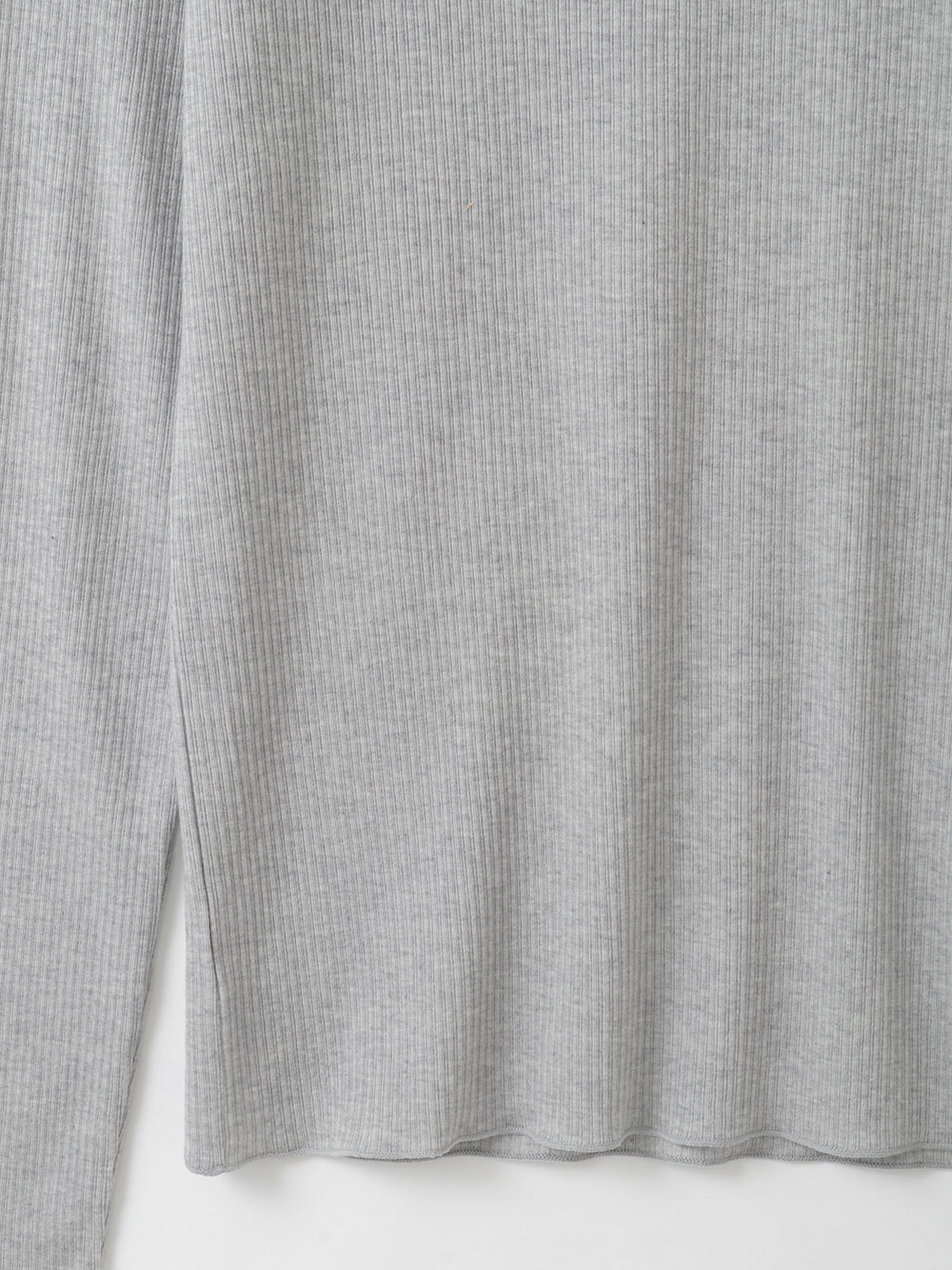 カシミヤとシルクと再生繊維をブレンドした極上の肌触りが特徴的なテレコのプルオーバー。肌に吸い付くような着心地と、素材の適度なシアー感により、冬のインナーとして汎用性のあるアイテムに仕上げました。袖や裾を繊細なメロウ始末で仕立てた上質な1枚。