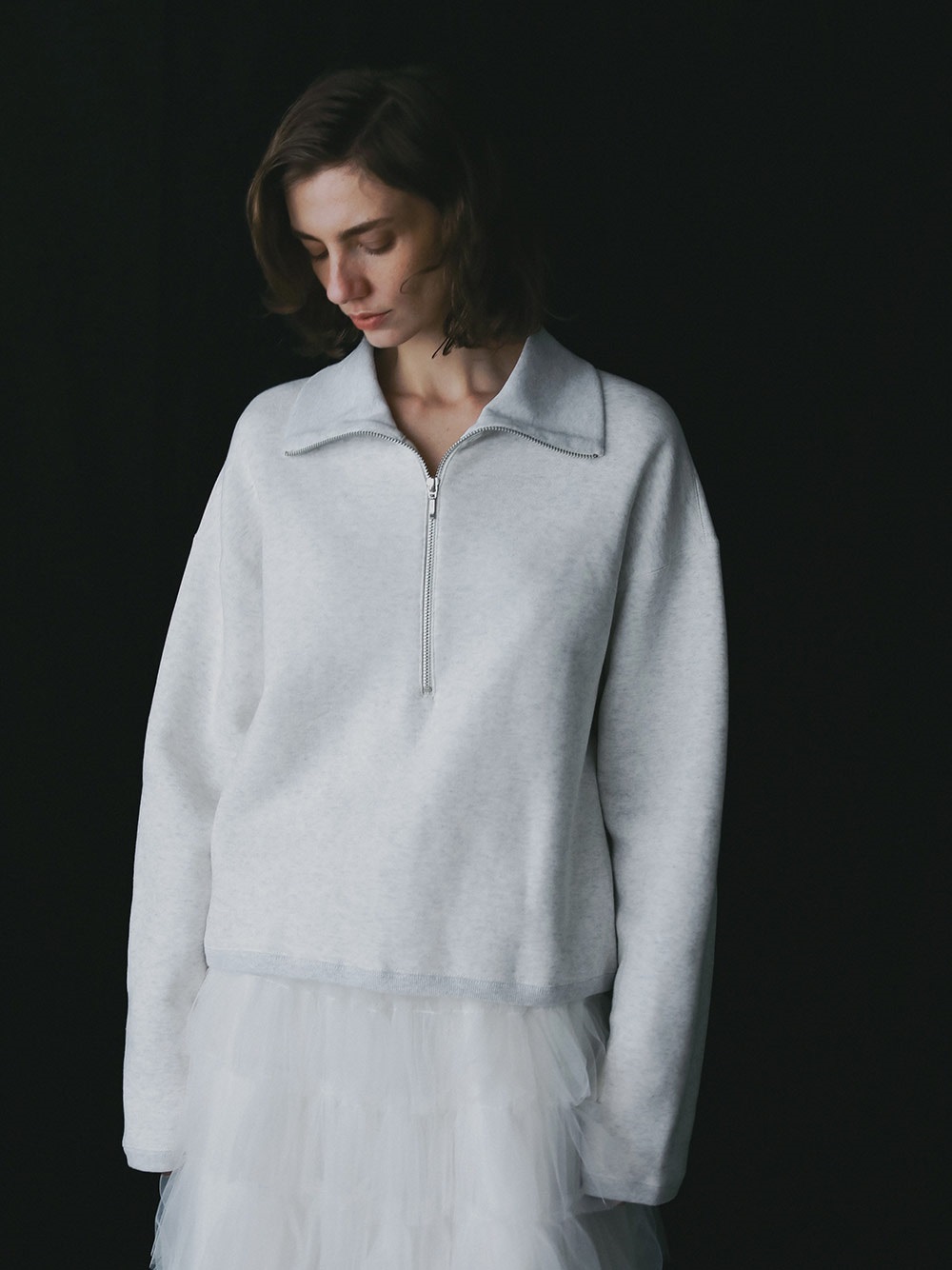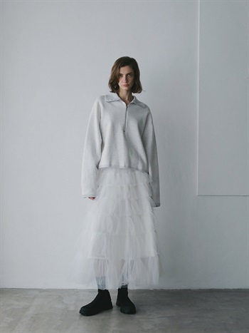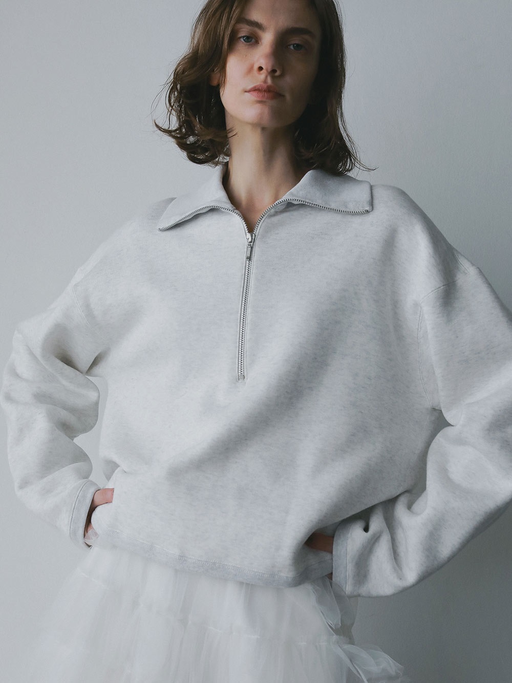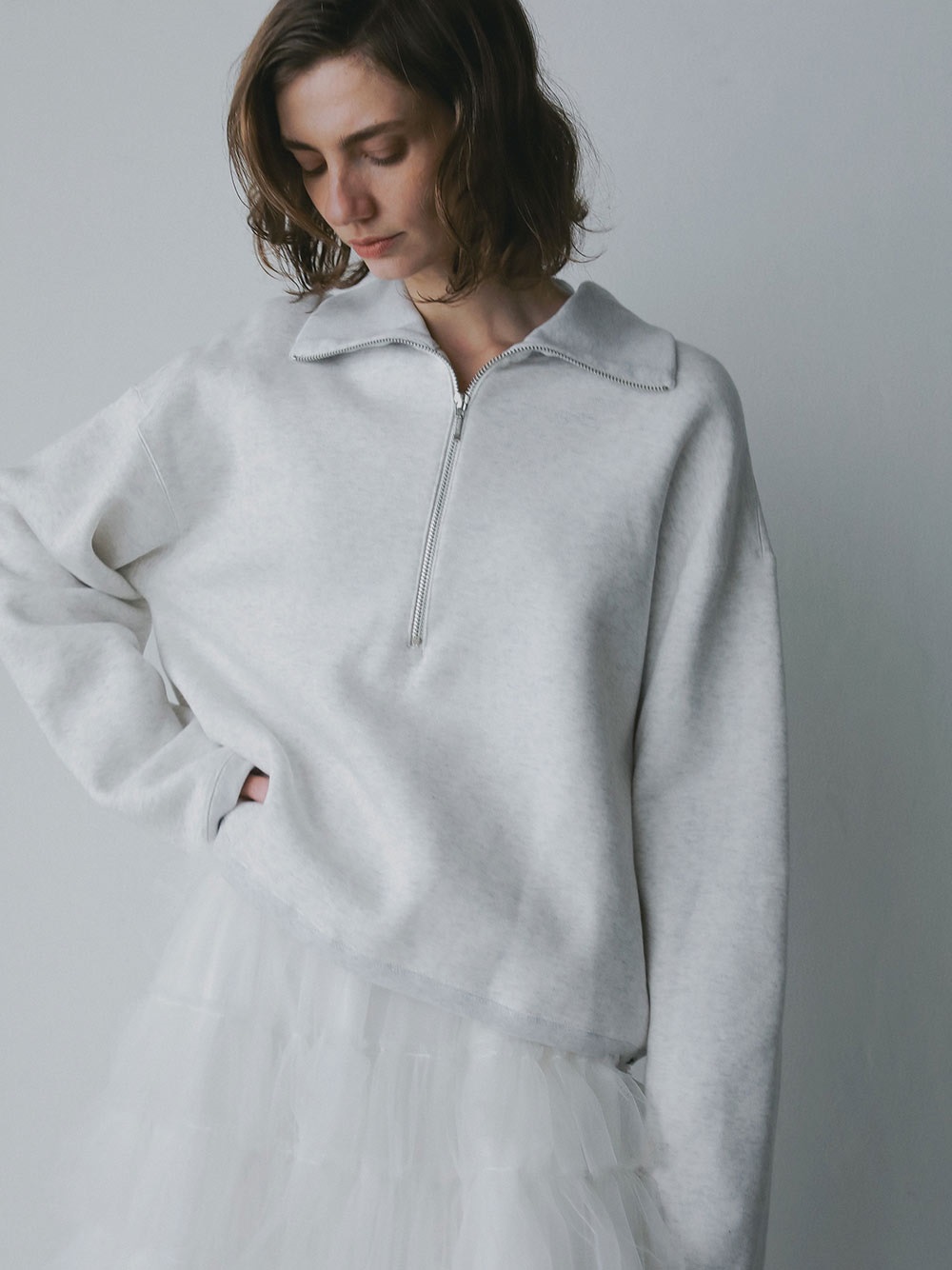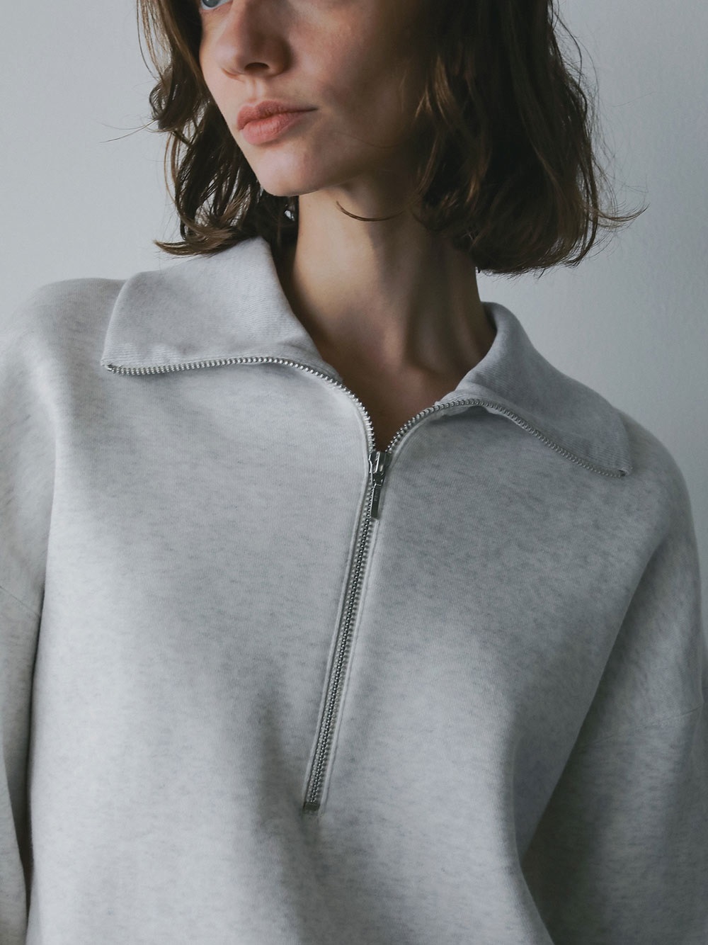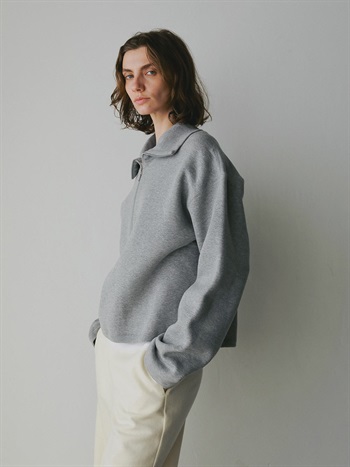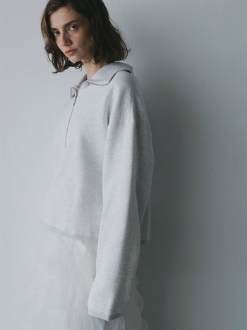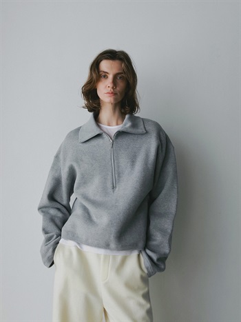 高密度な裏毛を使用したハーフジッププルオーバー。今シーズンらしいビッグカラーが特徴的な1枚。横広でクロップト丈のボディバランスは人を選ばず似合いやすい1枚。裏起毛の裏毛を使用しているので、真冬まで温かくお召し頂けます。