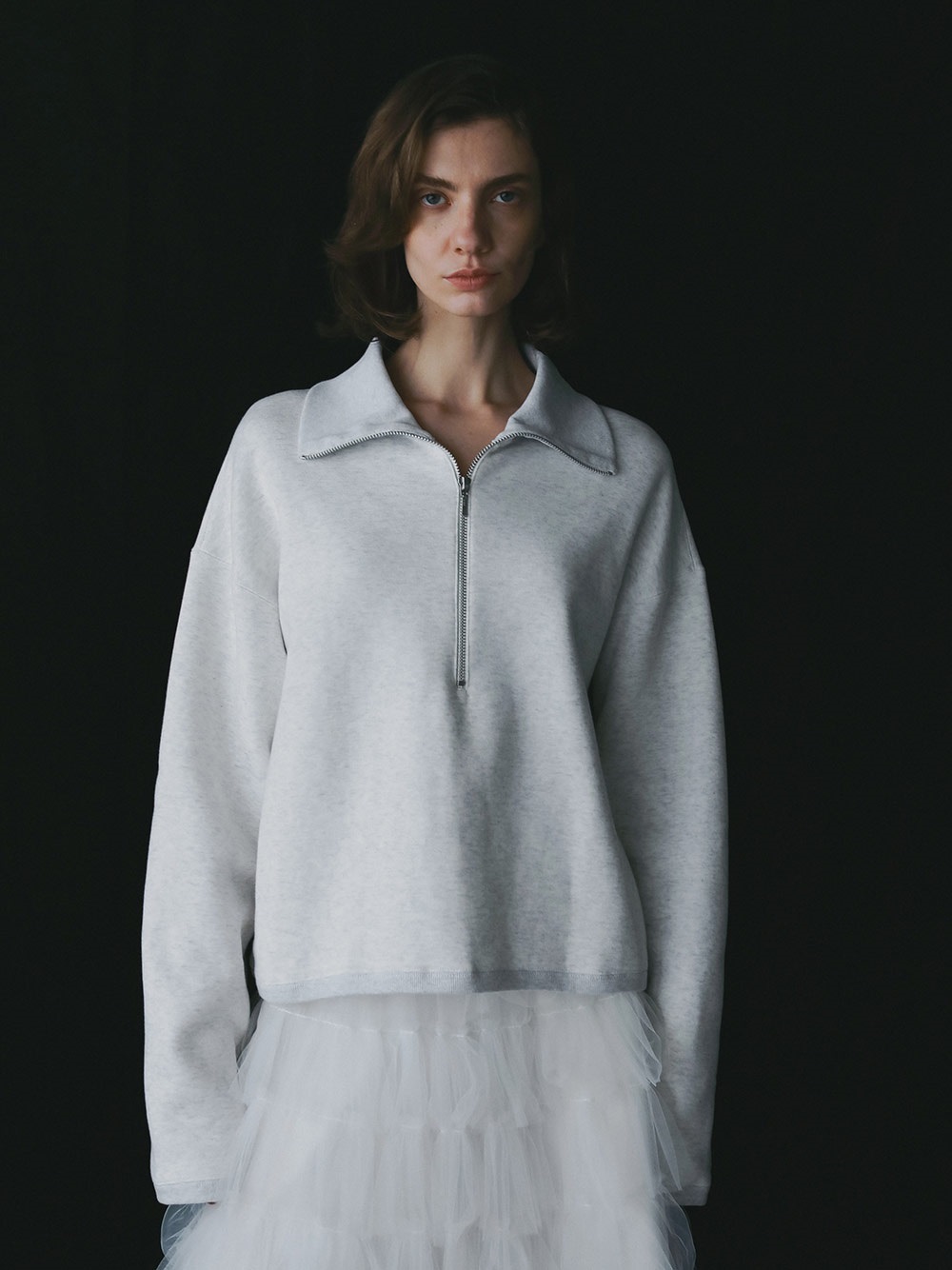 • ビッグカラーハーフジッププルオーバー(12ライトグレー-フリー)