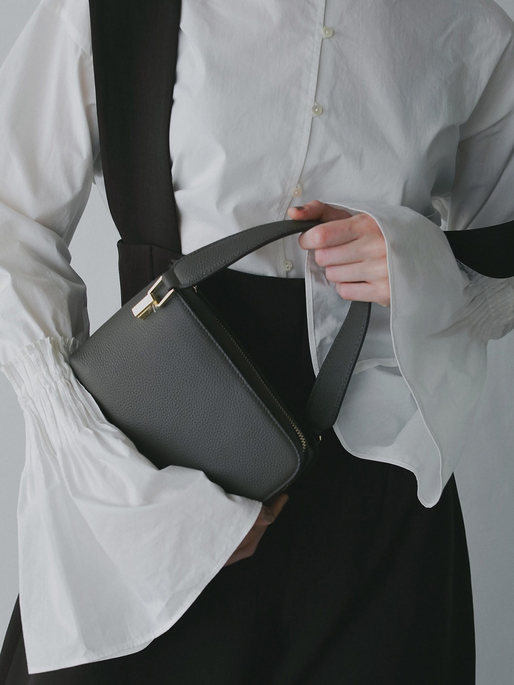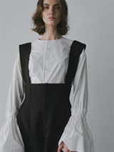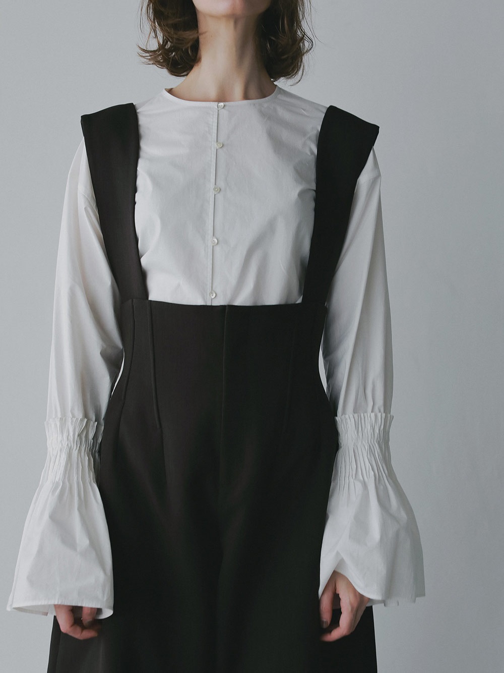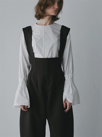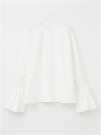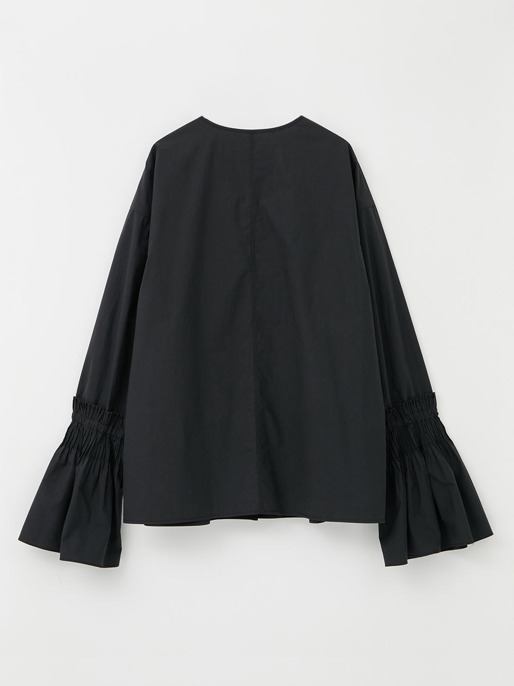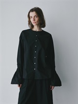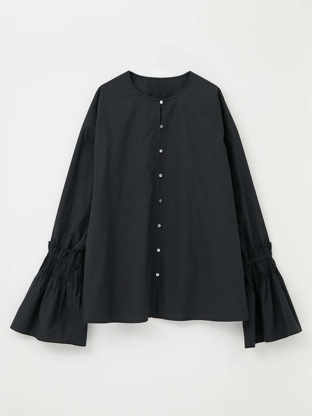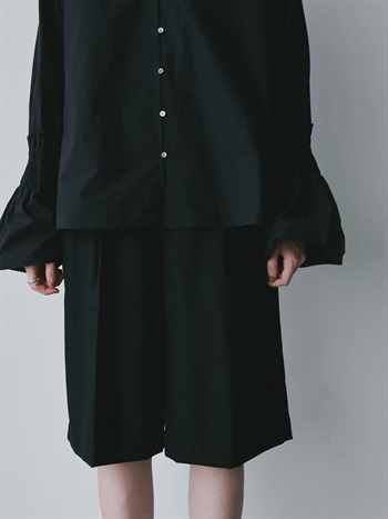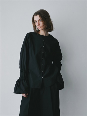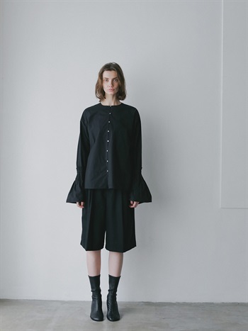 何本も細かたくたまれたピンタックがポイントのフレアカフスデザインブラウス。袖口のデザインがアイコンシャスな1枚。ニットなどのプルオーバーやアウターの袖口からフレアカフスをのぞかせたスタイリングがおすすめです。