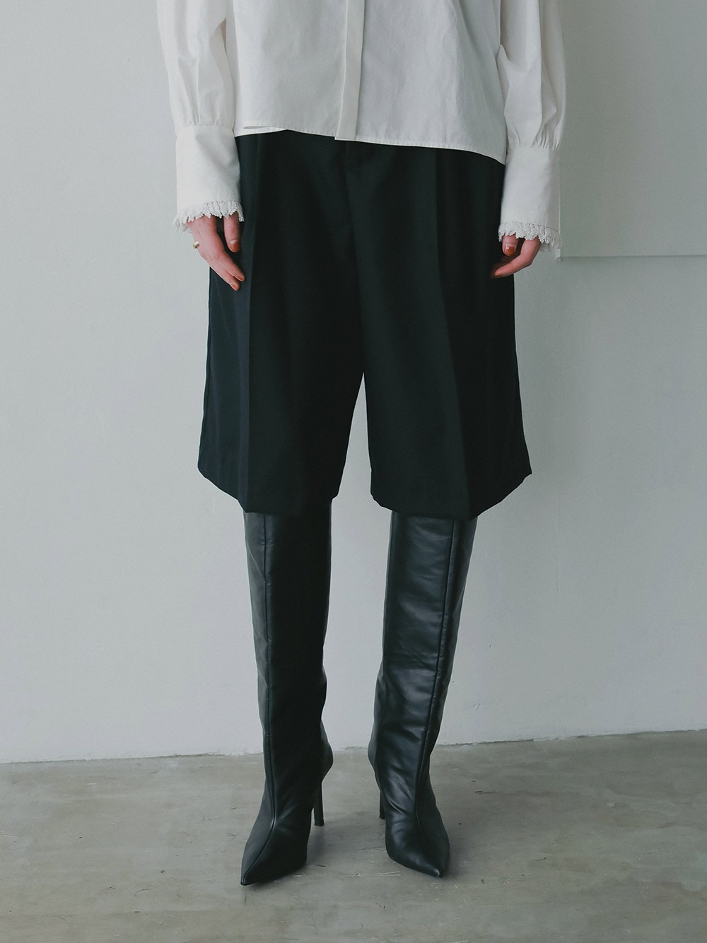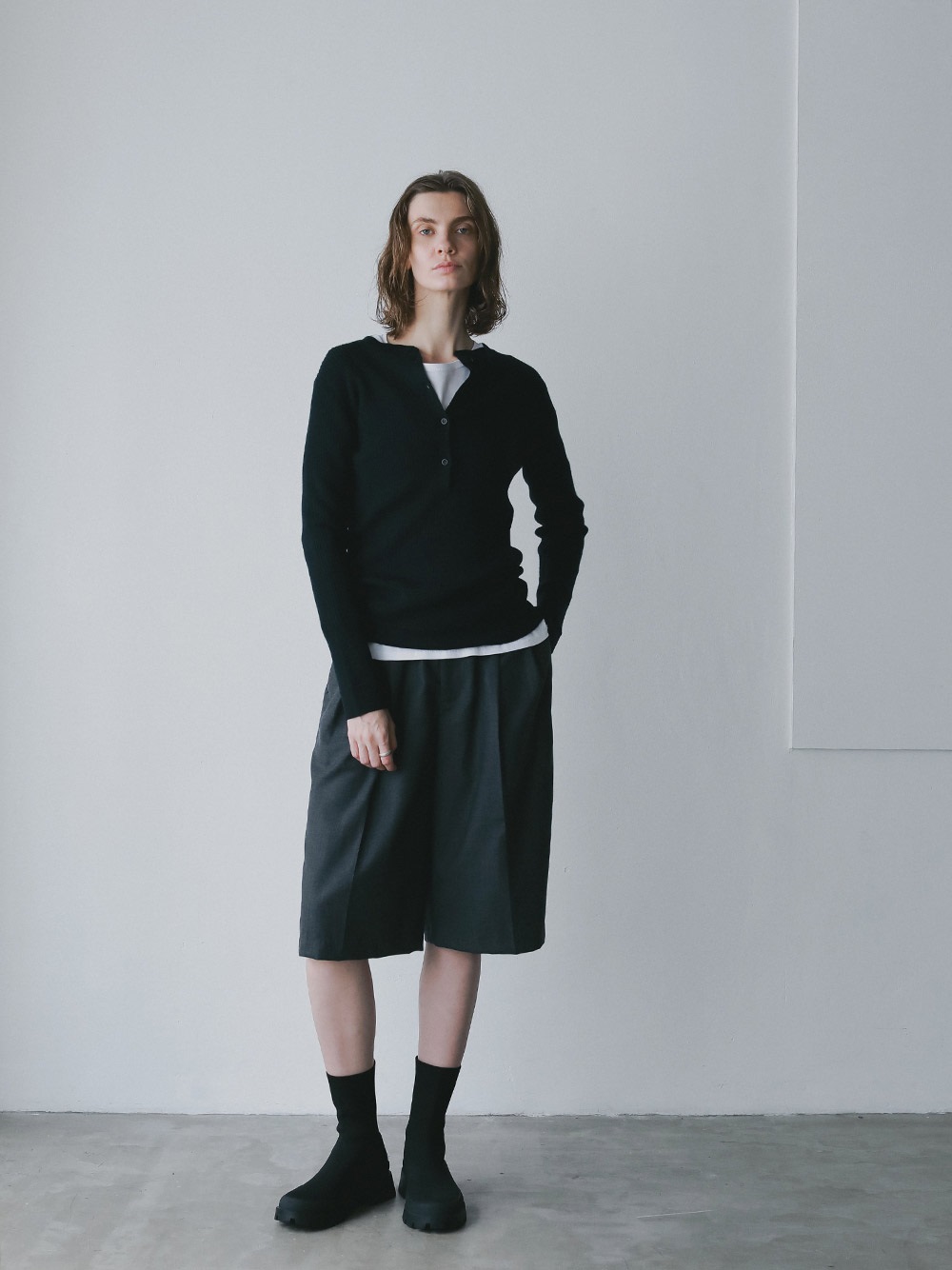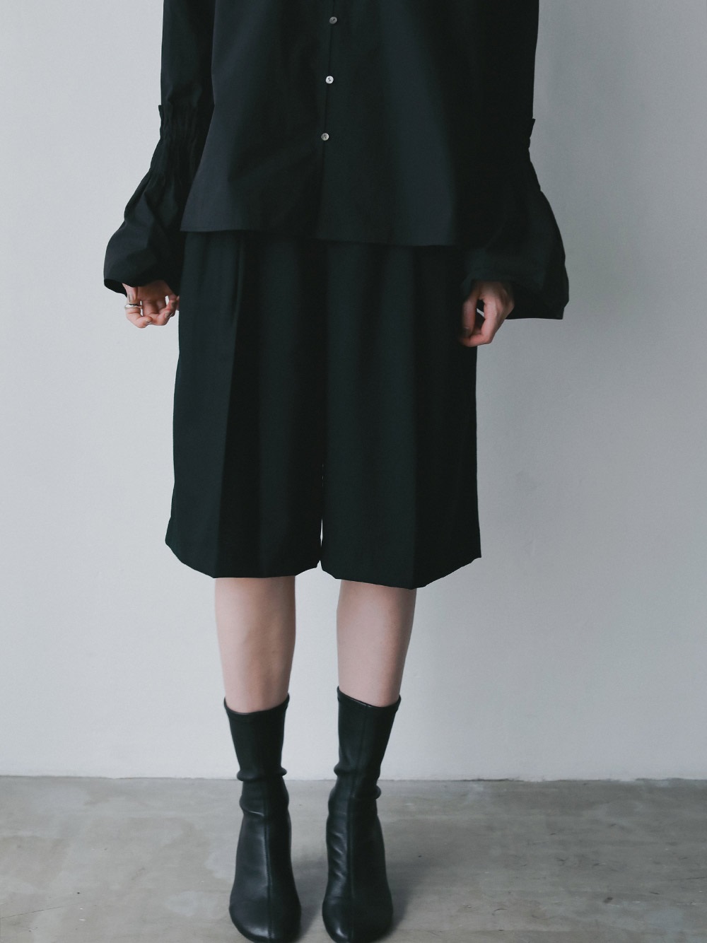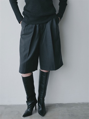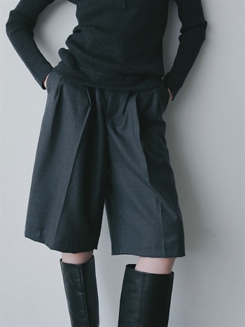 中肉のT/W素材を使用したミドル丈パンツ。トレンドライクなシルエットとウォーム感のある素材で洗練された雰囲気を演出します。ルーズシルエットのニットやカットソーなどとラフにスタイリングしていただくのがおすすめです。