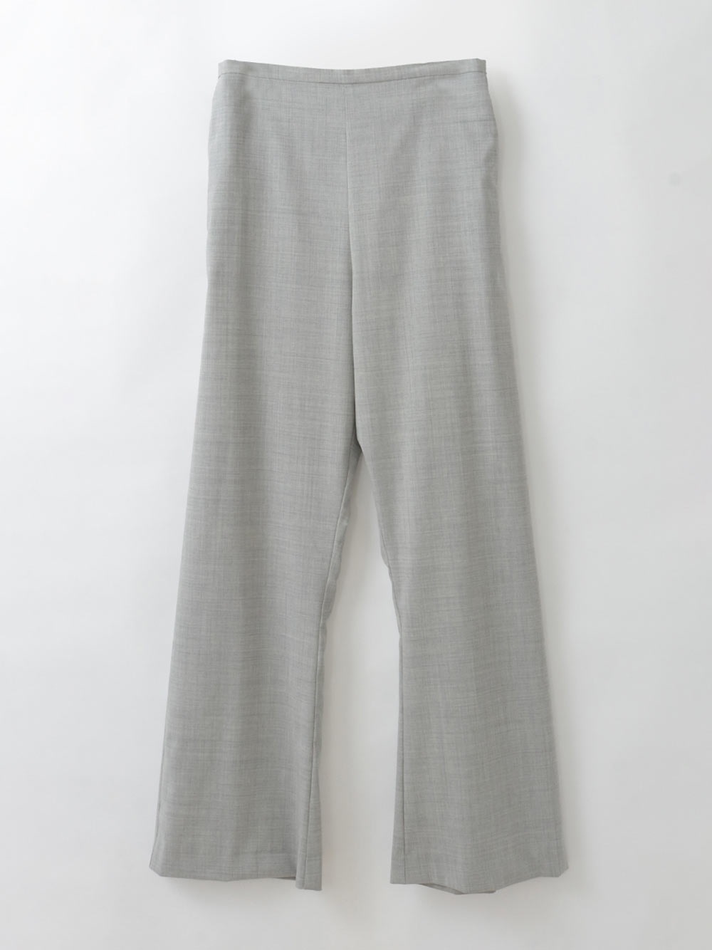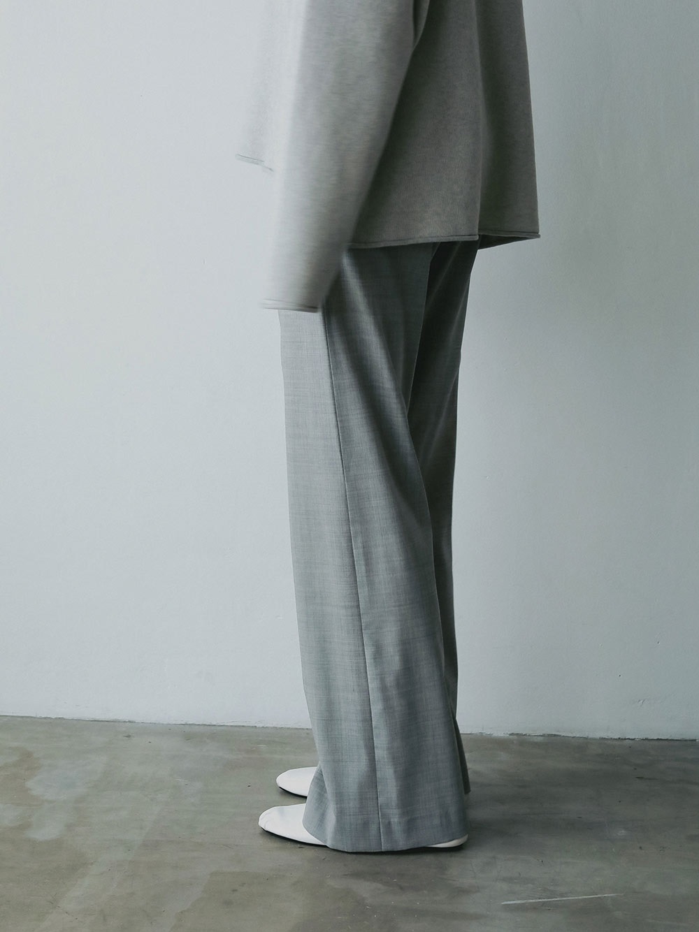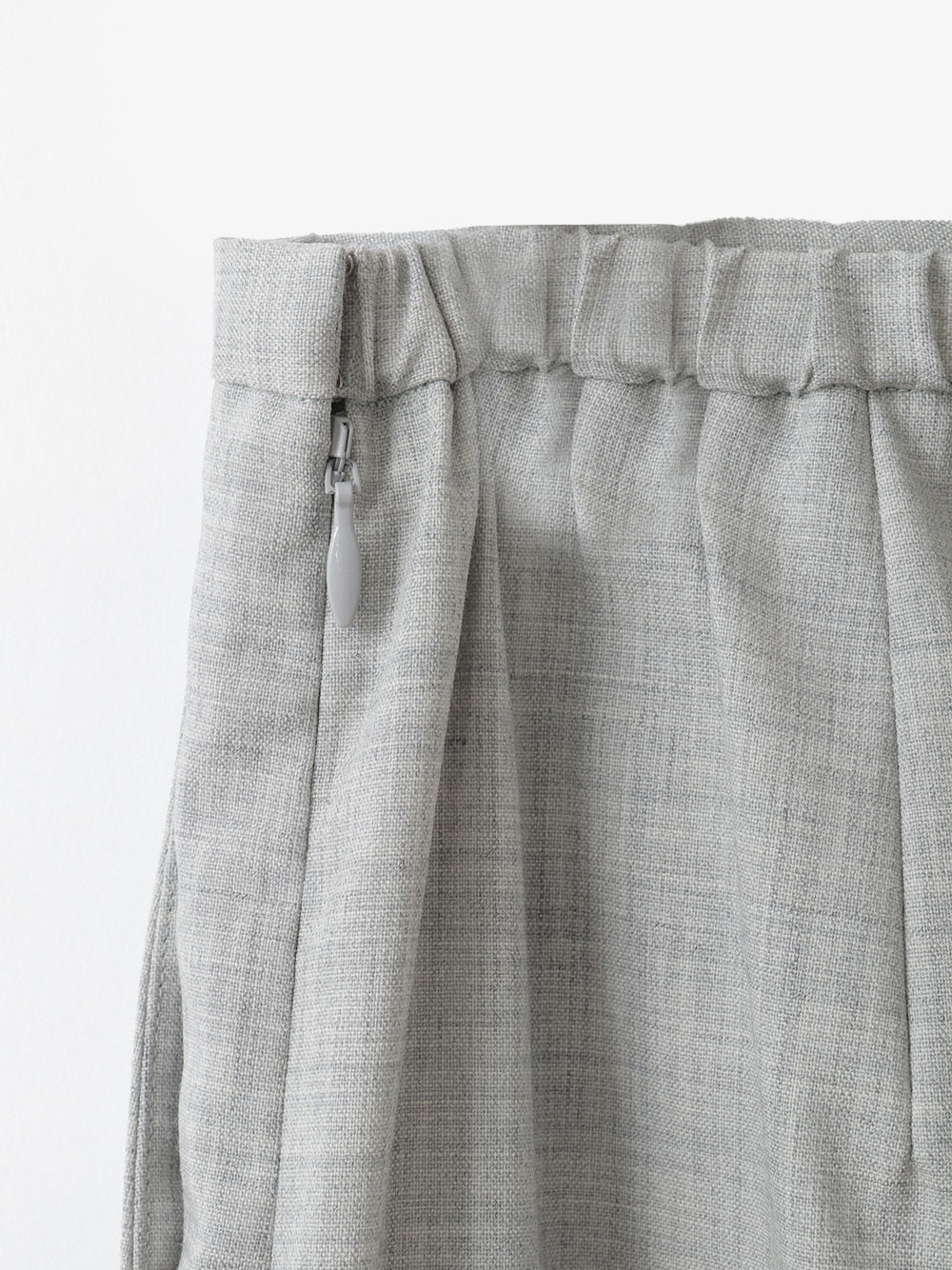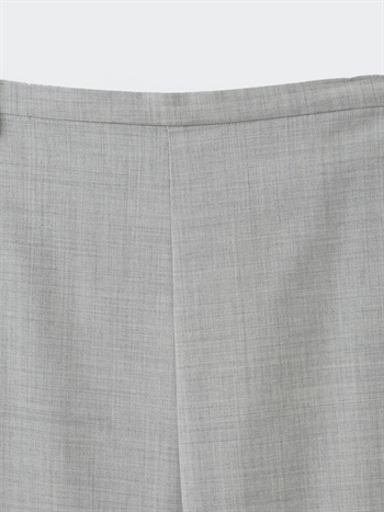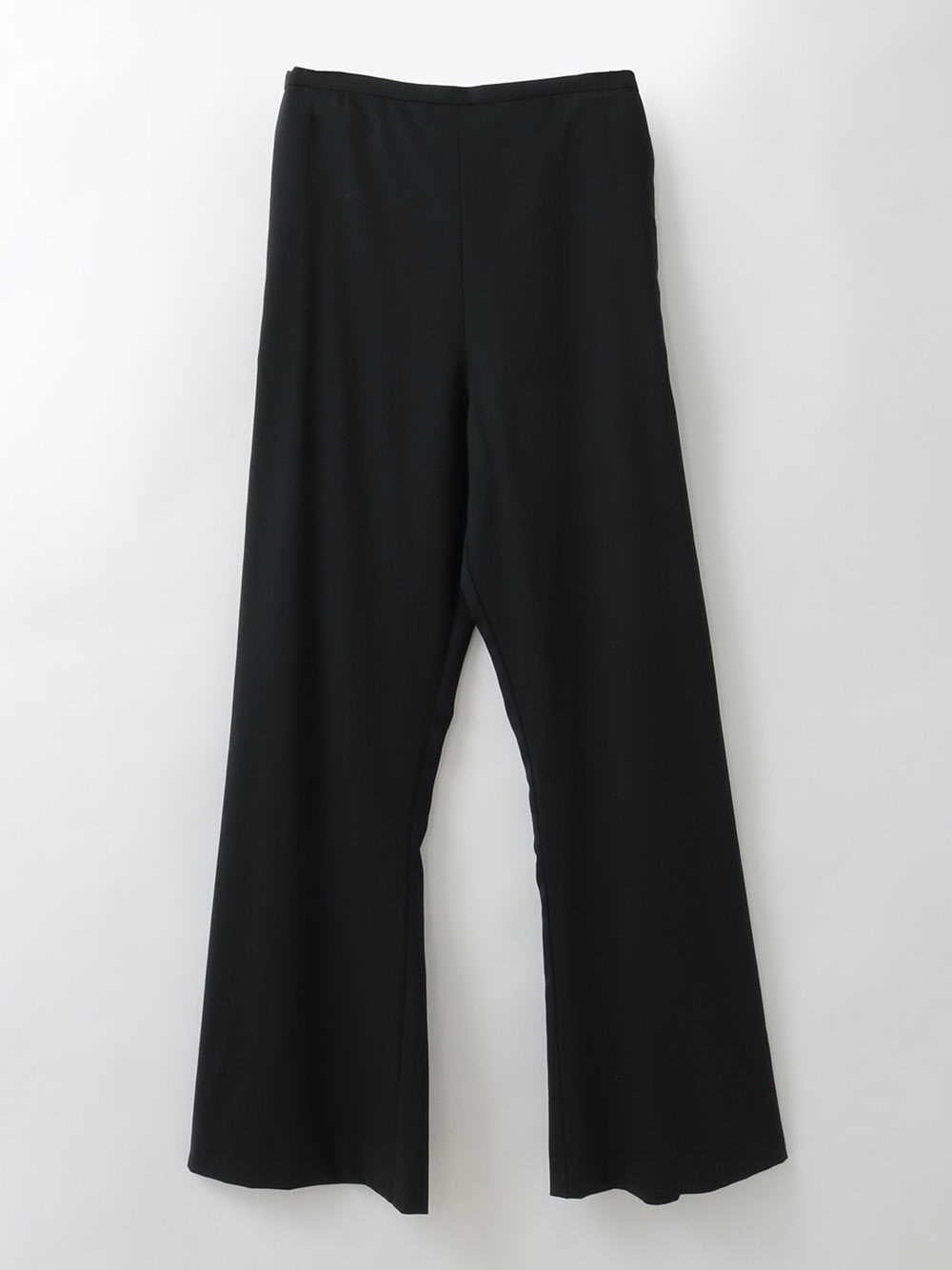 梳毛ウール混のイージーパンツ。なめらかで上品なウールの光沢と軽い仕上がりの生地はシーズンレスで着用できカジュアルにも綺麗めにも合わせられます。ウエストにタックやダーツがなくスッキリと着用できるだけでなく、ウエストの後ろはゴムなのできちんと見えてイージーな履き心地。適度なハりコシがあるのでシワになりにくい万能な1枚。