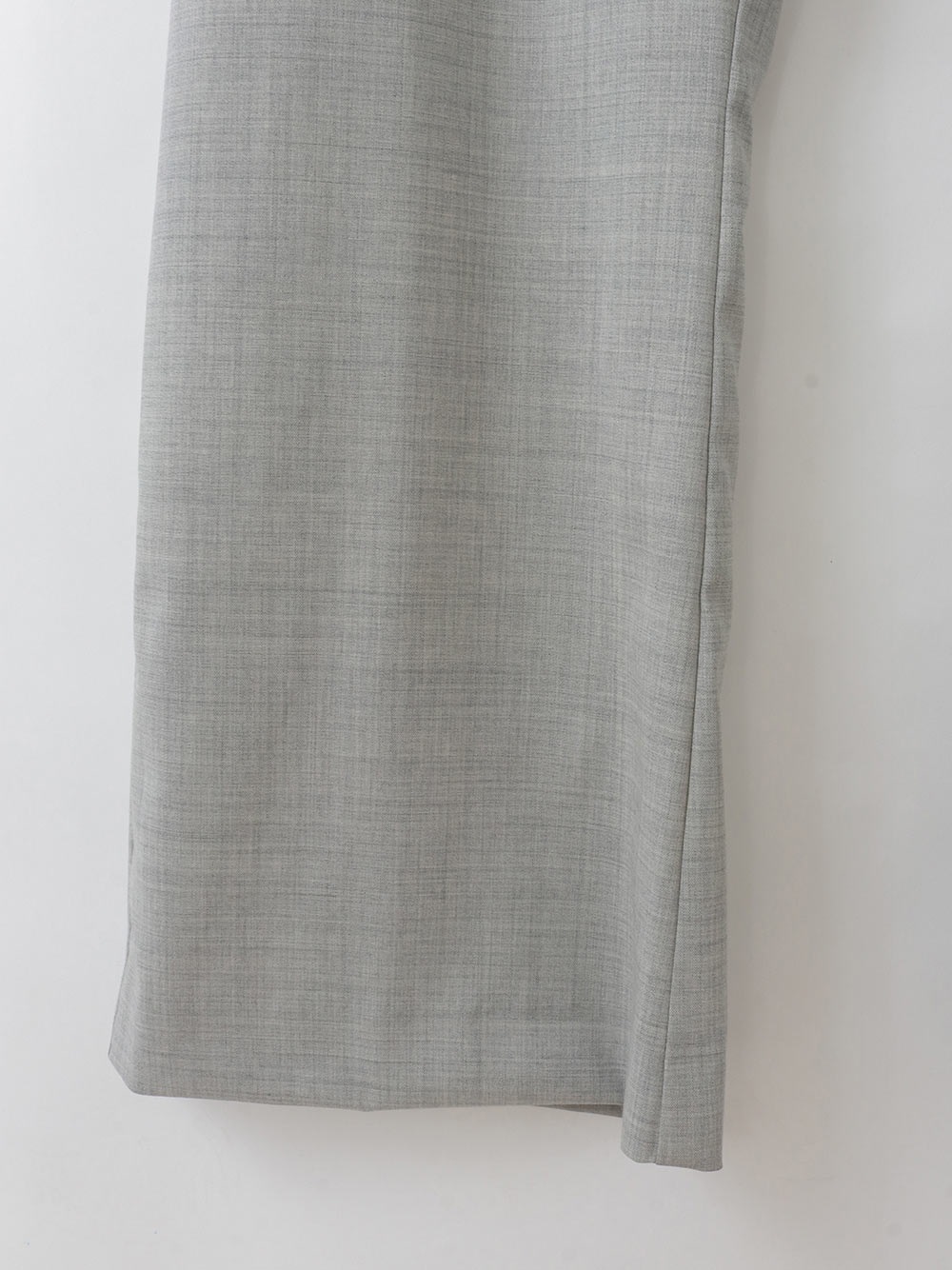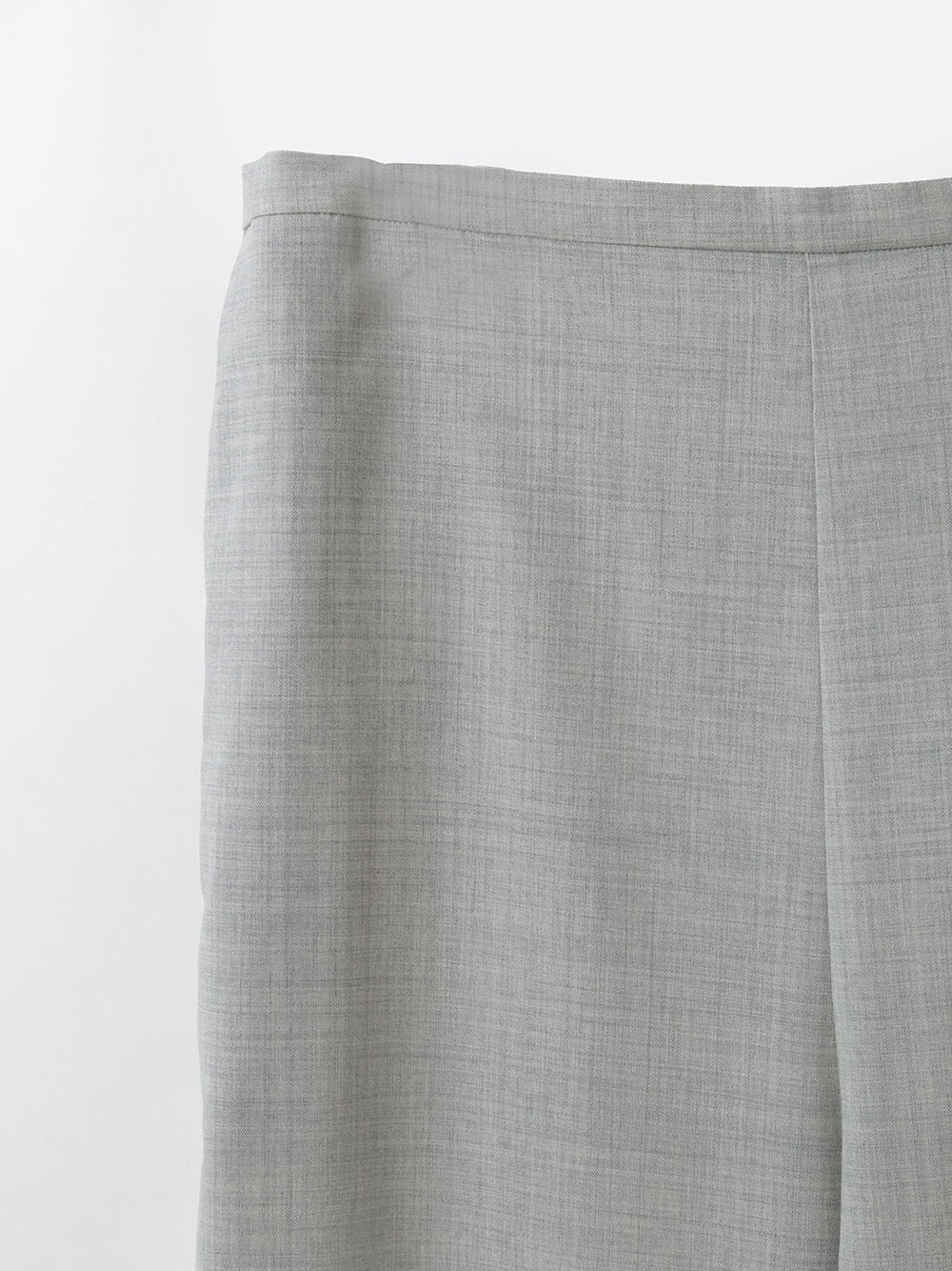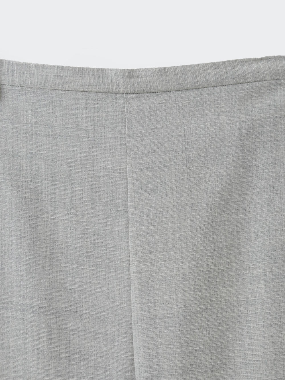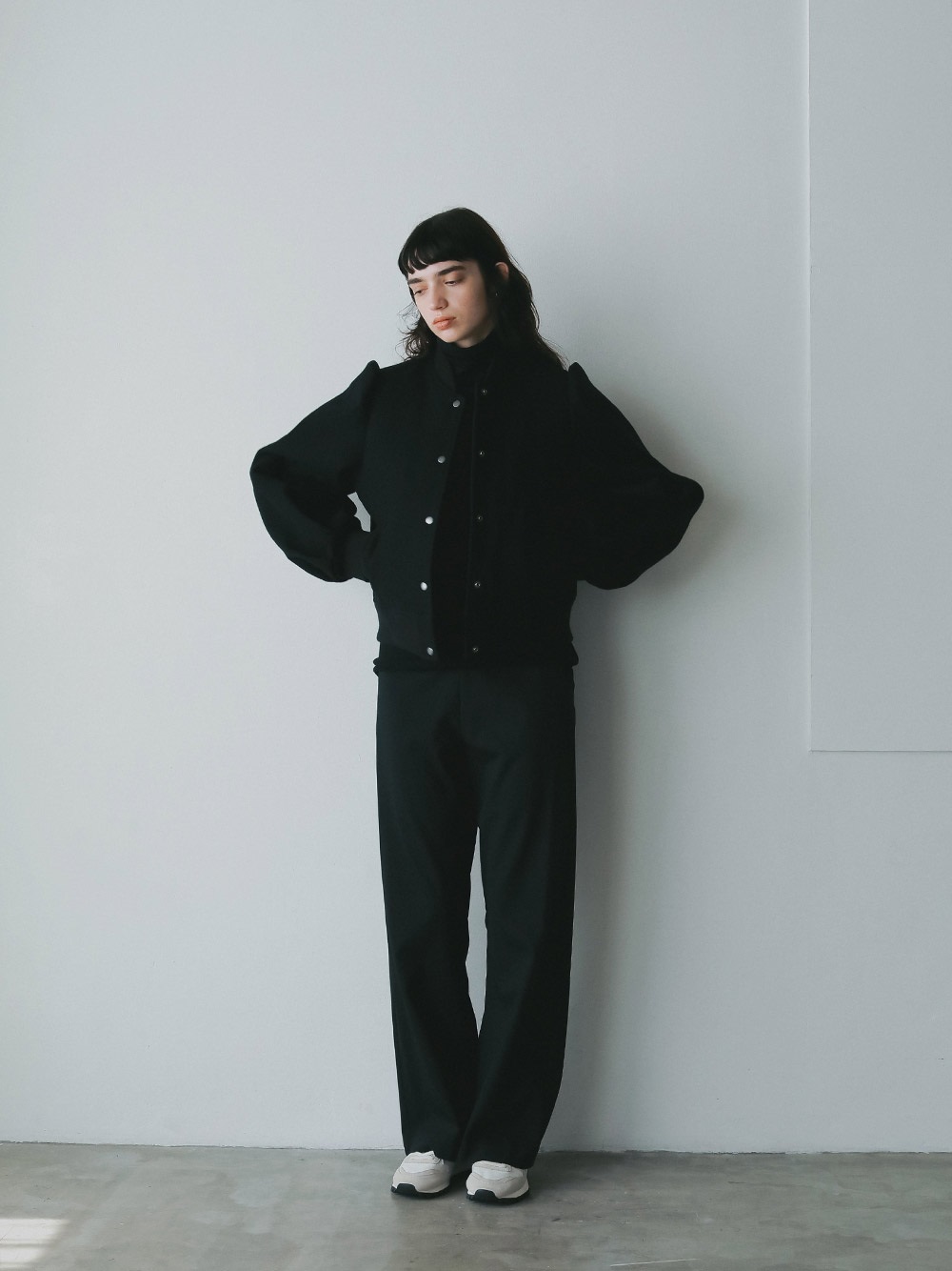 梳毛ウール混のイージーパンツ。なめらかで上品なウールの光沢と軽い仕上がりの生地はシーズンレスで着用できカジュアルにも綺麗めにも合わせられます。ウエストにタックやダーツがなくスッキリと着用できるだけでなく、ウエストの後ろはゴムなのできちんと見えてイージーな履き心地。適度なハりコシがあるのでシワになりにくい万能な1枚。