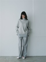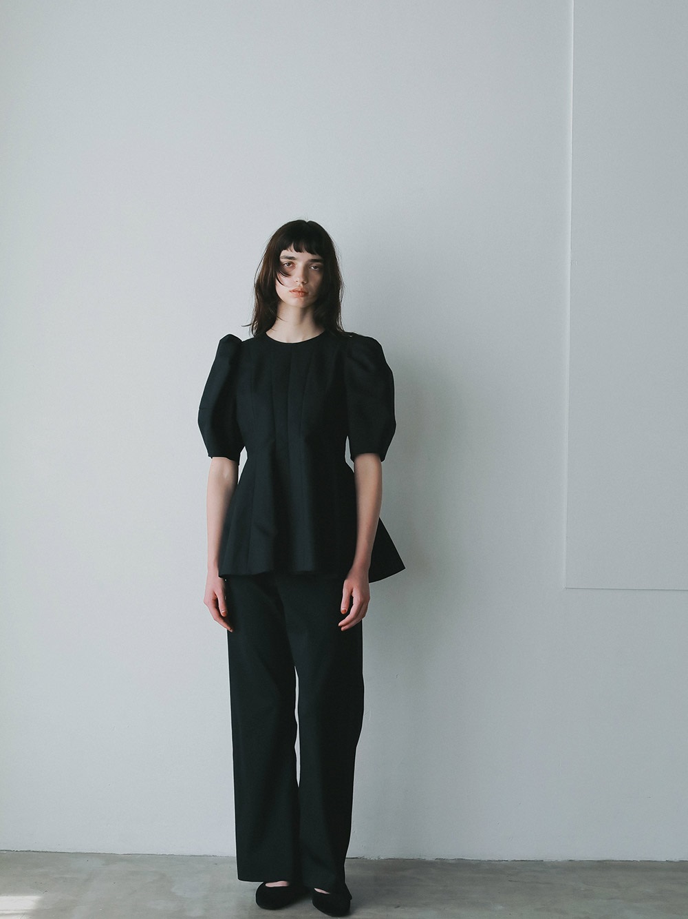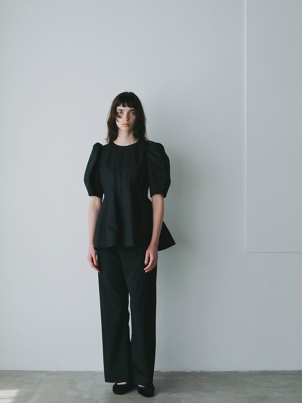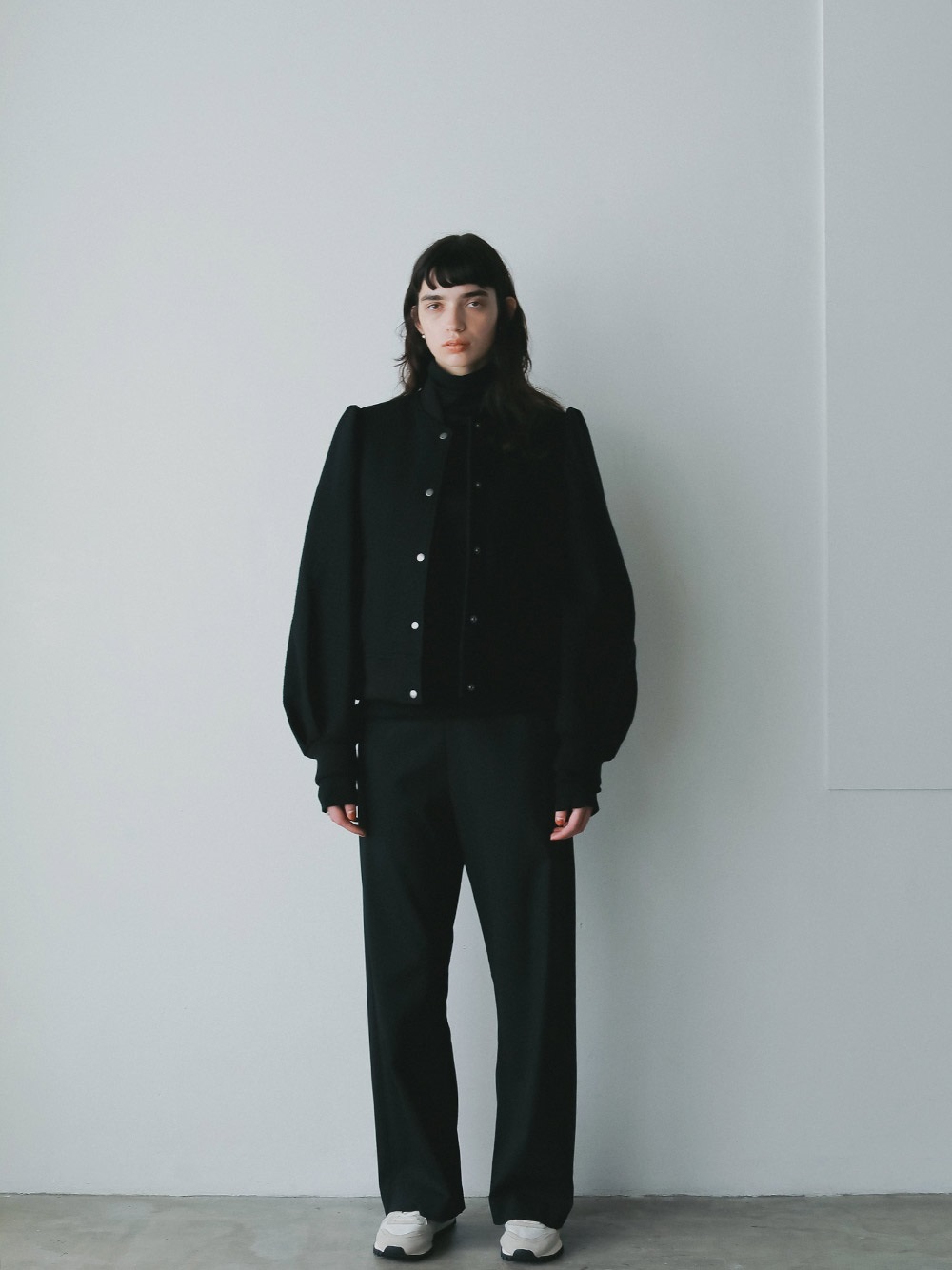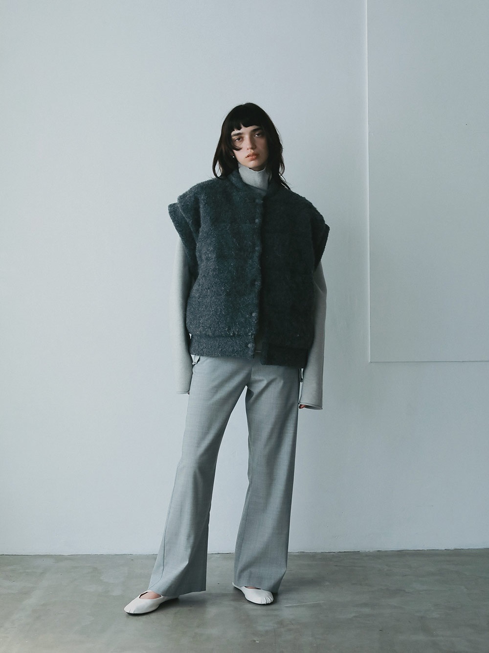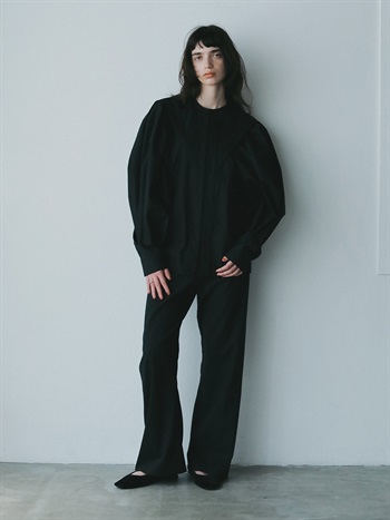 梳毛ウール混のイージーパンツ。なめらかで上品なウールの光沢と軽い仕上がりの生地はシーズンレスで着用できカジュアルにも綺麗めにも合わせられます。ウエストにタックやダーツがなくスッキリと着用できるだけでなく、ウエストの後ろはゴムなのできちんと見えてイージーな履き心地。適度なハりコシがあるのでシワになりにくい万能な1枚。