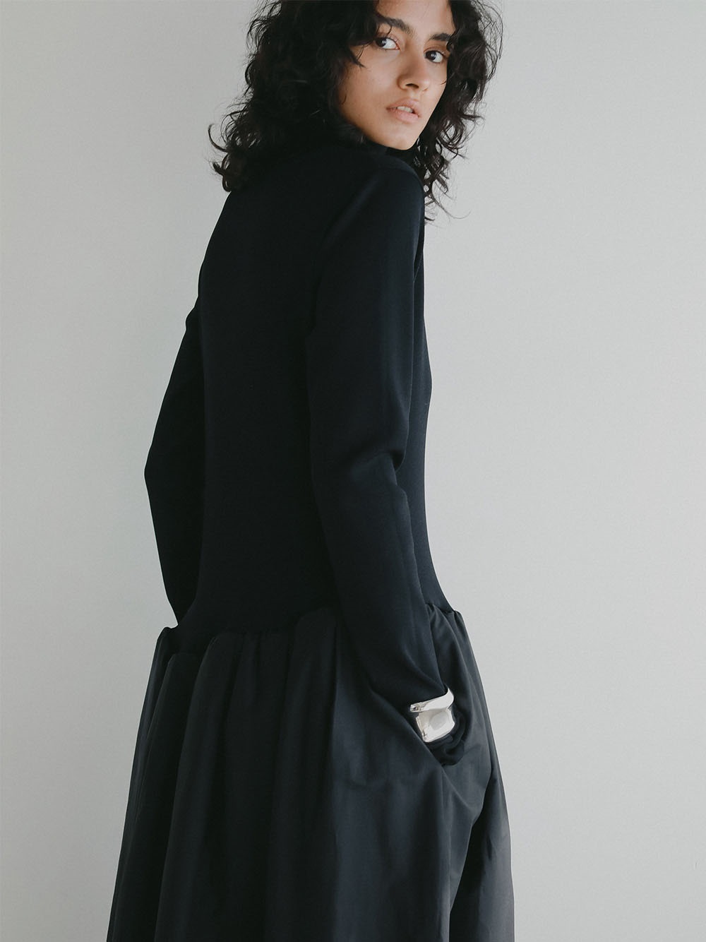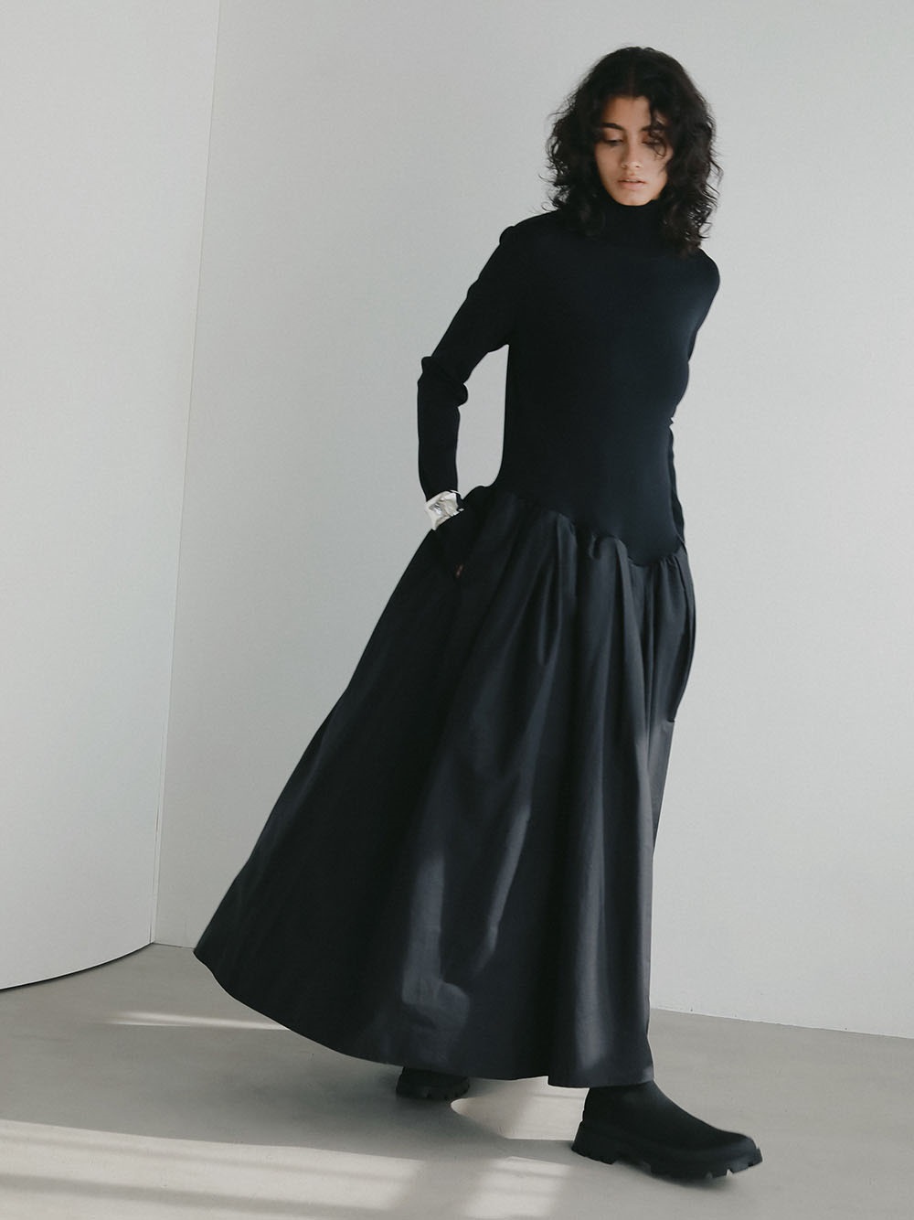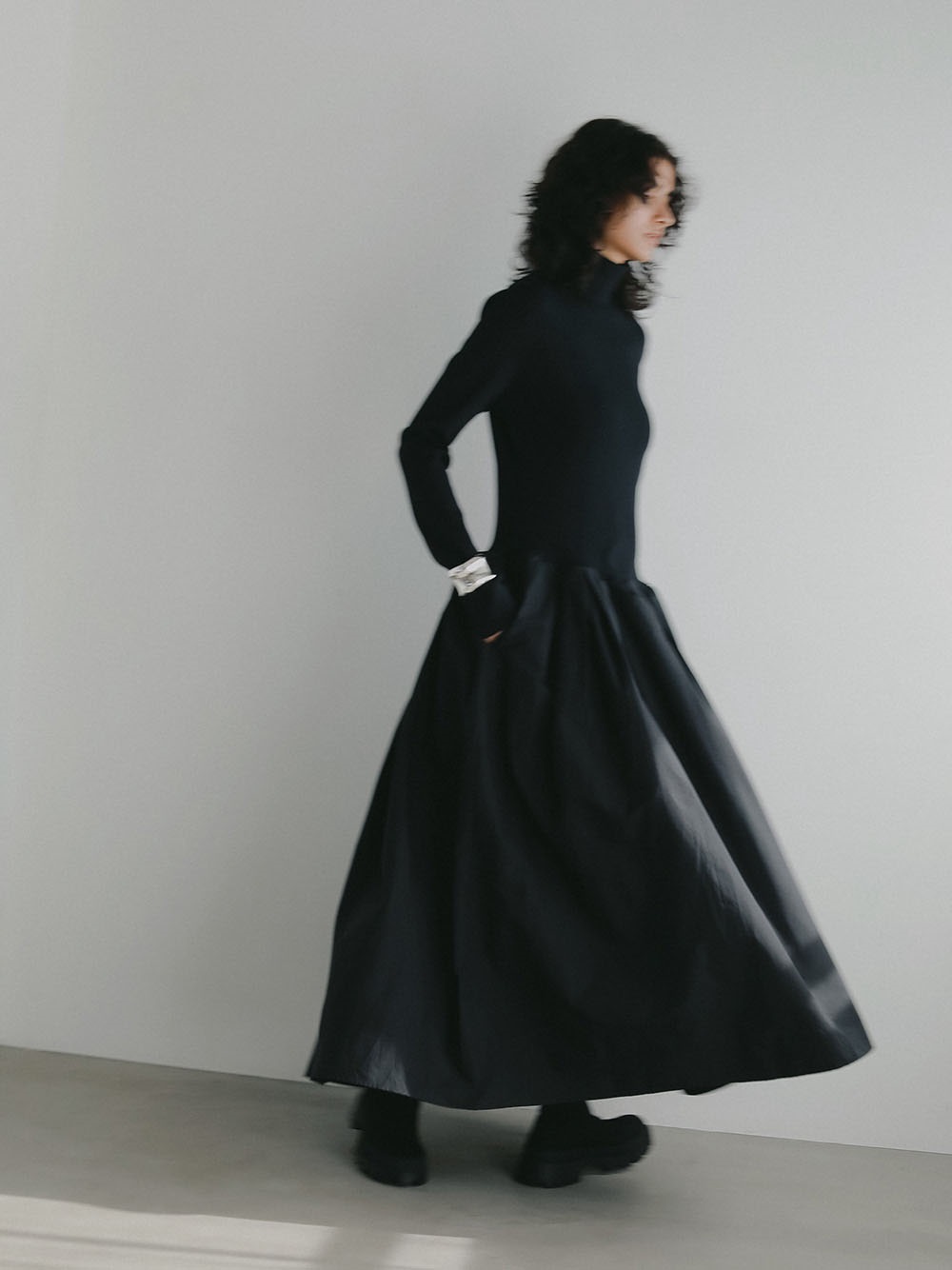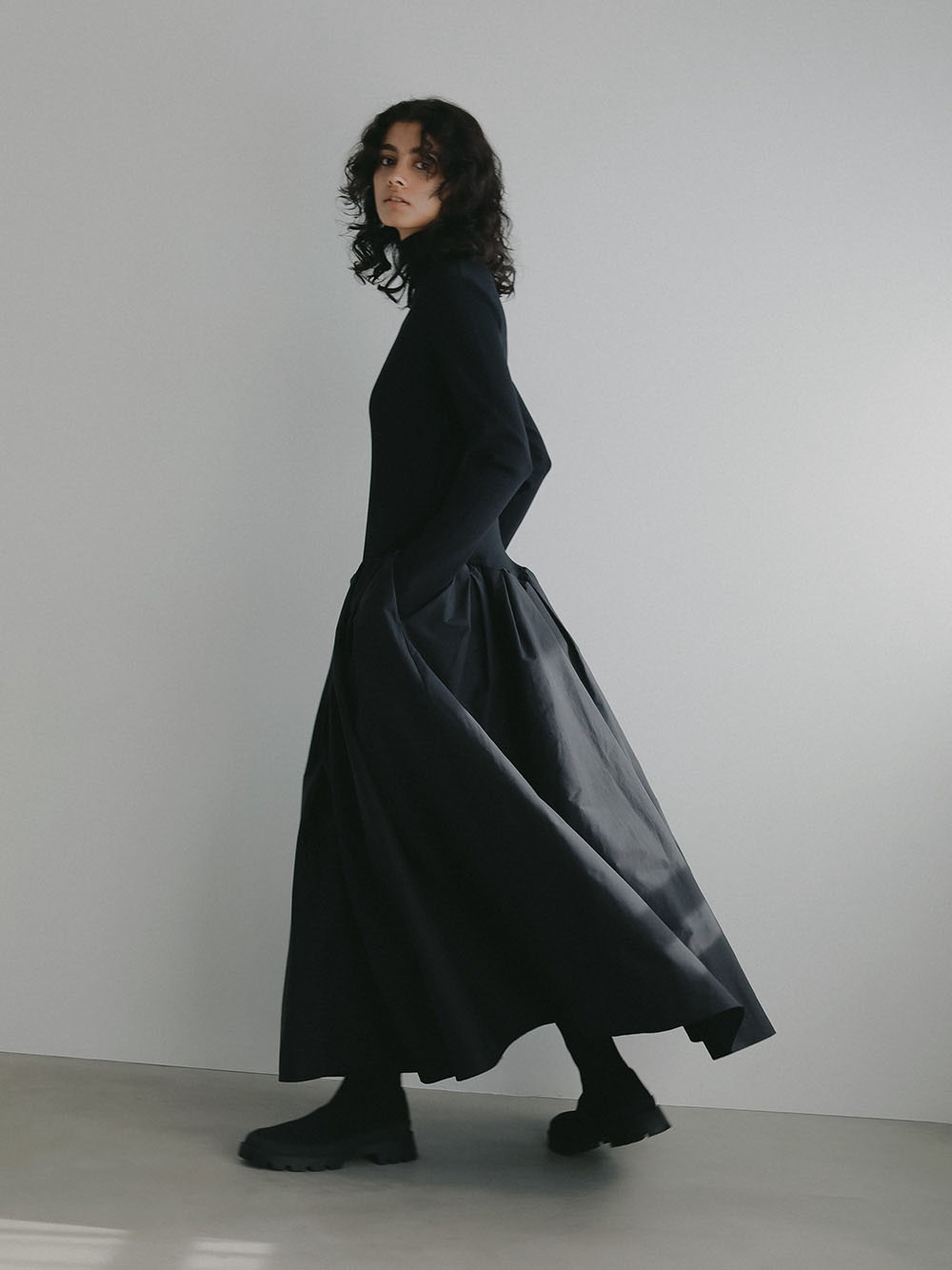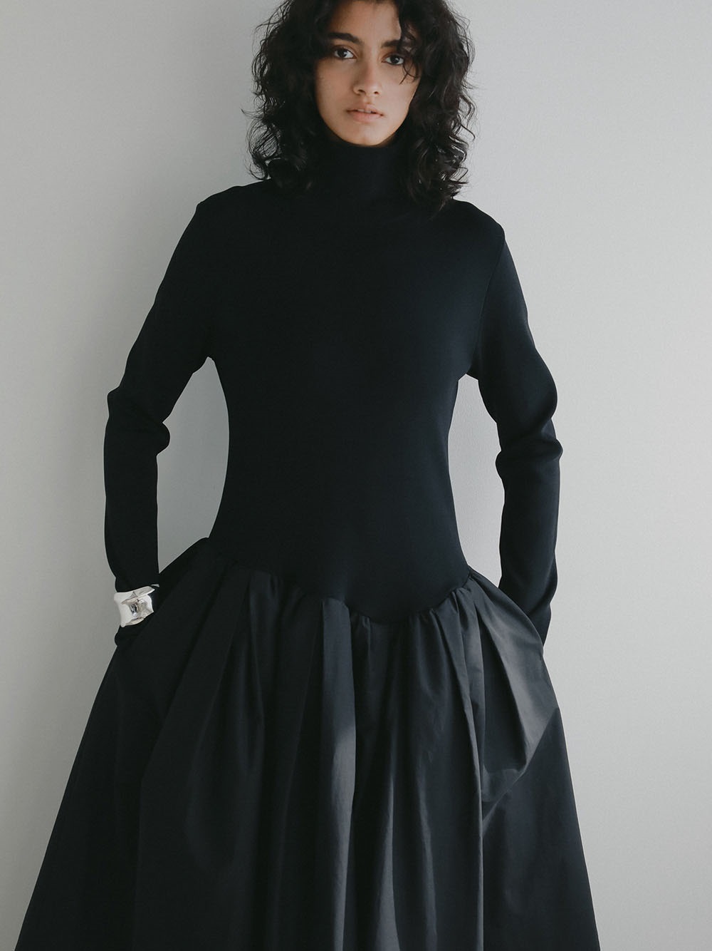 • <1月下旬お届け>ギャザーフレアドッキングワンピース [Preorder](00ブラック-2)