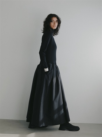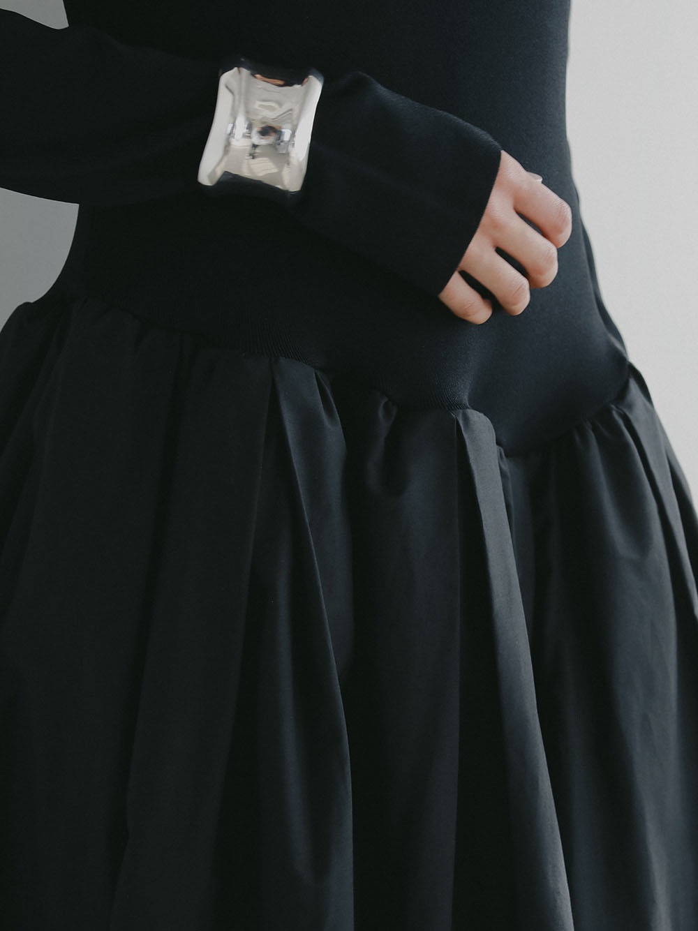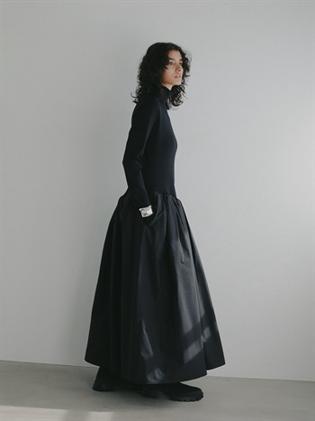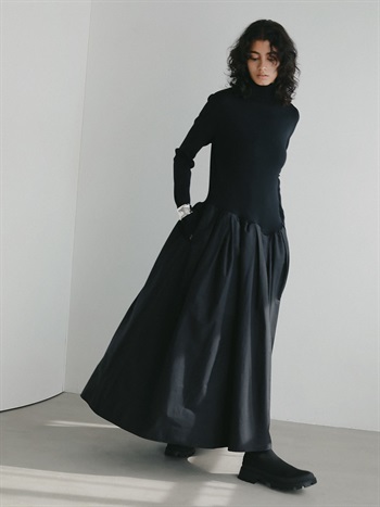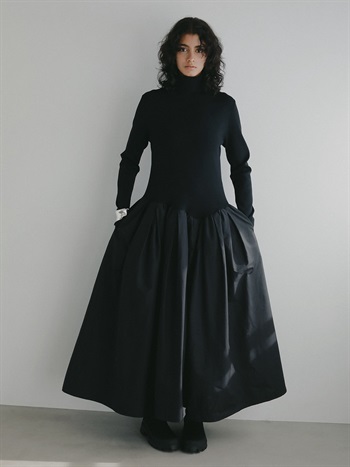 • <1月下旬お届け>ギャザーフレアドッキングワンピース [Preorder](00ブラック-1)