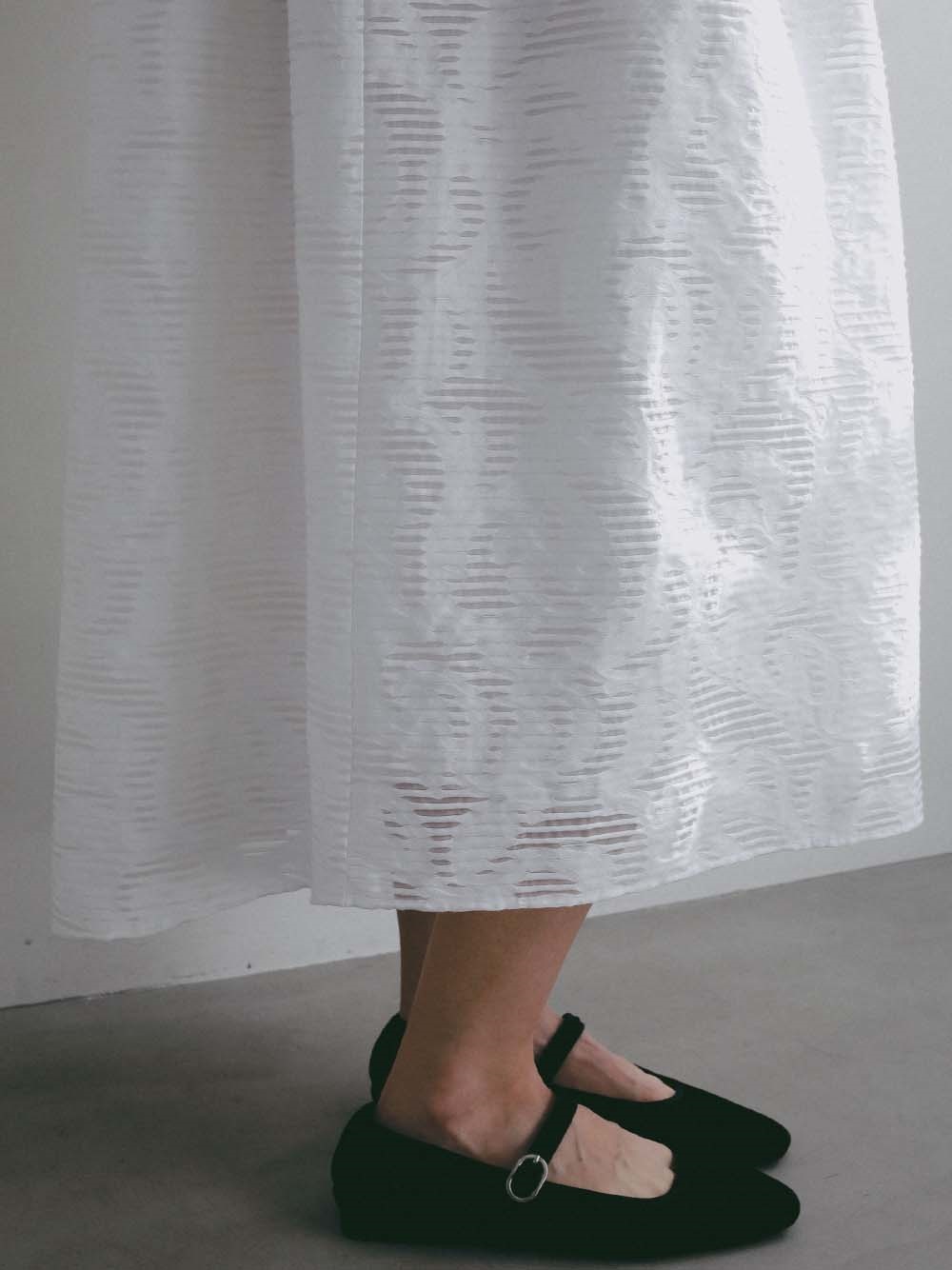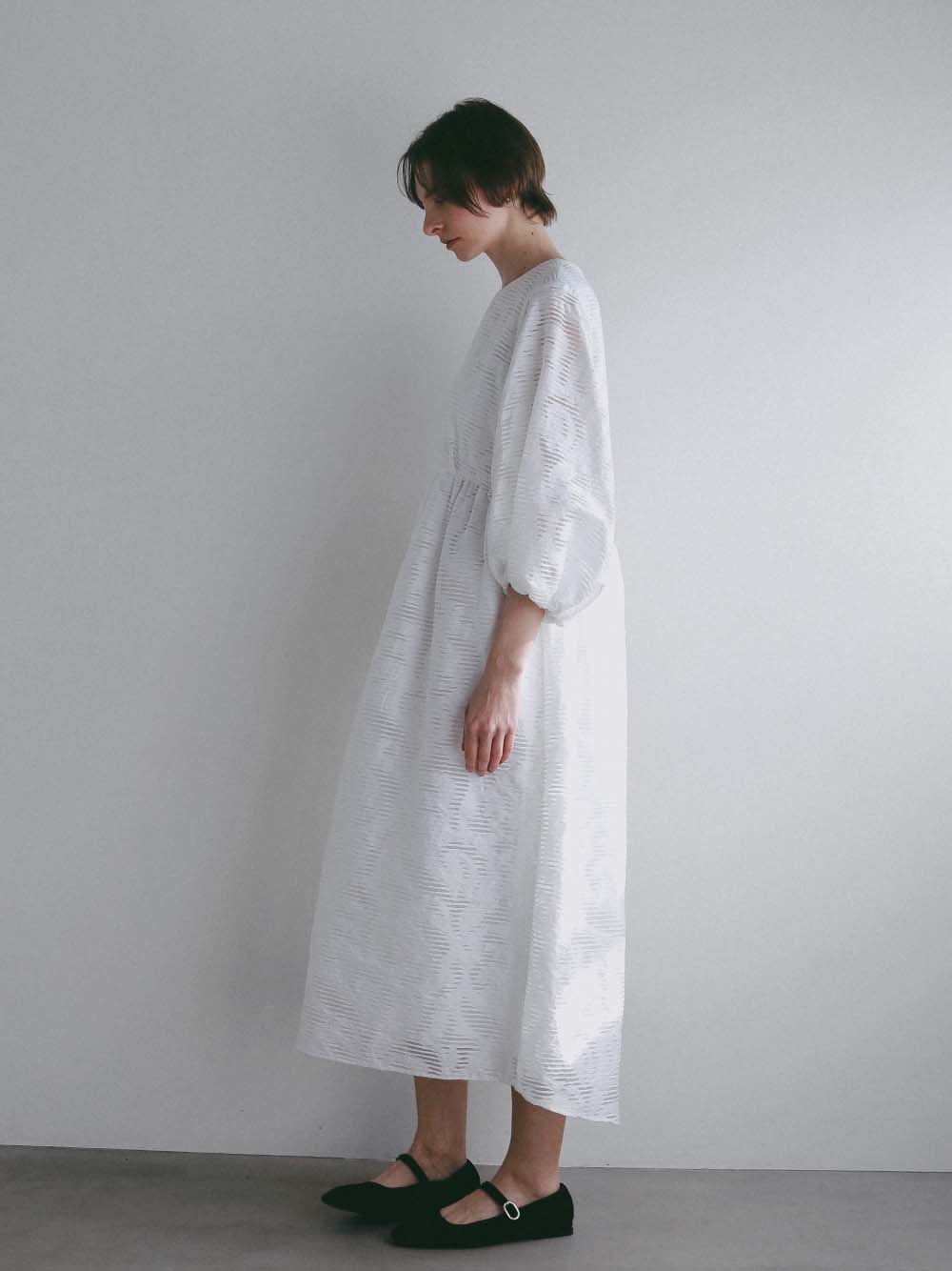 透け感のある薄手のジャカードを使用した軽やかなワンピースです。