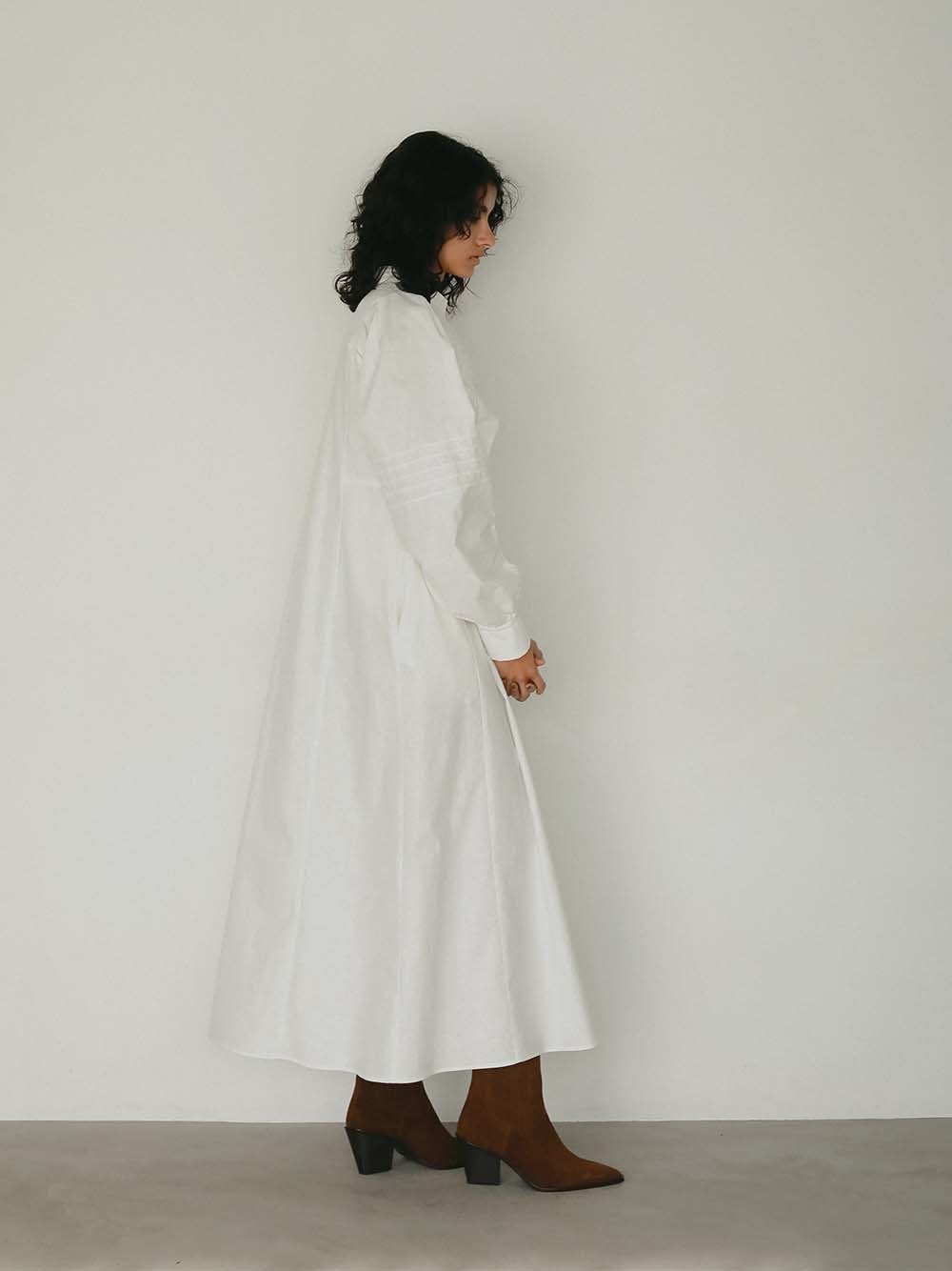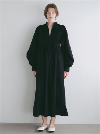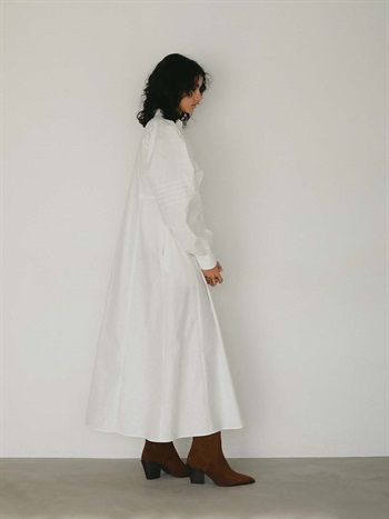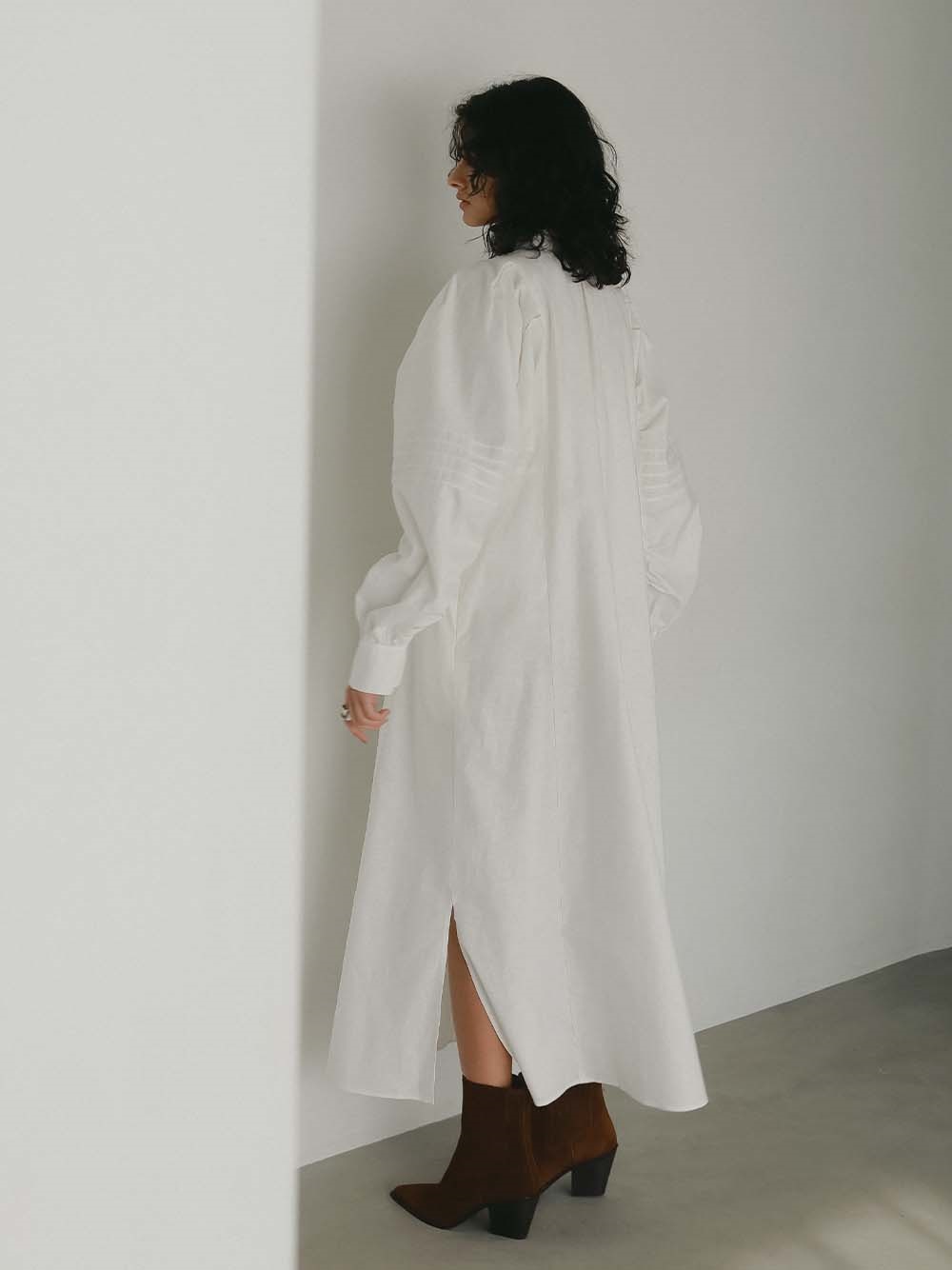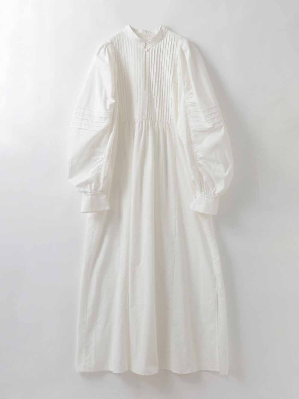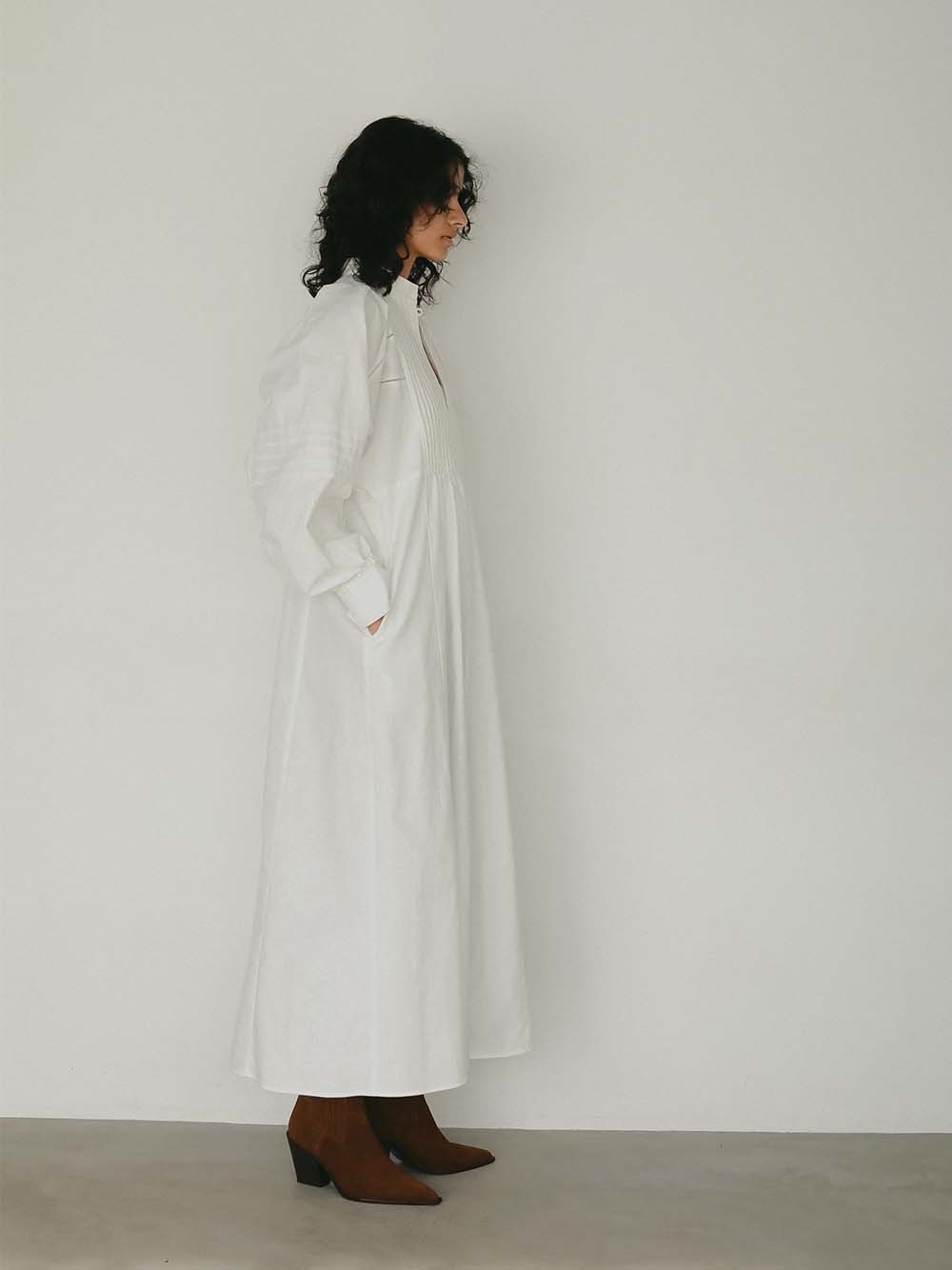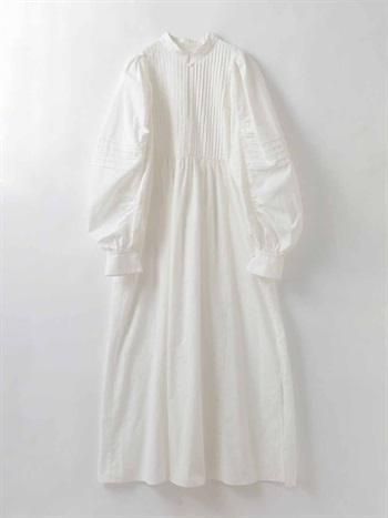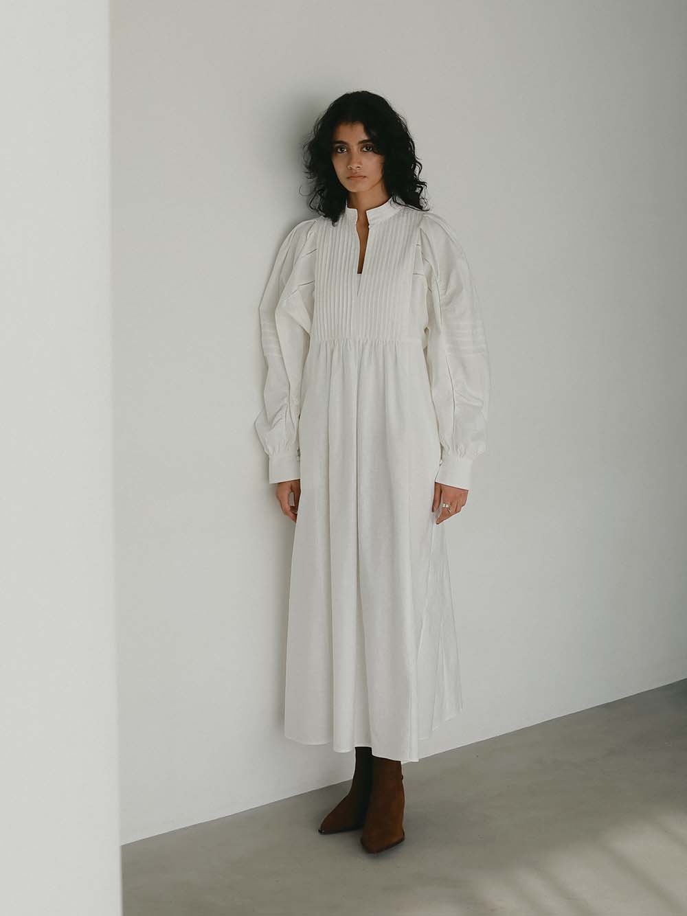 繊細なピンタックが幾重にも重なり目をひくボリュームドレス。