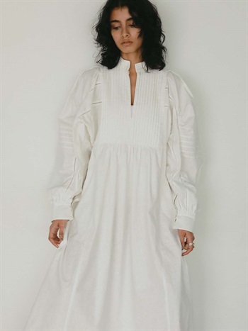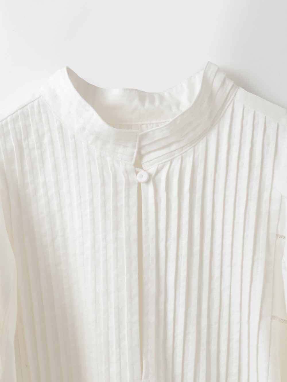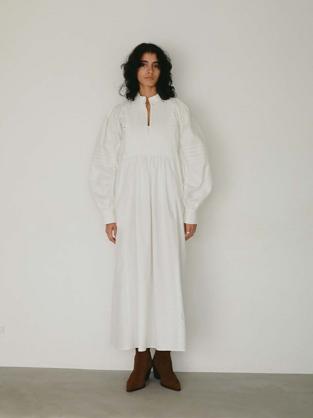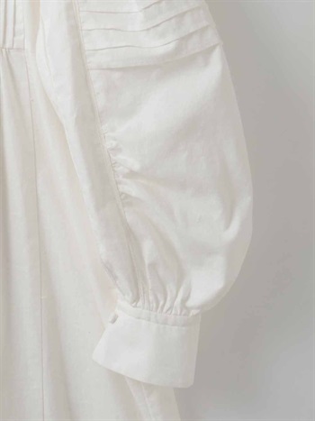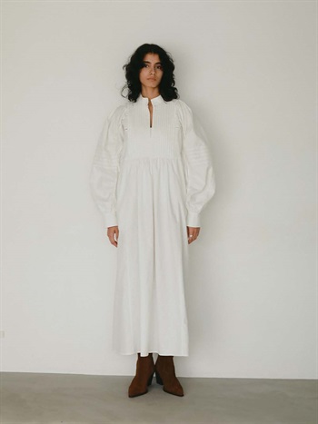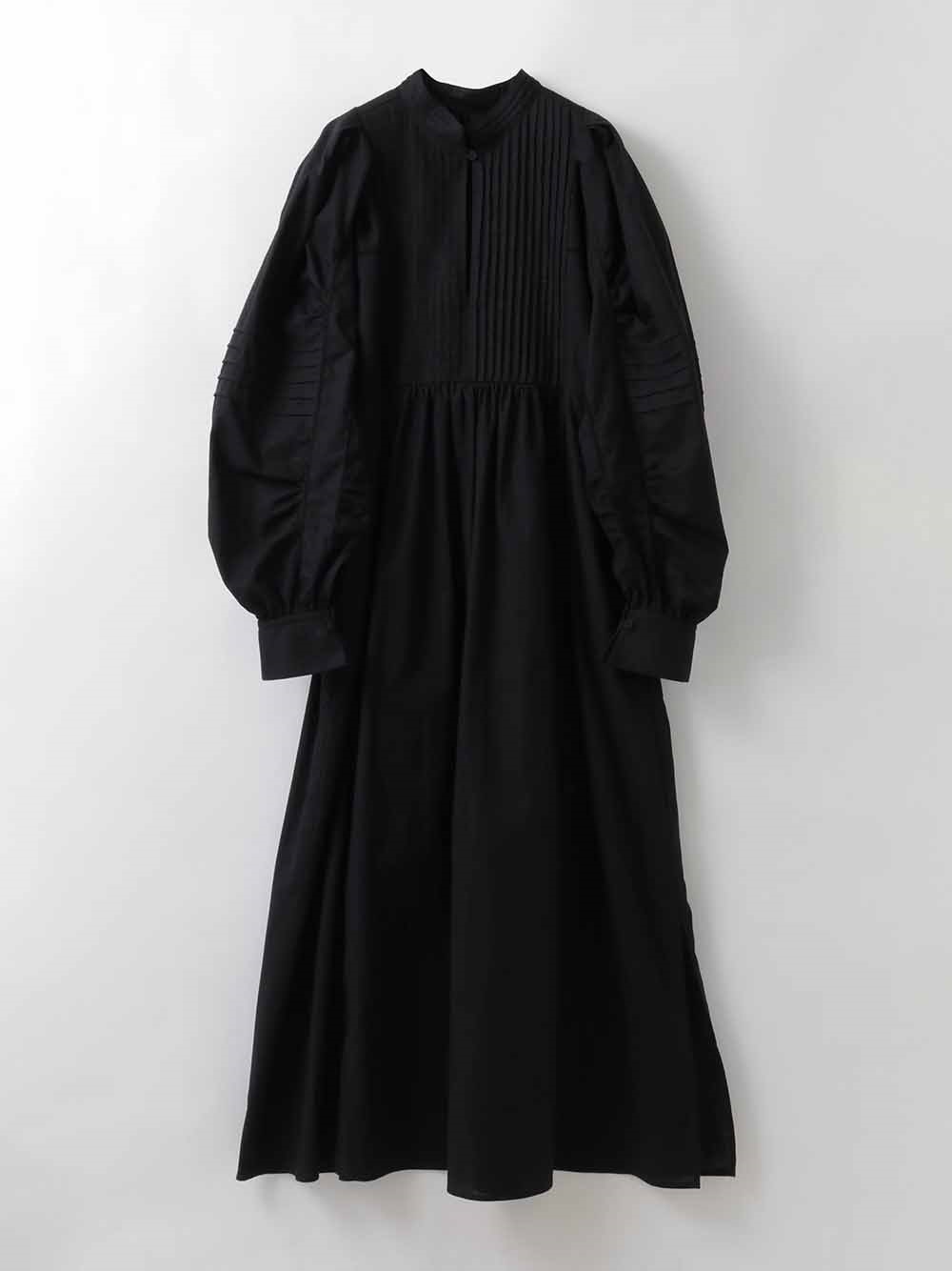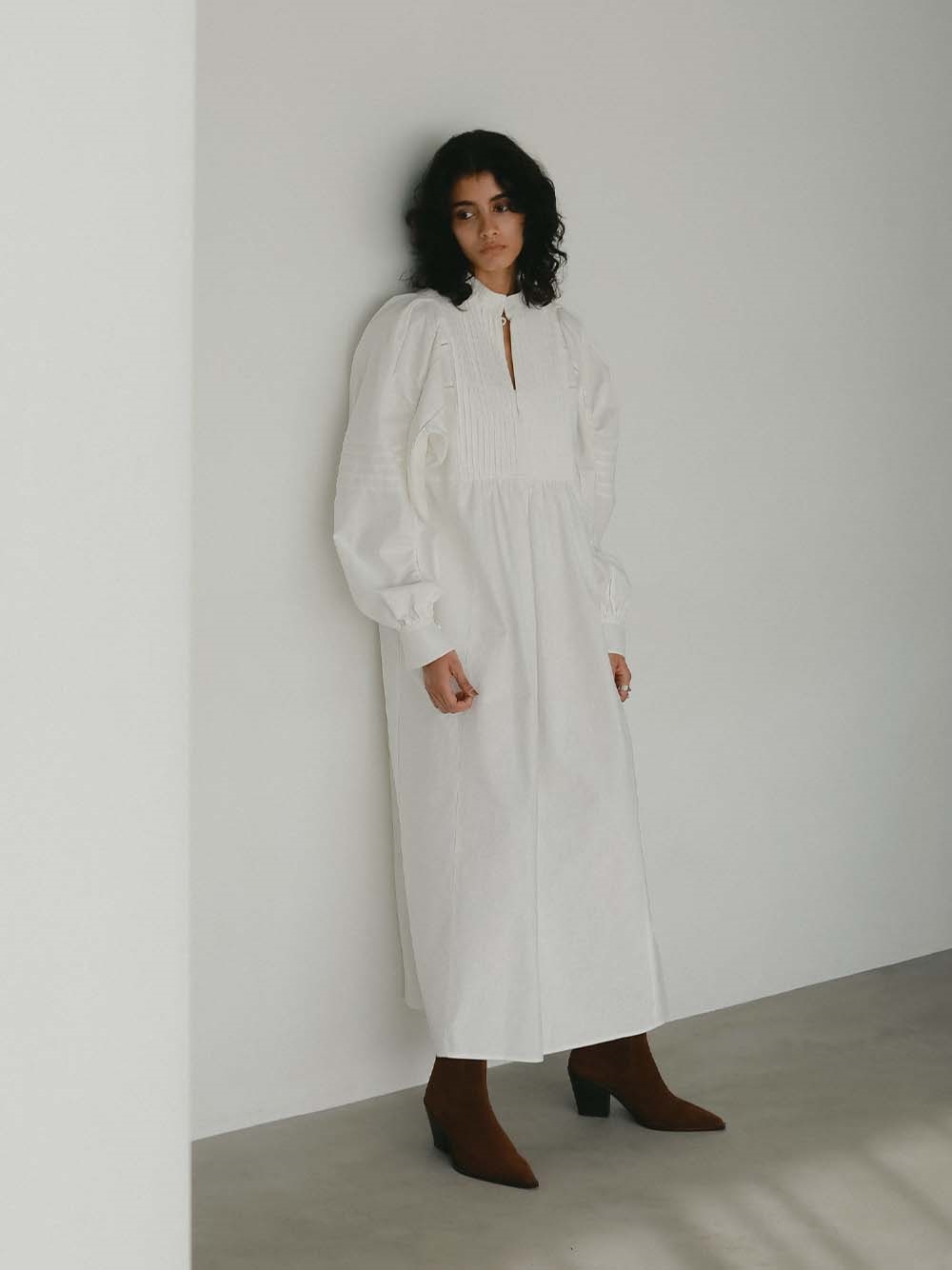 繊細なピンタックが幾重にも重なり目をひくボリュームドレス。