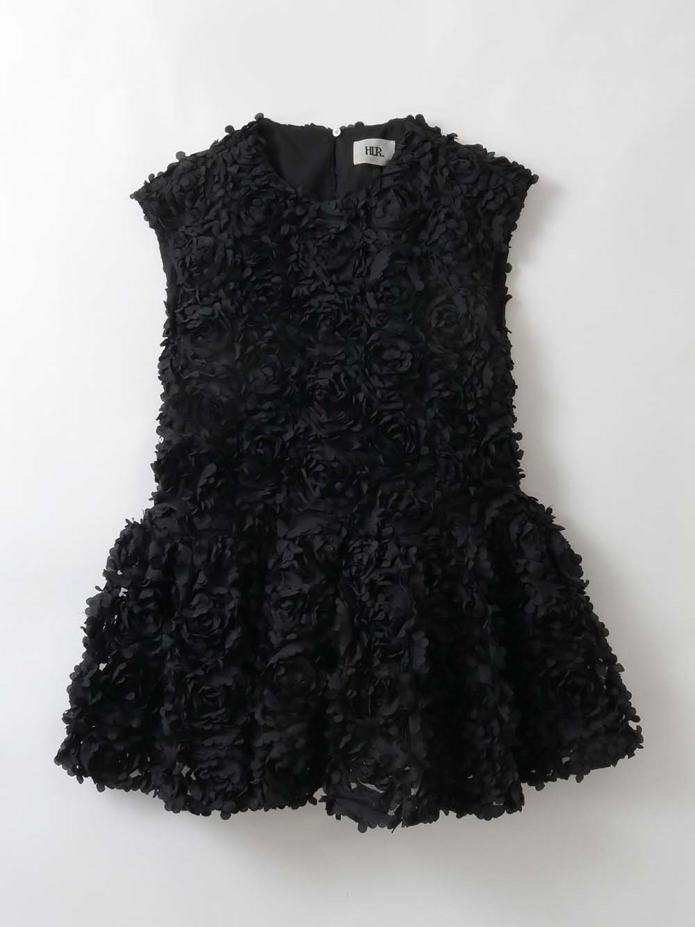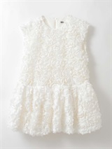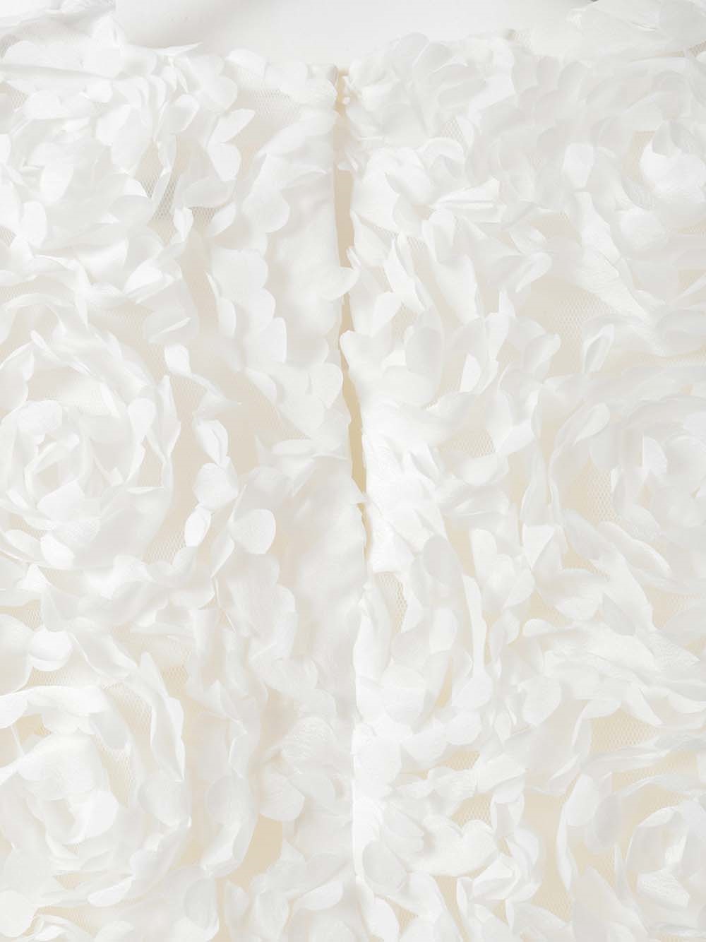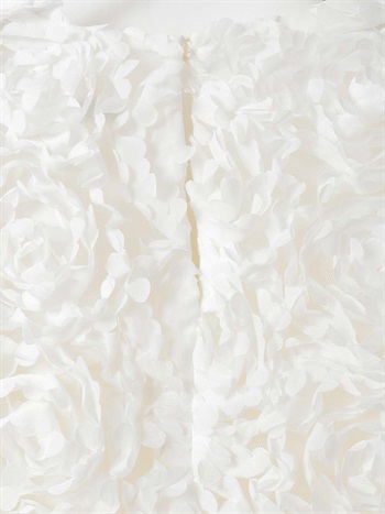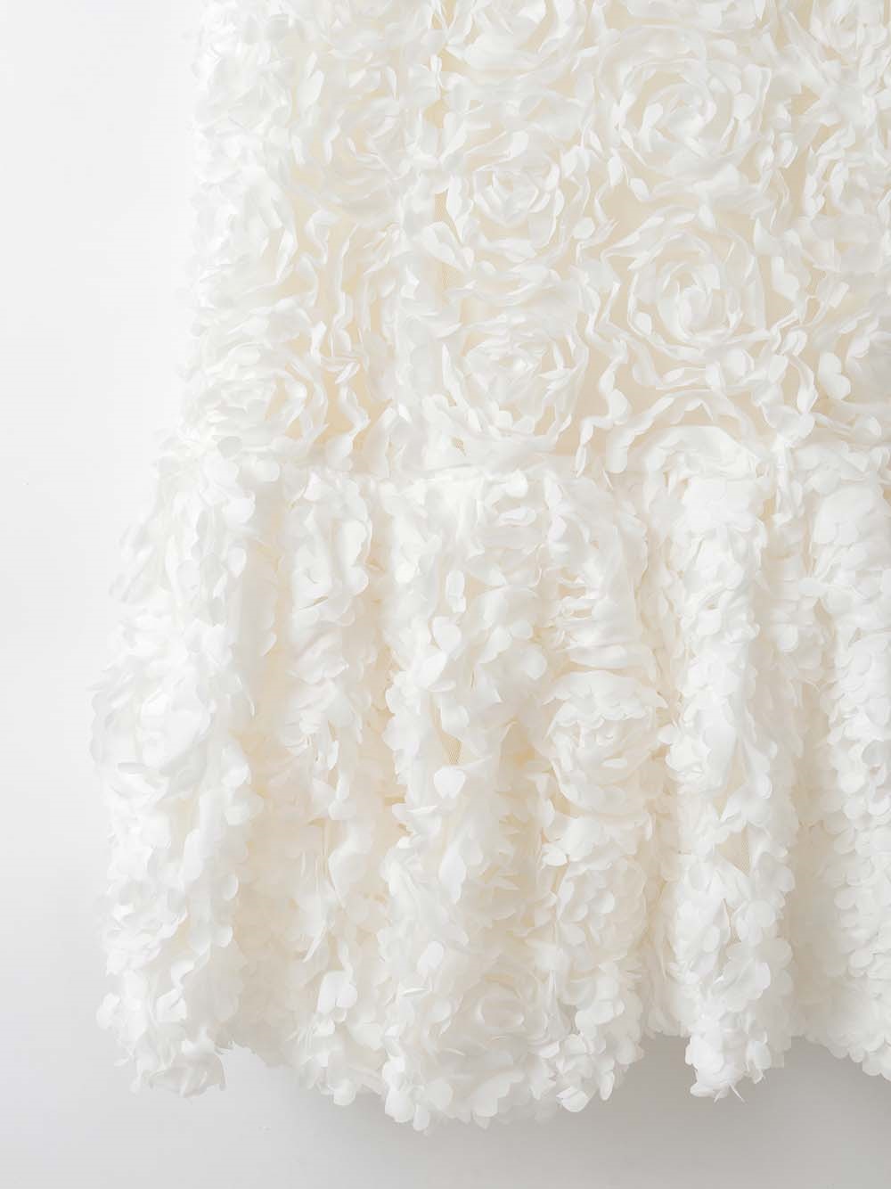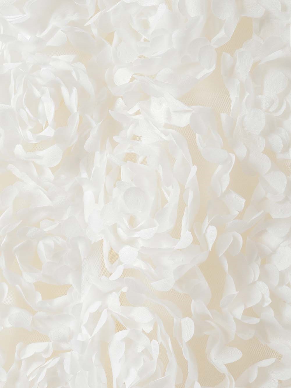 チュール素材に、花びらのような別素材のモチーフが全面刺繍されたリッチなレースを贅沢に